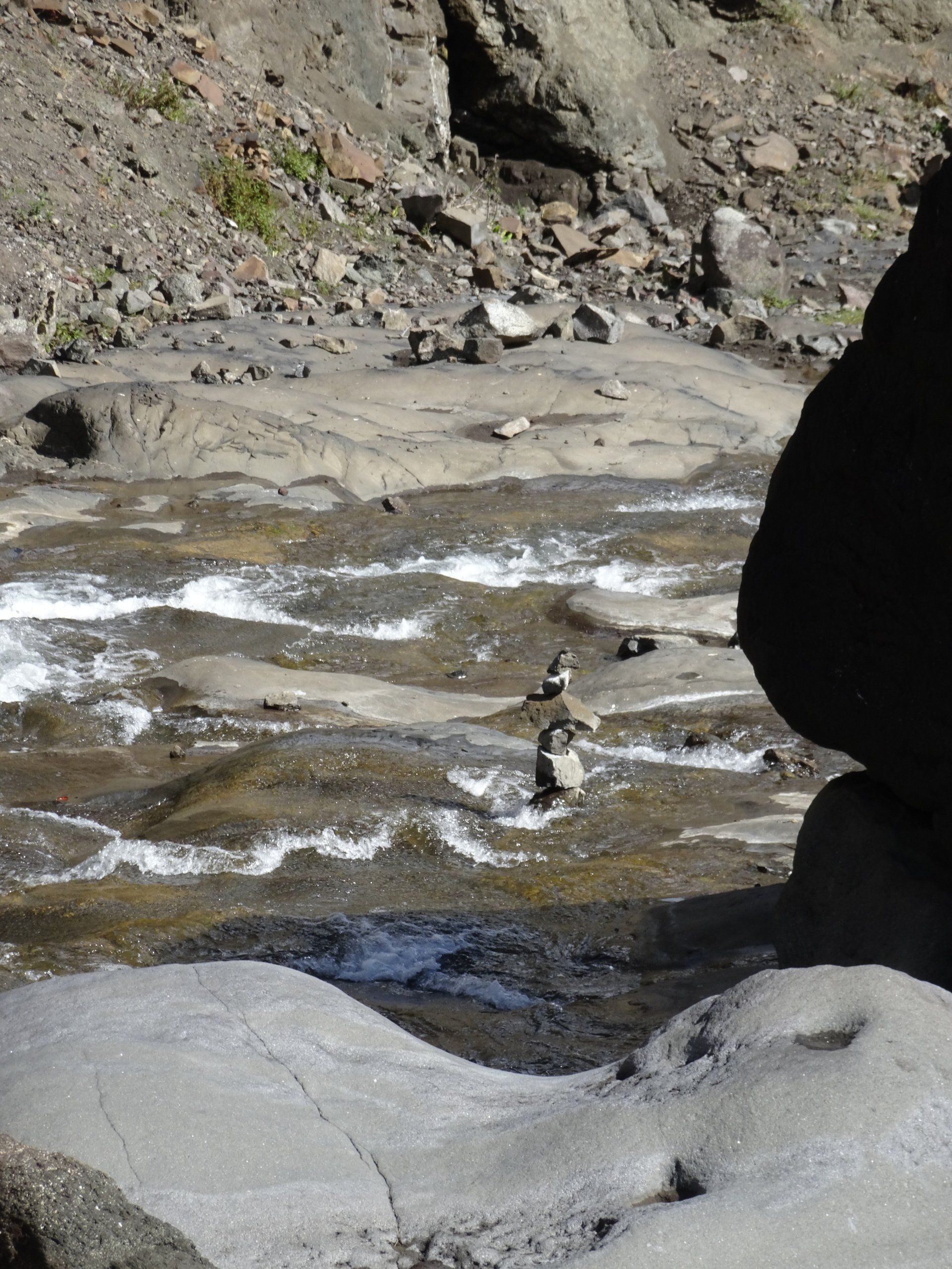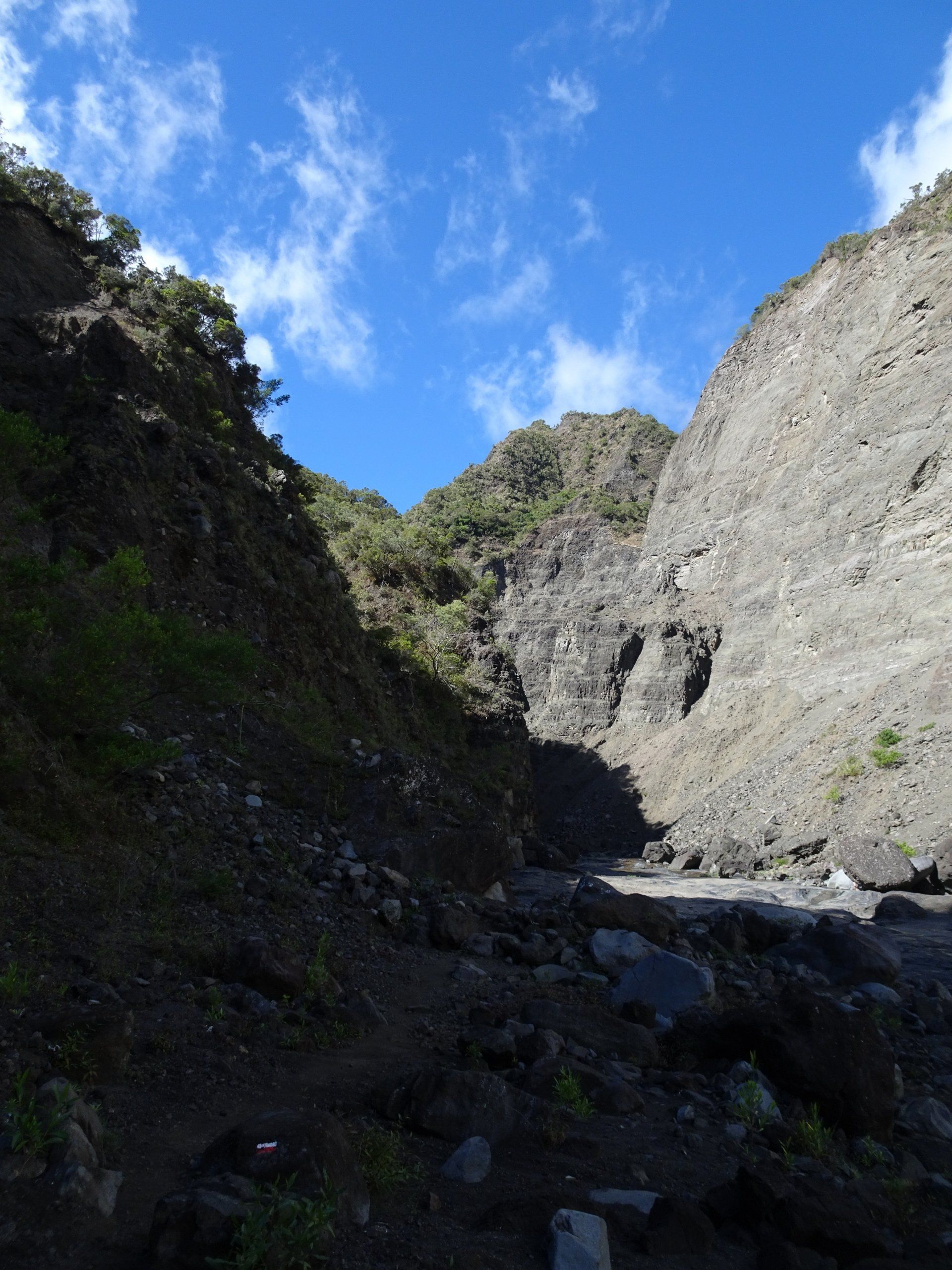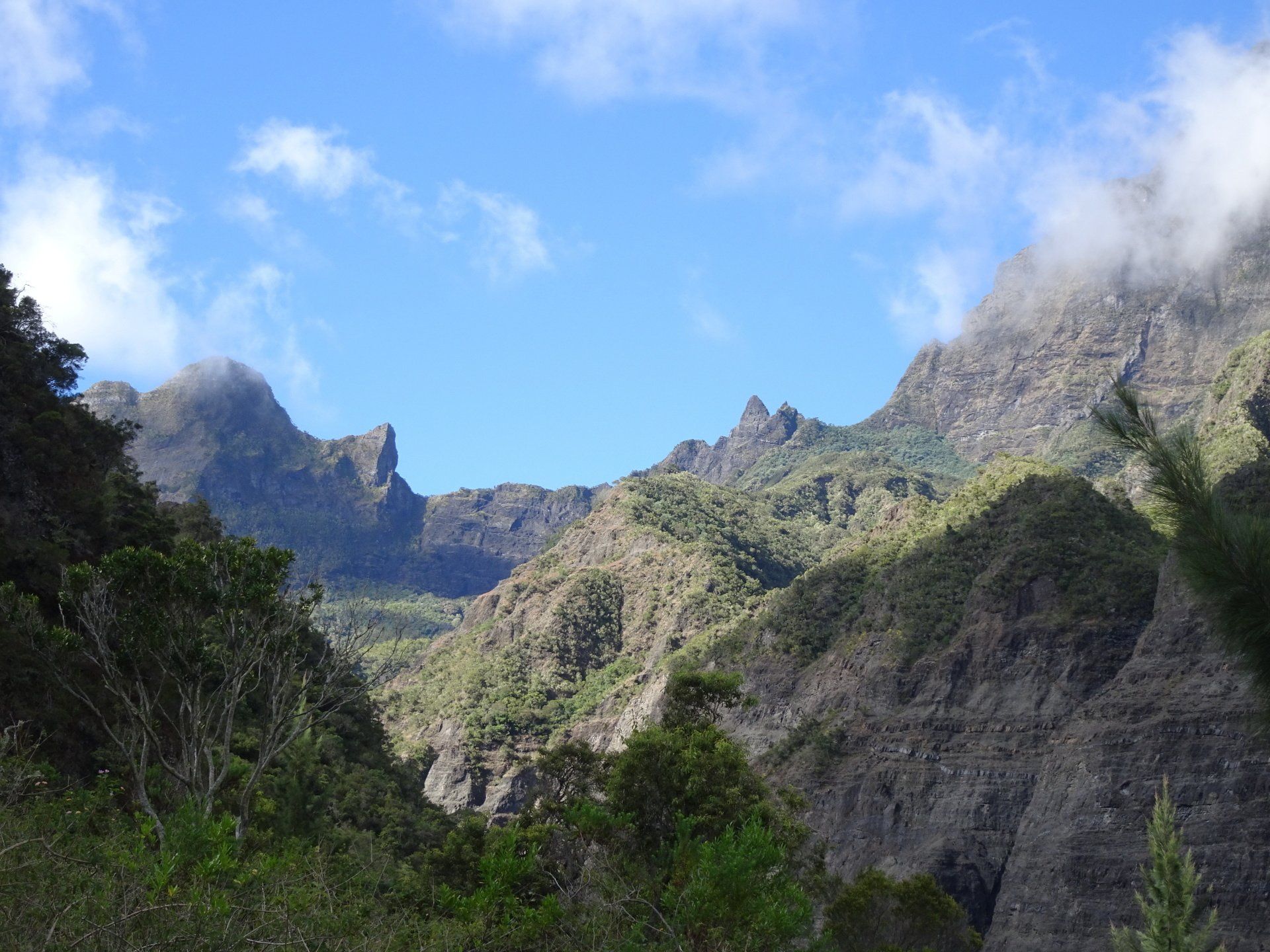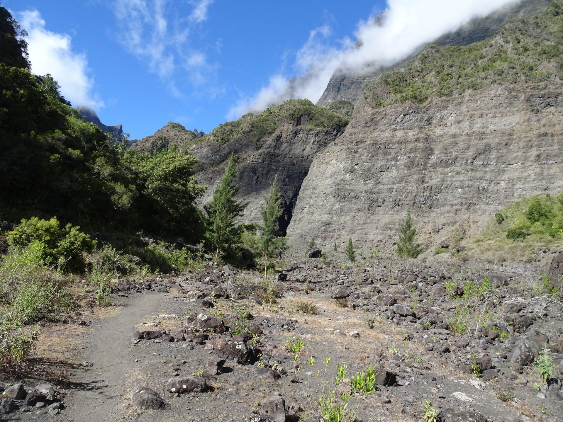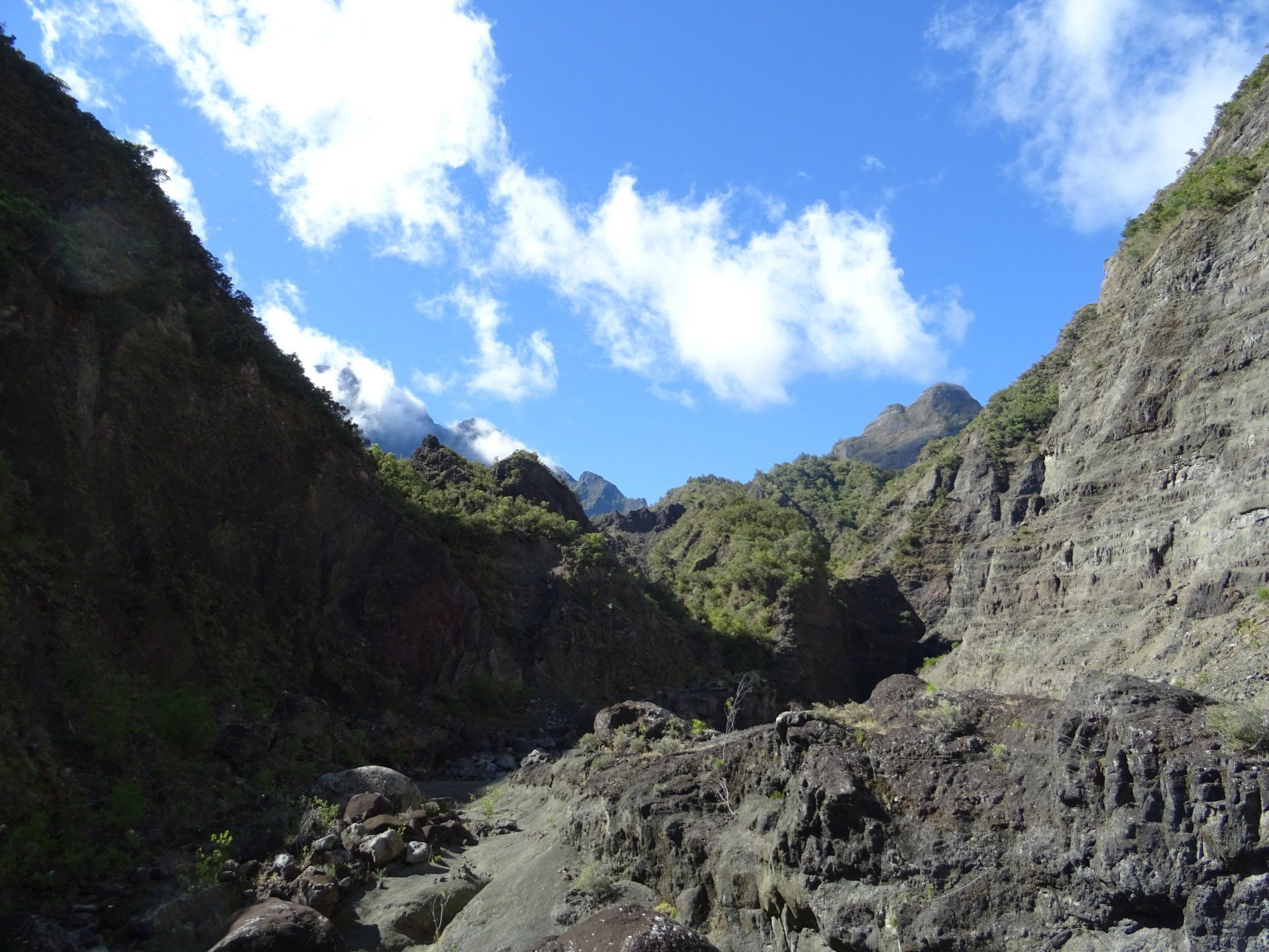 Nous aurons quelques gouttes au départ mais finalement, les sur-sacs ne serviront pas vraiment. Les montées-descentes se font sous un ciel couvert, l’atmosphère est pleine de microgouttes.