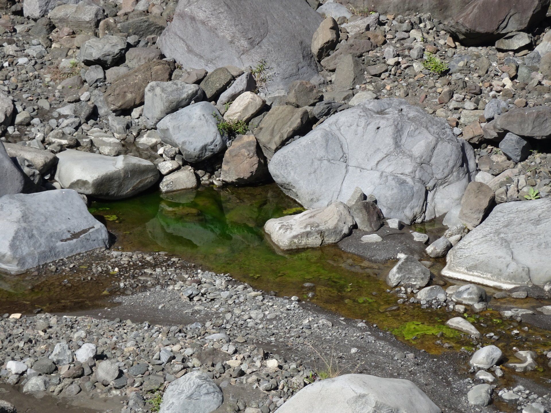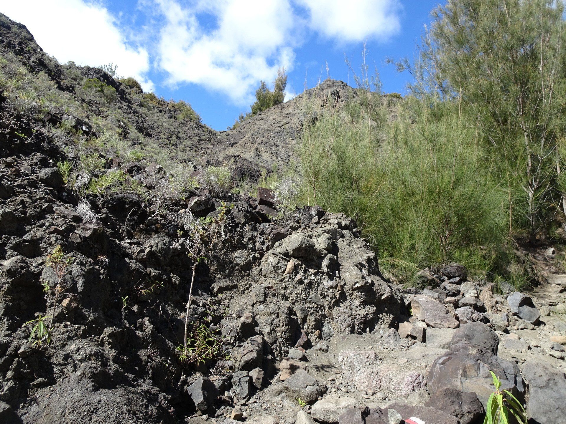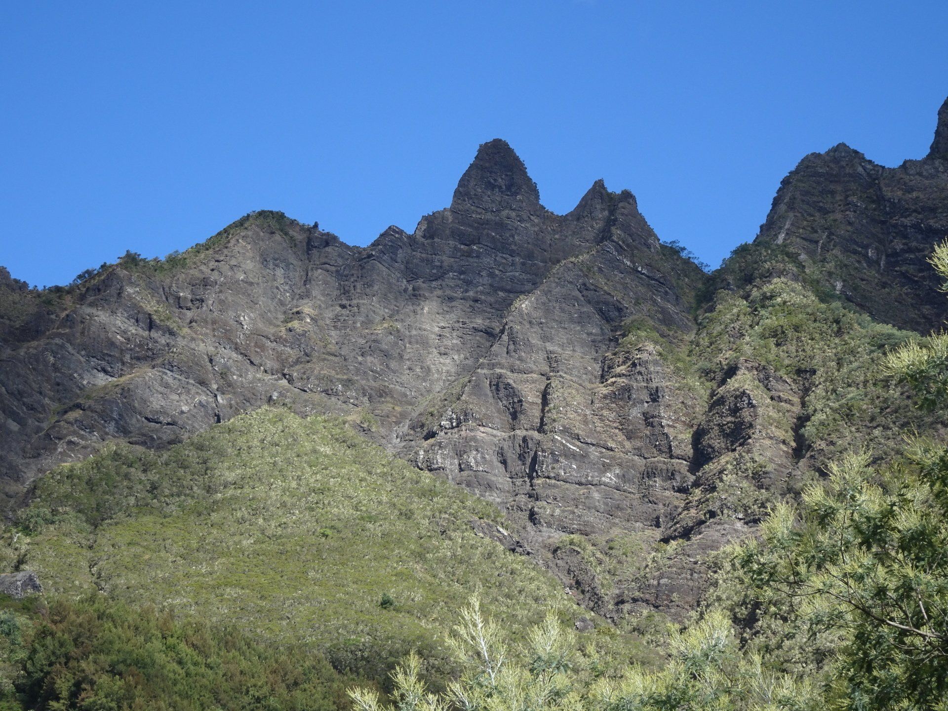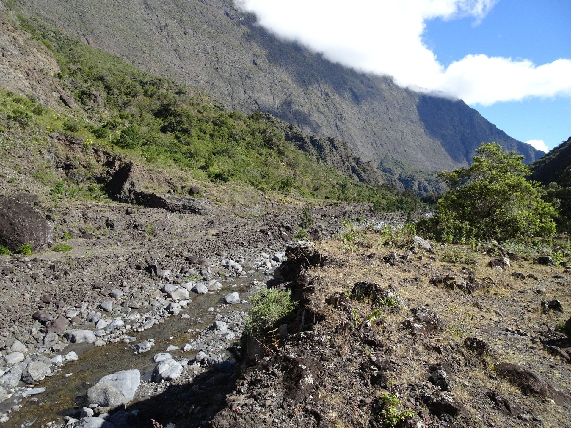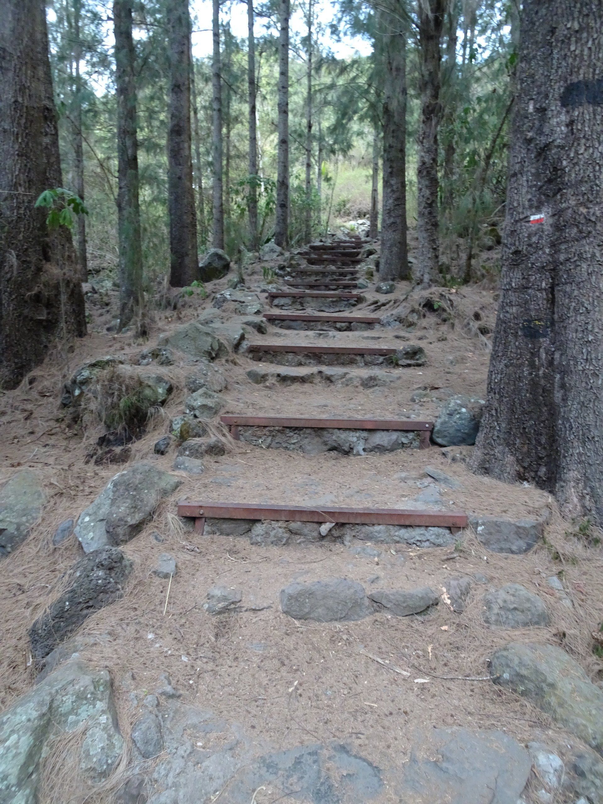 Nous aurons quelques gouttes au départ mais finalement, les sur-sacs ne serviront pas vraiment. Les montées-descentes se font sous un ciel couvert, l’atmosphère est pleine de microgouttes.