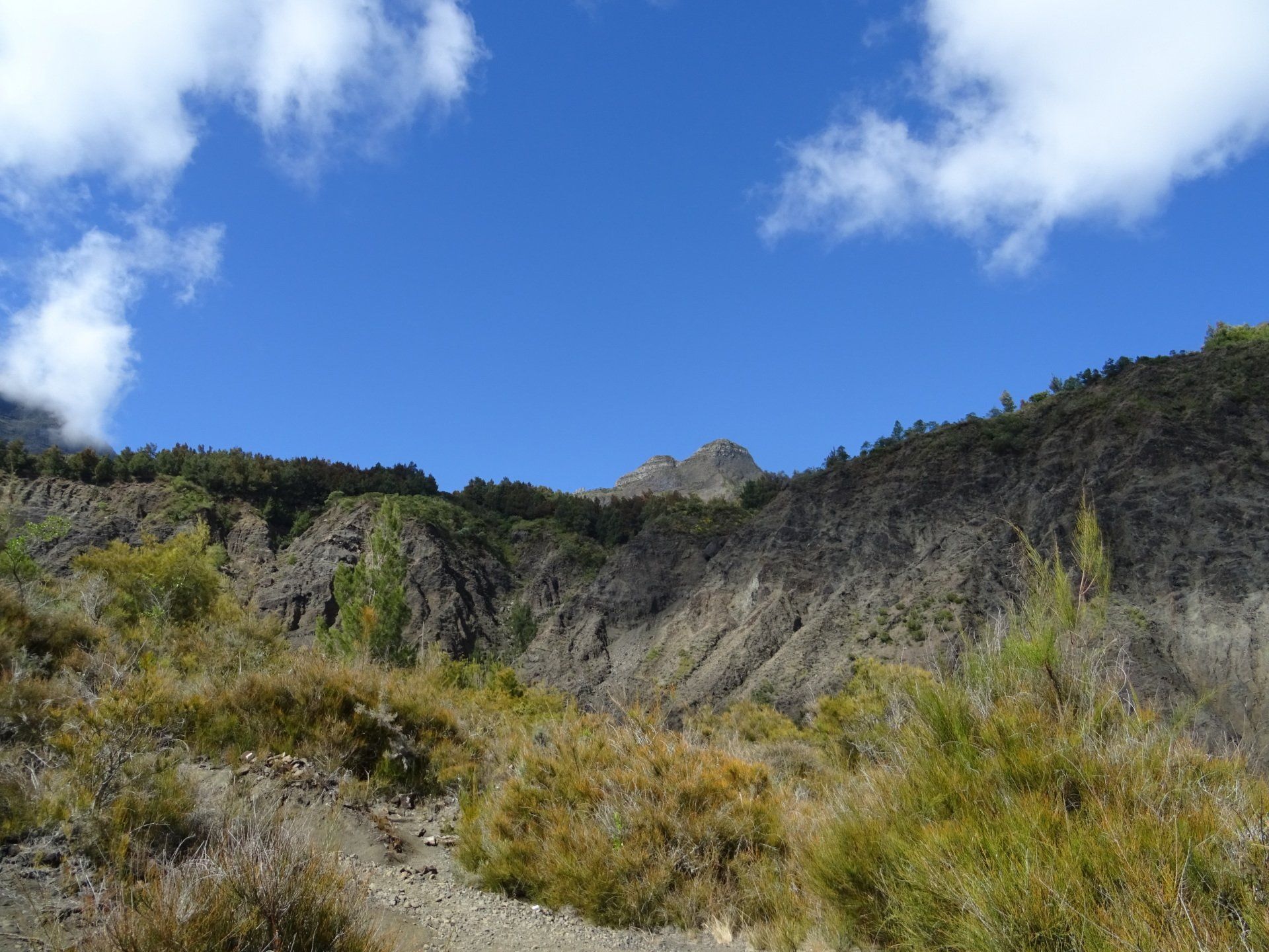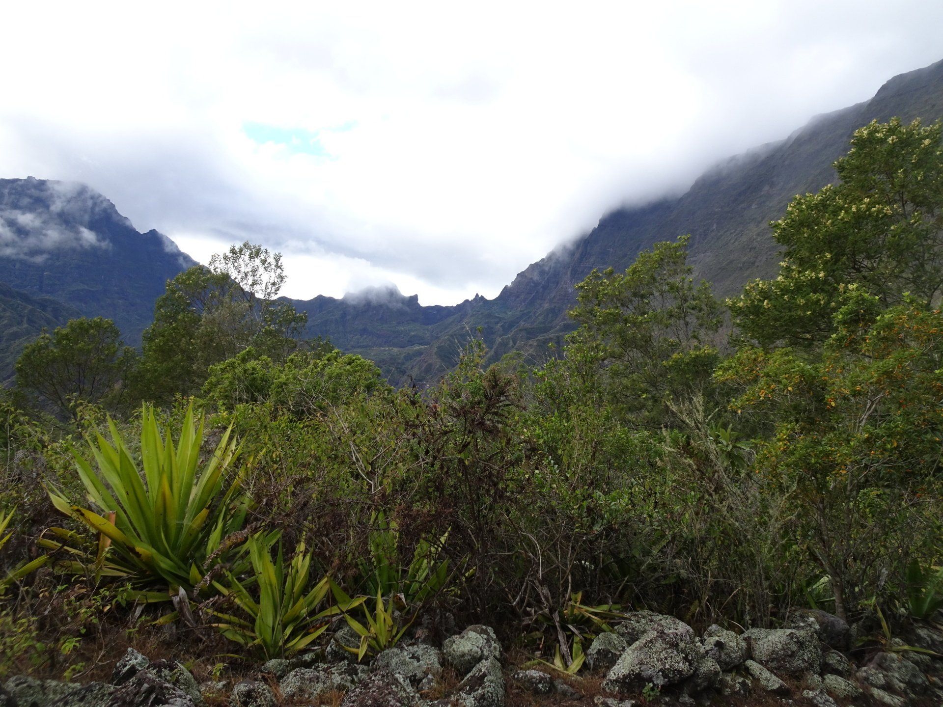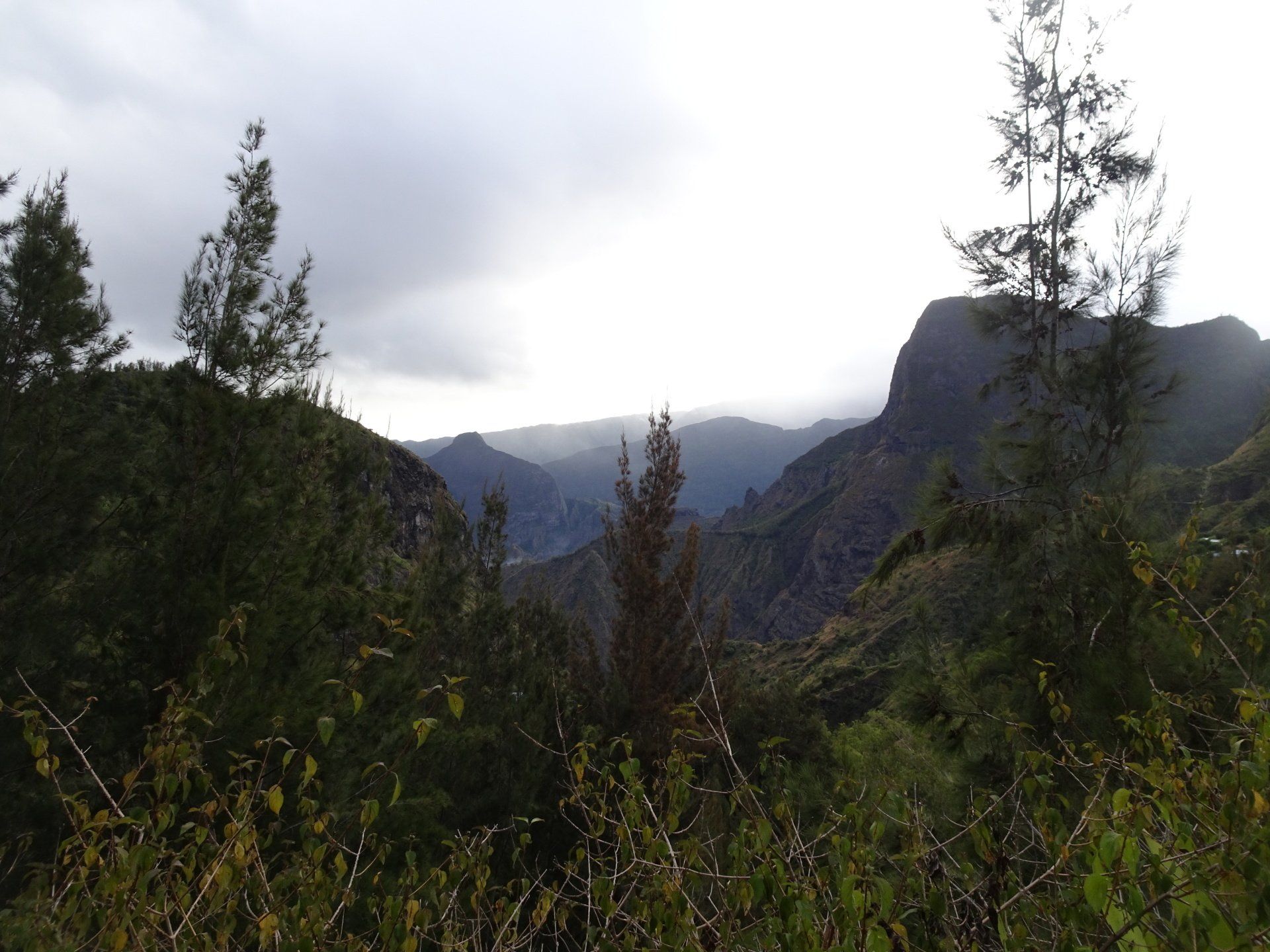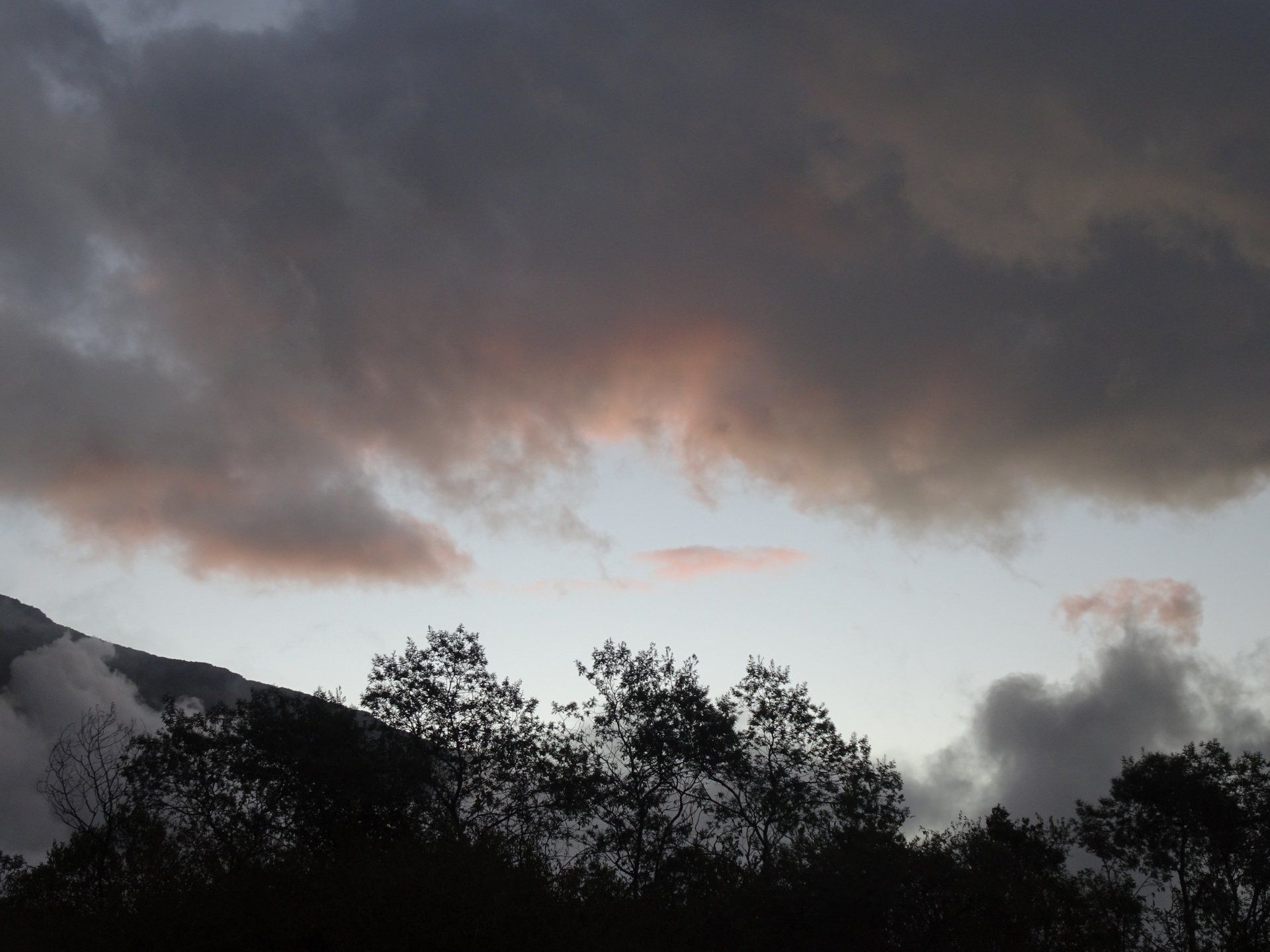 Au réveil, le ciel est complètement bouché. Il a plu dans la nuit et nous voyons au loin vers la Roche Ecrite.