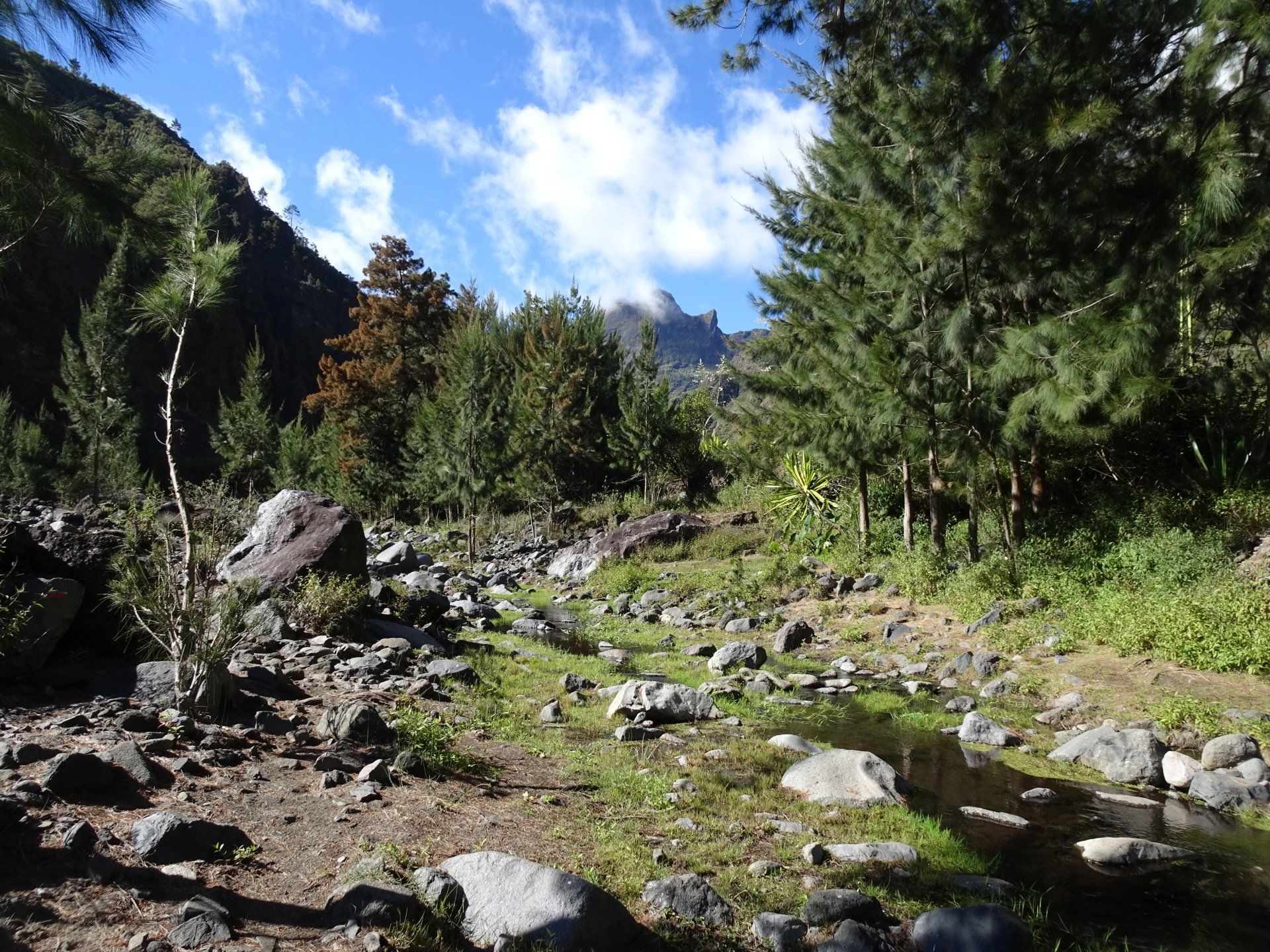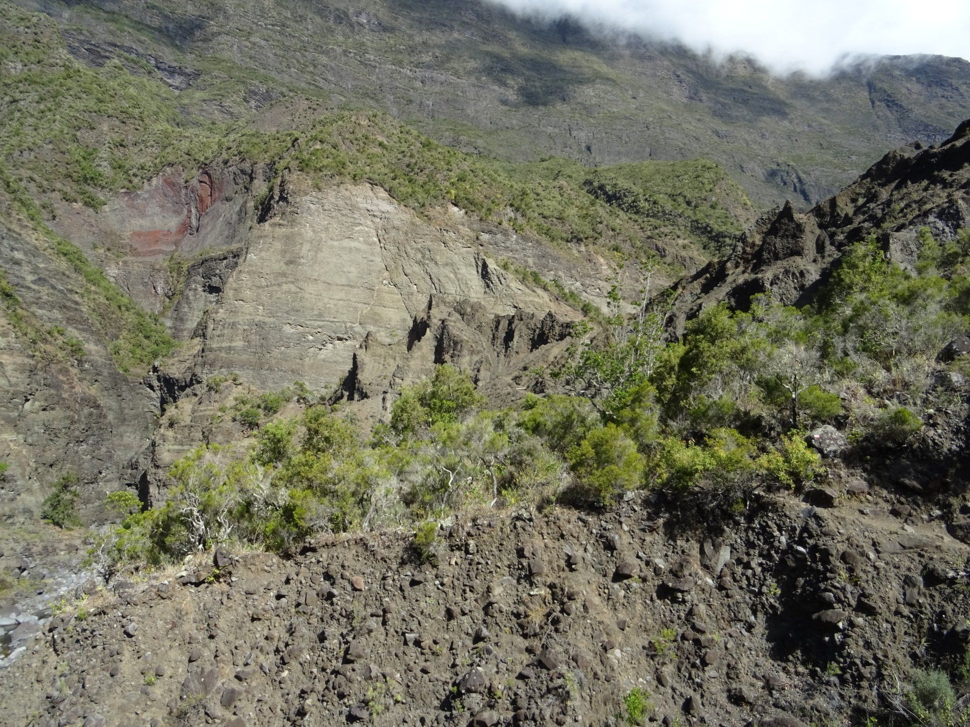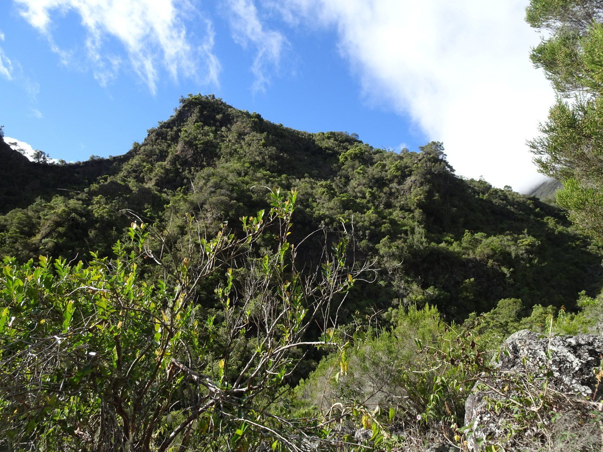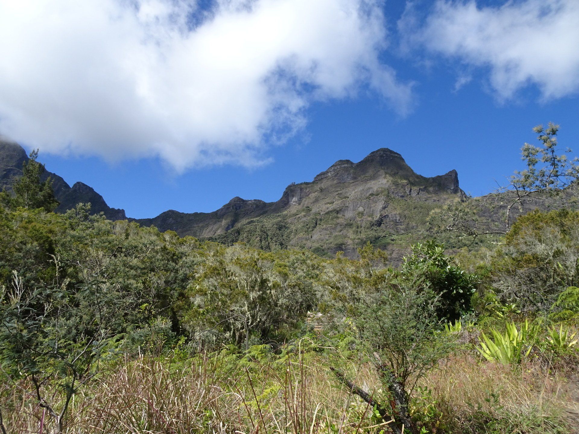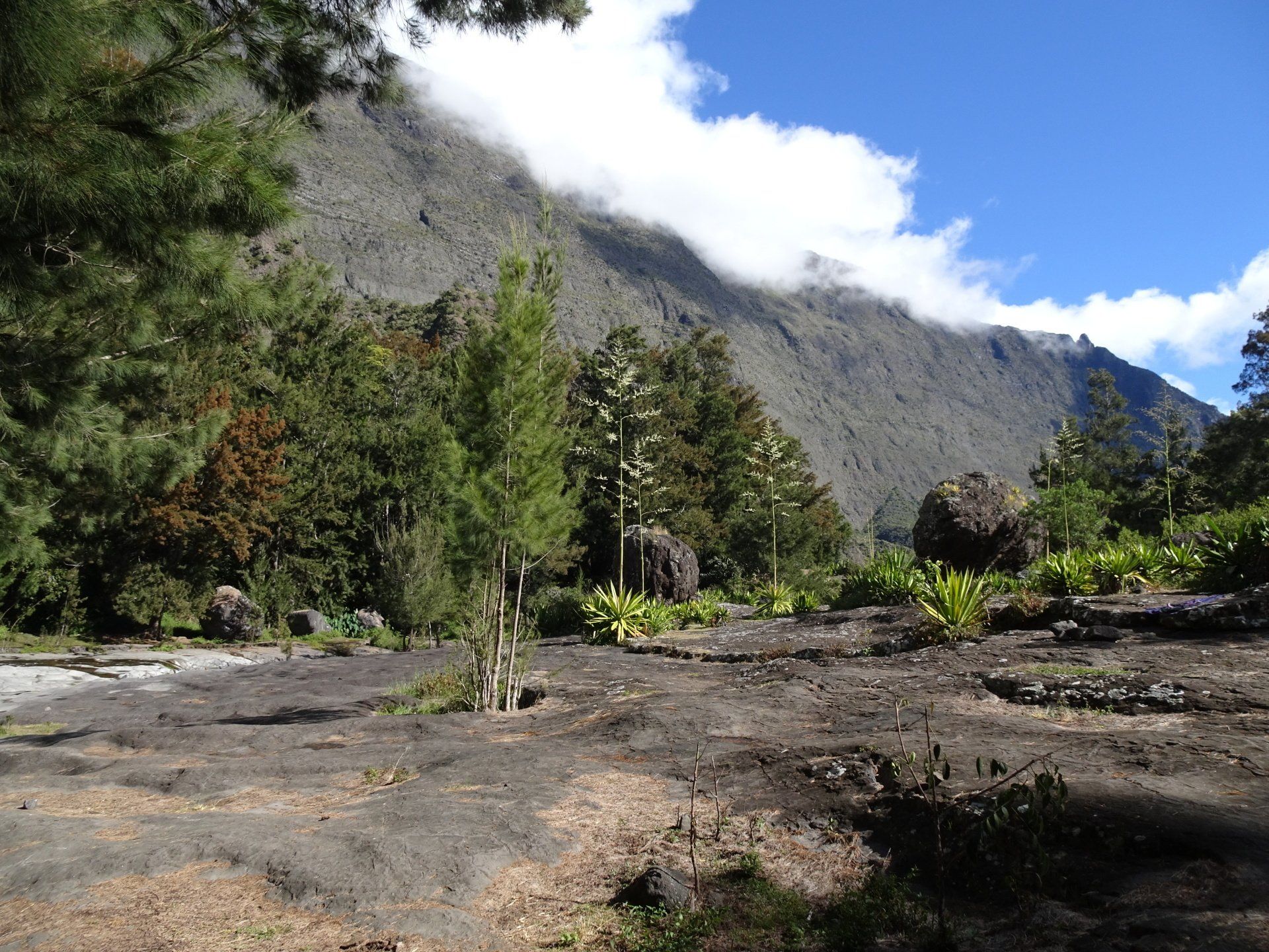 Au réveil, le ciel est complètement bouché. Il a plu dans la nuit et nous voyons au loin vers la Roche Ecrite.