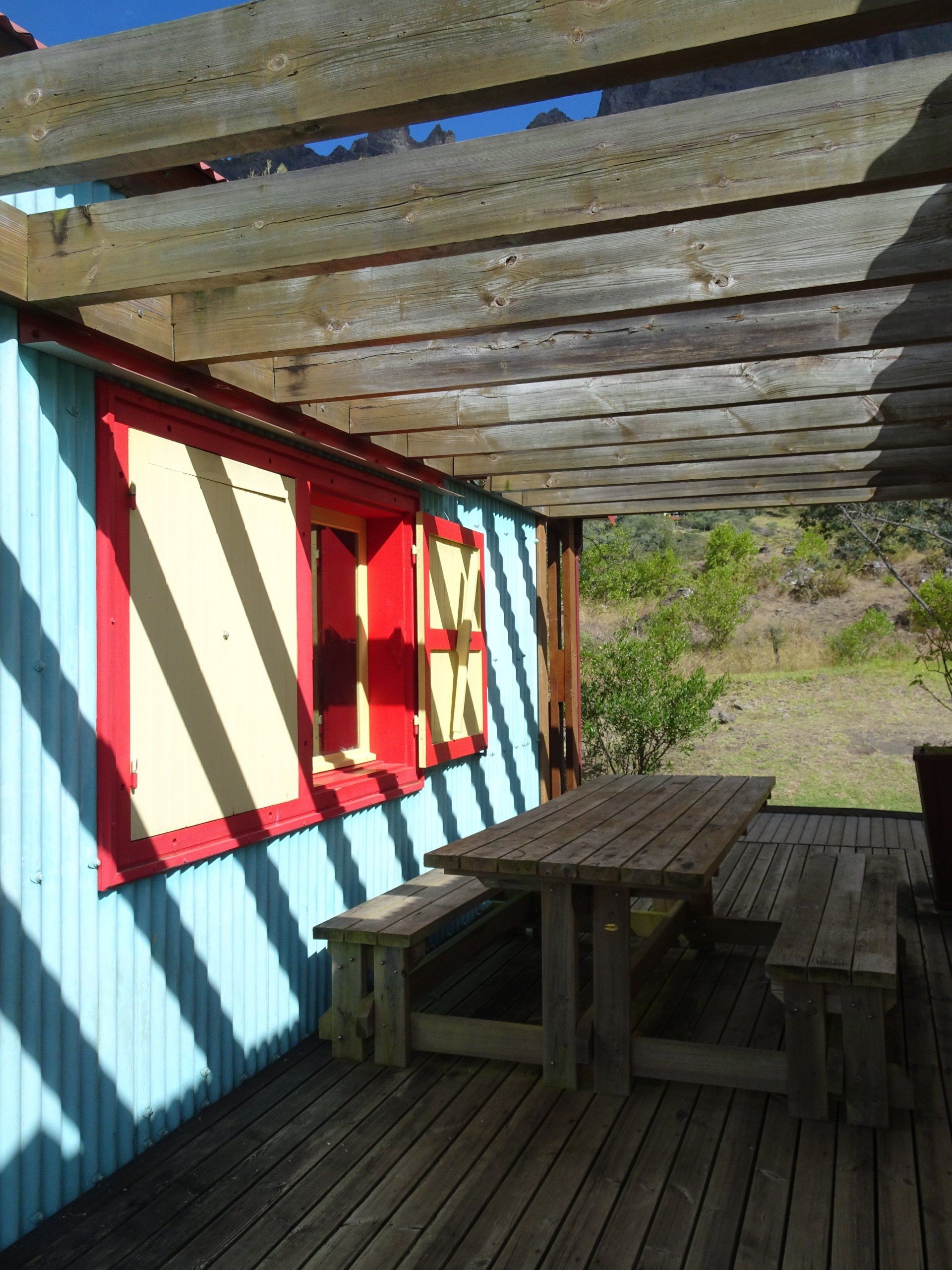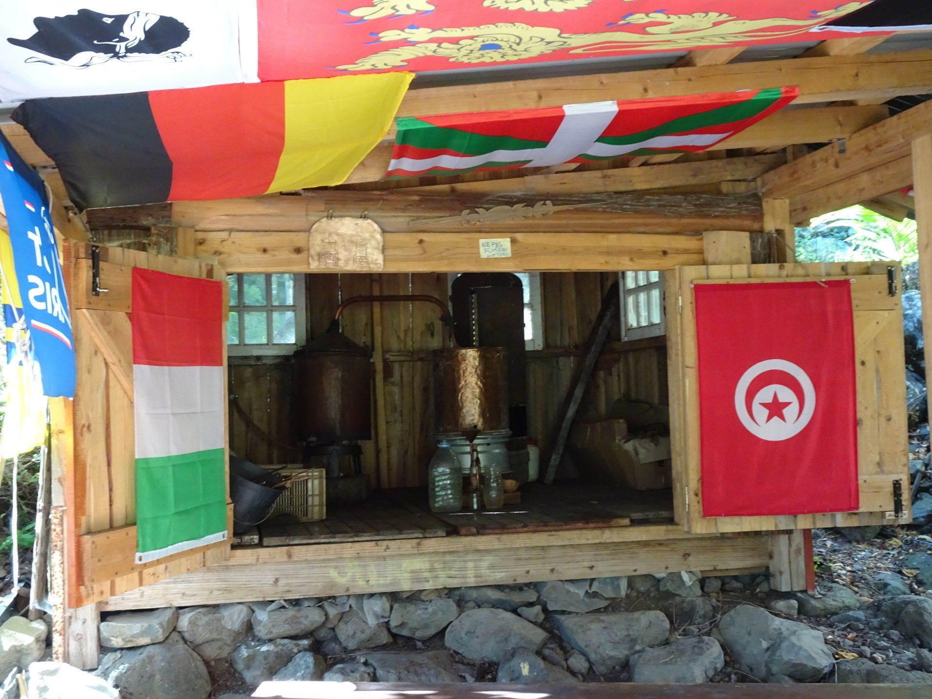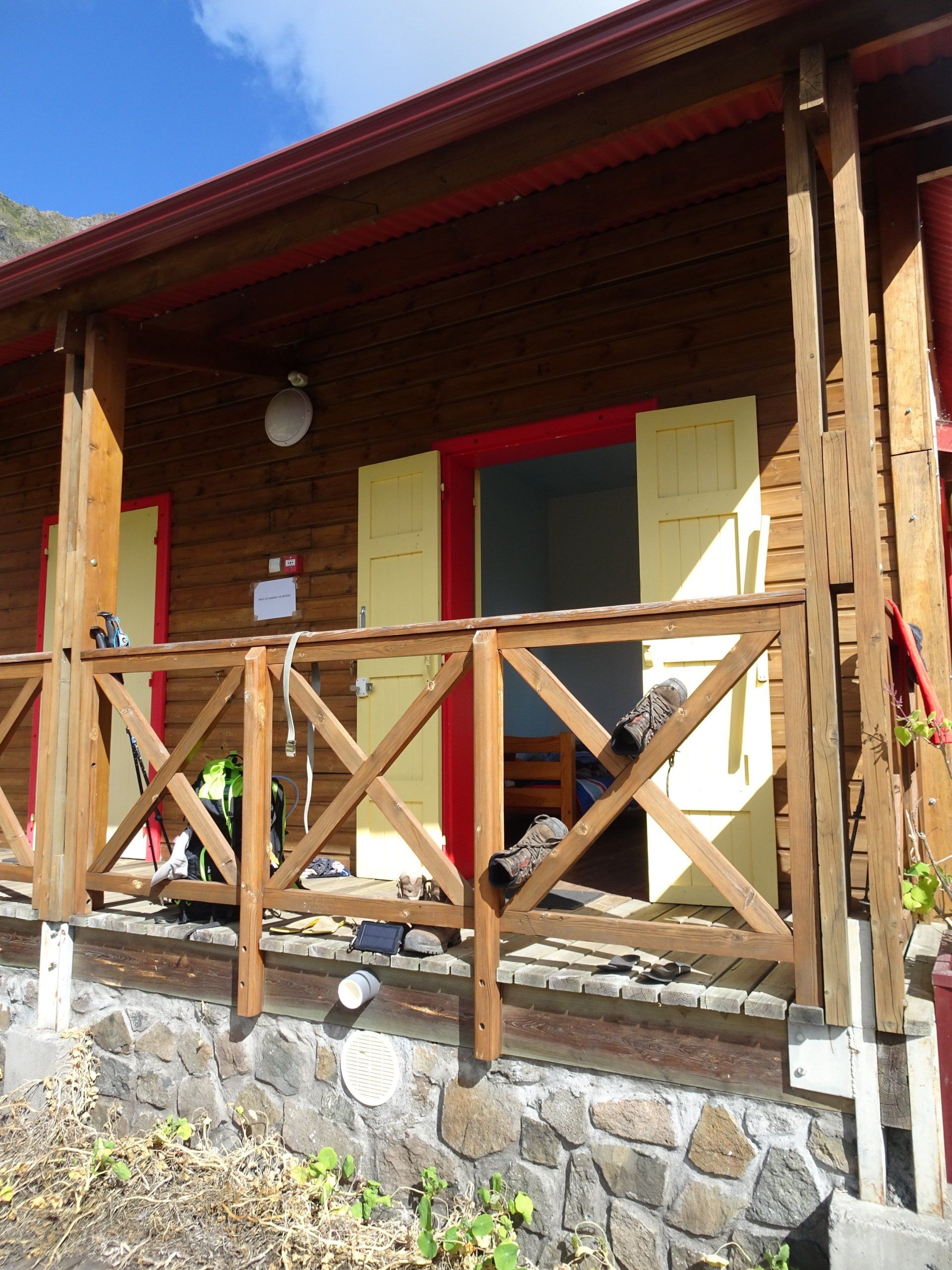 Petit déjeuner : thé, café, lait, du pain tiède qui vient d’un autre gîte de l’Îlet, beurre, confiture, briquettes de jus de fruits.