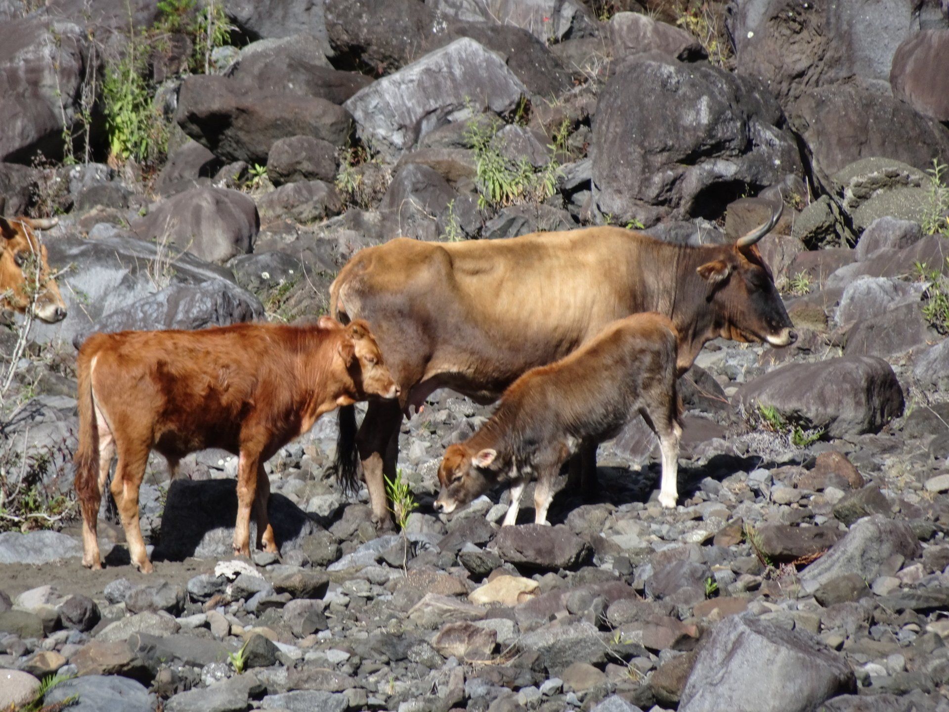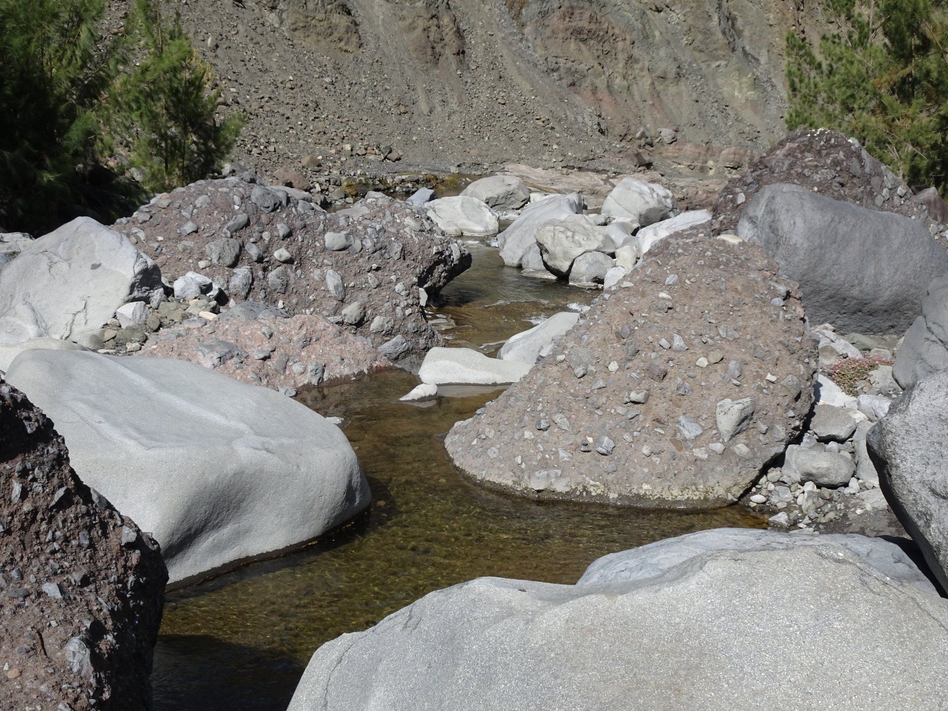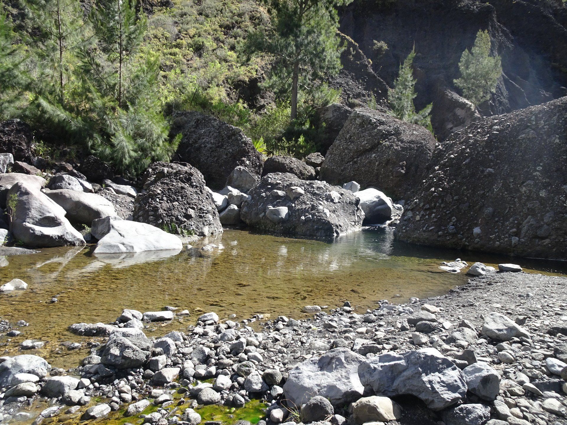 Petit déjeuner : thé, café, lait, du pain tiède qui vient d’un autre gîte de l’Îlet, beurre, confiture, briquettes de jus de fruits.