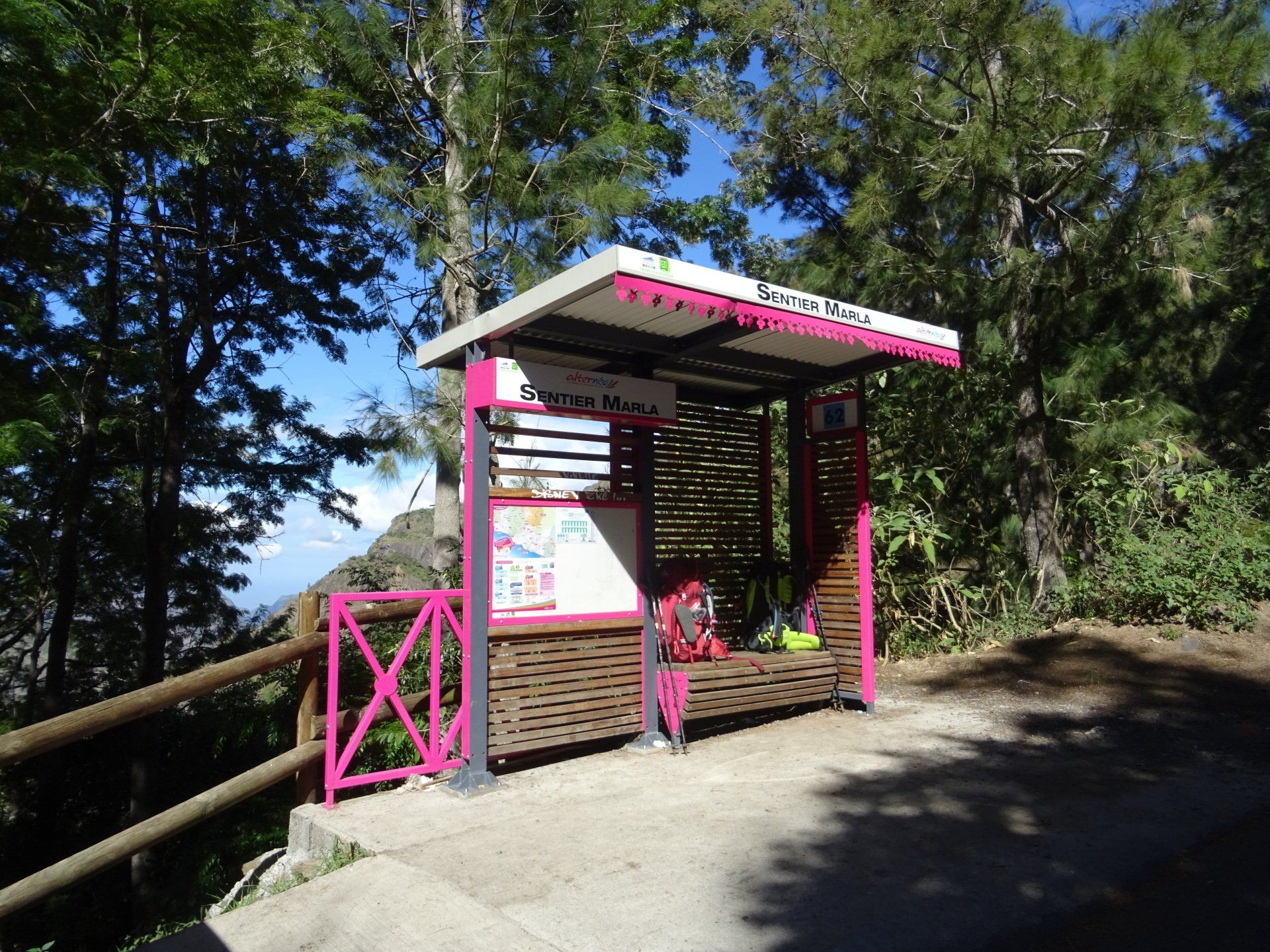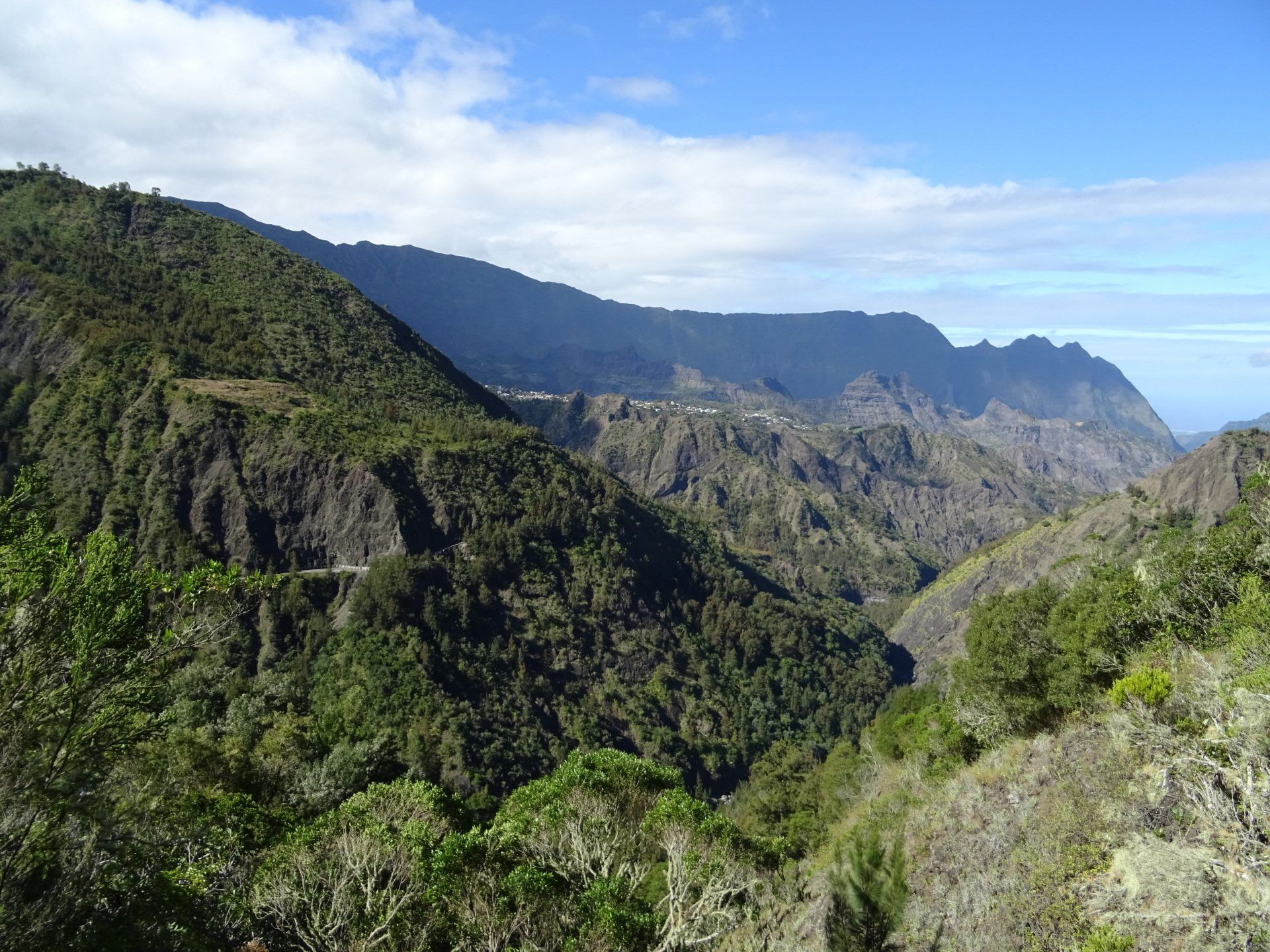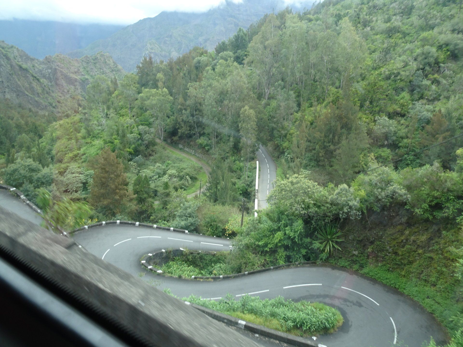 Nous faisons un tour dans Cilaos, église, thermes, … avant de revenir vers le gîte. Personne. Nous avons reçu un texto de la nouvelle hôtesse et pouvons prendre possession des lieux pour une bonne douche et une lessive bienvenues avant le Piton des Neiges au confort sommaire.