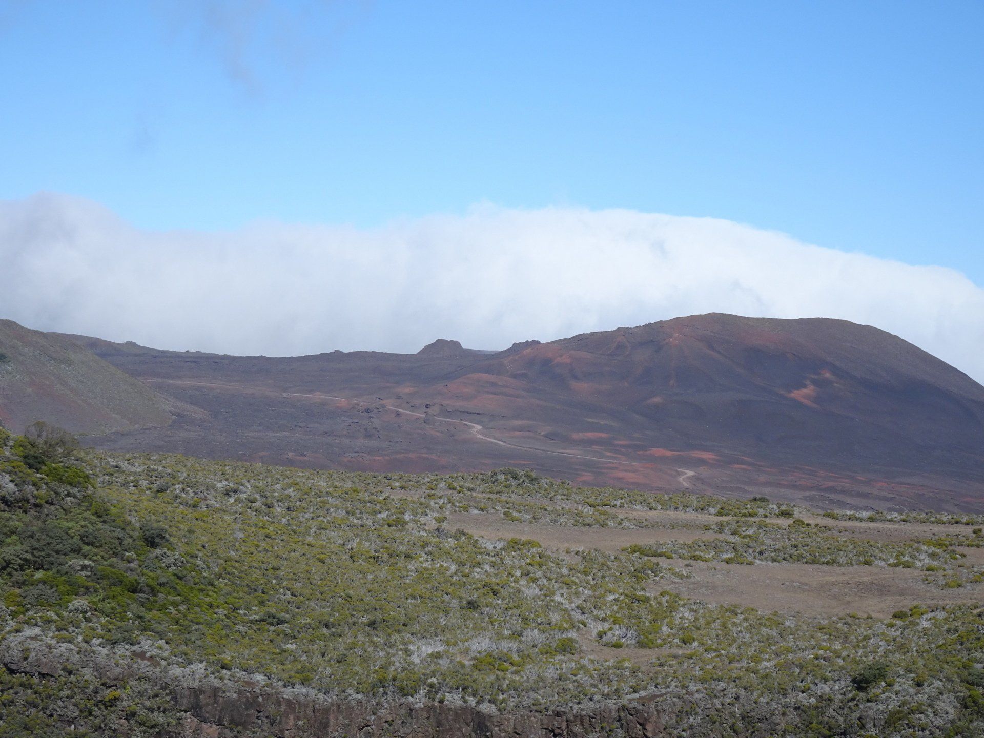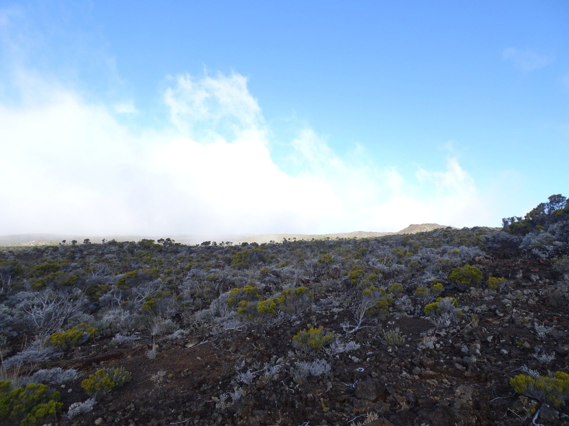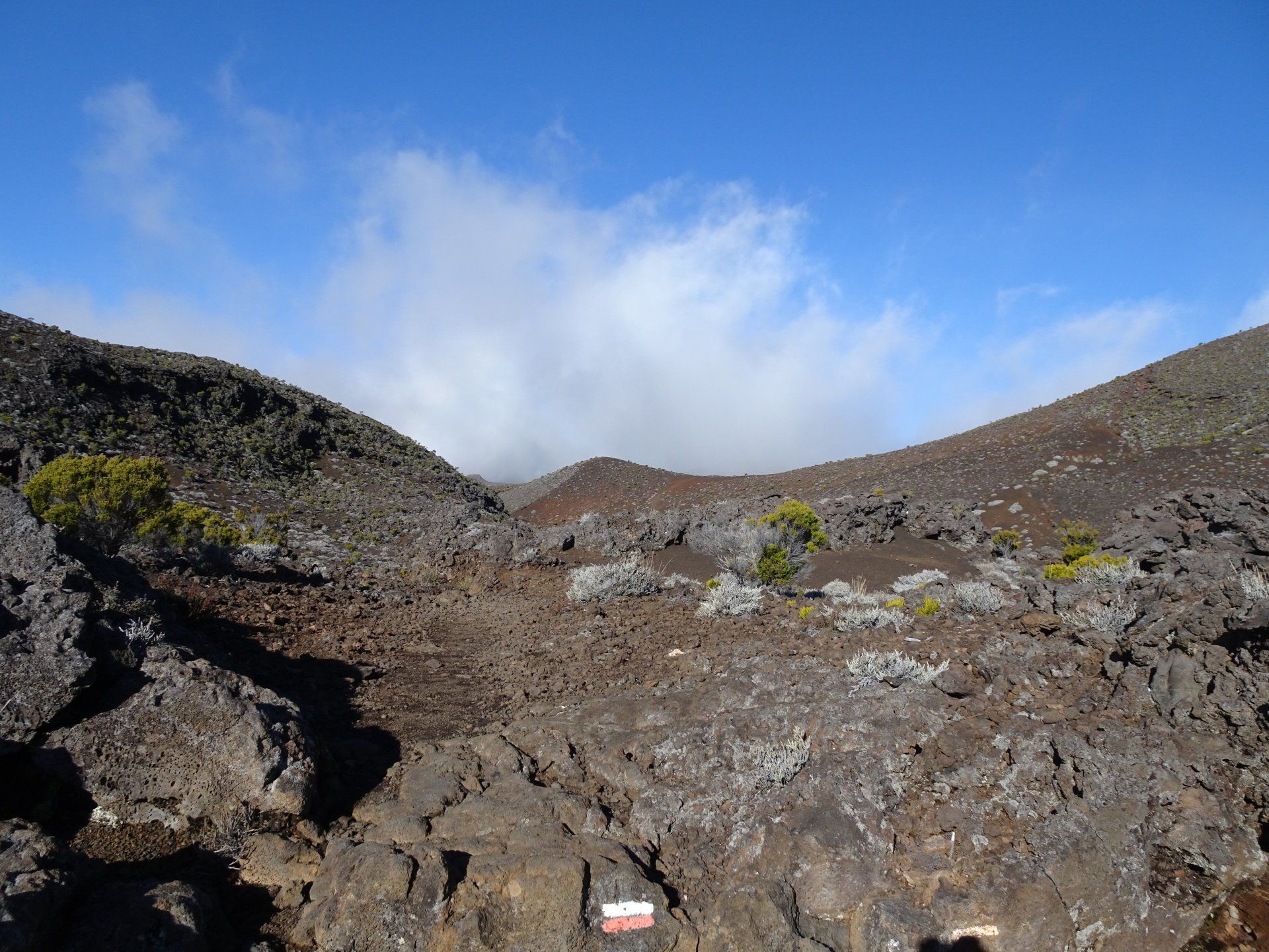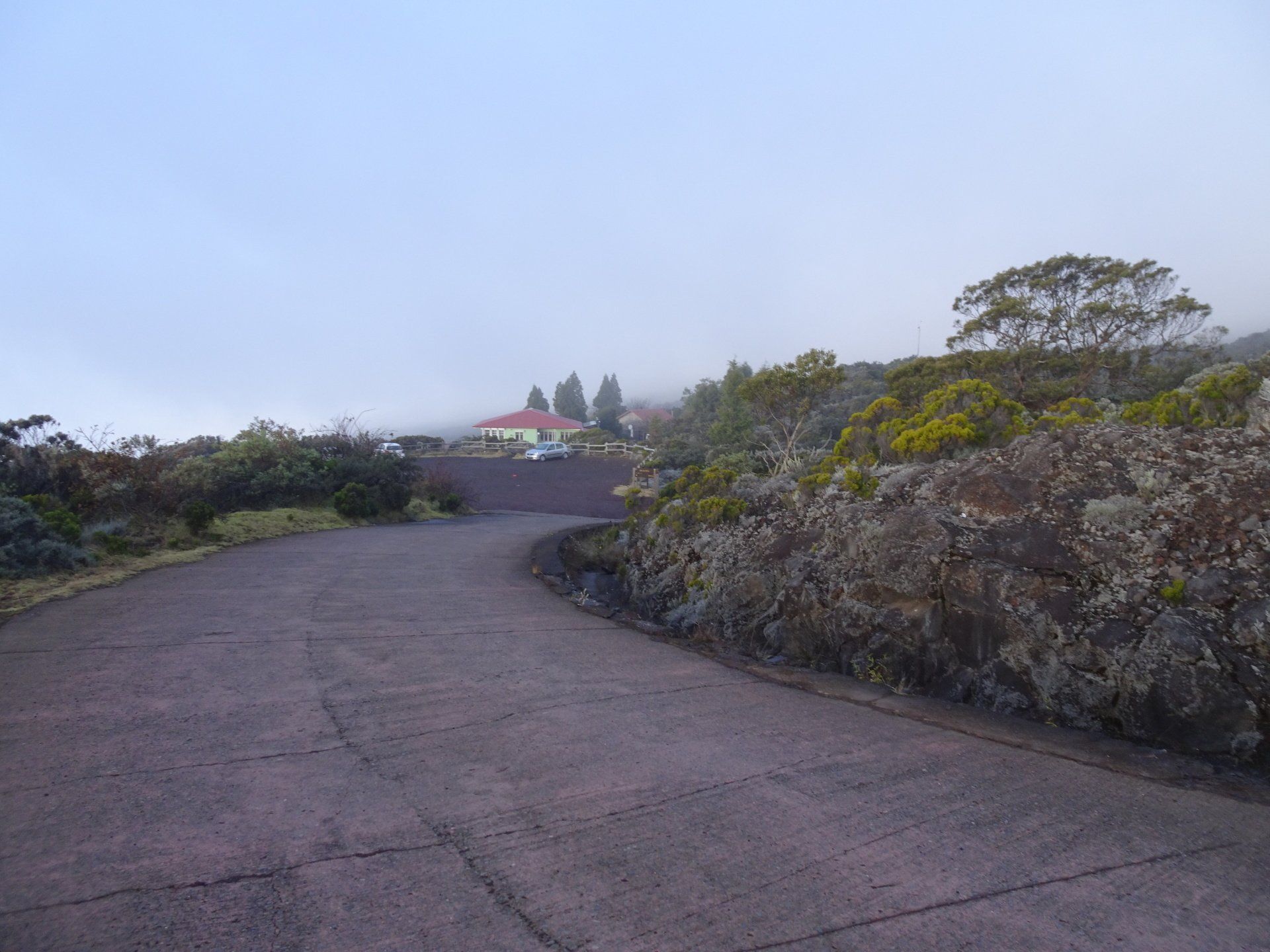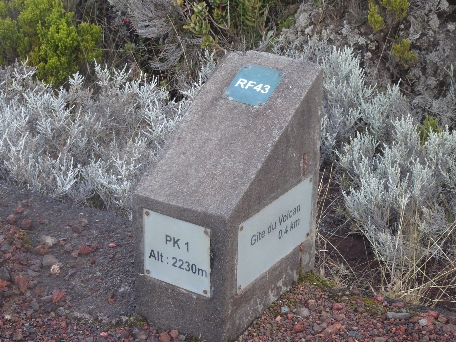 L’enclos qui donne accès à la plaine du Volcan est fermé, a priori encore pour un certain temps. De ce fait et aussi à cause de la météo un peu pourrie qui semble vouloir durer, nous décidons de ne rester qu’une seule nuit au lieu des 2 initialement réservées. Nous n’arrivons pas à joindre le gîte de Basse-vallée pour le lendemain soir. 2 chemins s’offrent à nous pour la grande descente. Au gîte, personne ne semble en mesure de départager les 2 options.