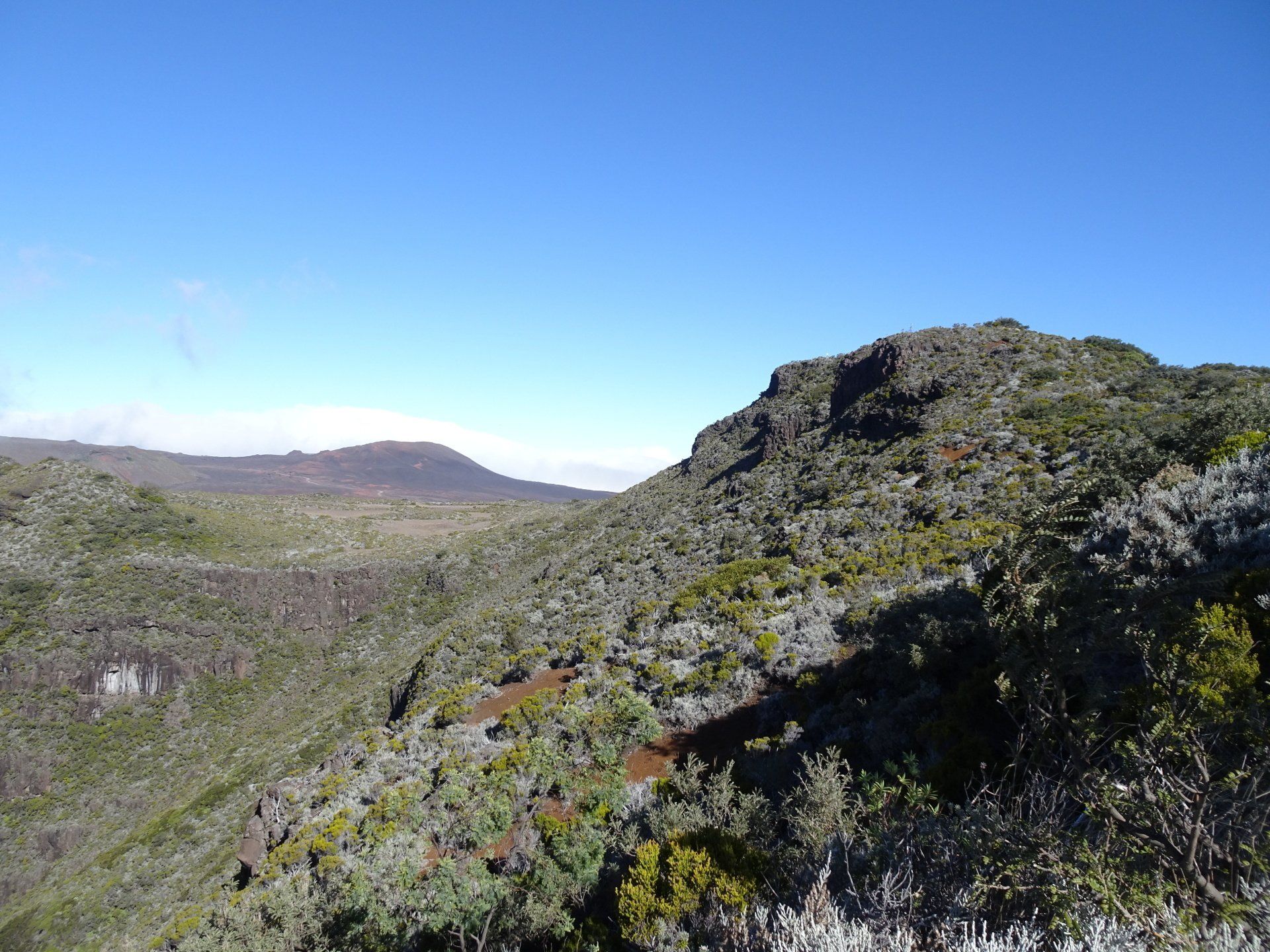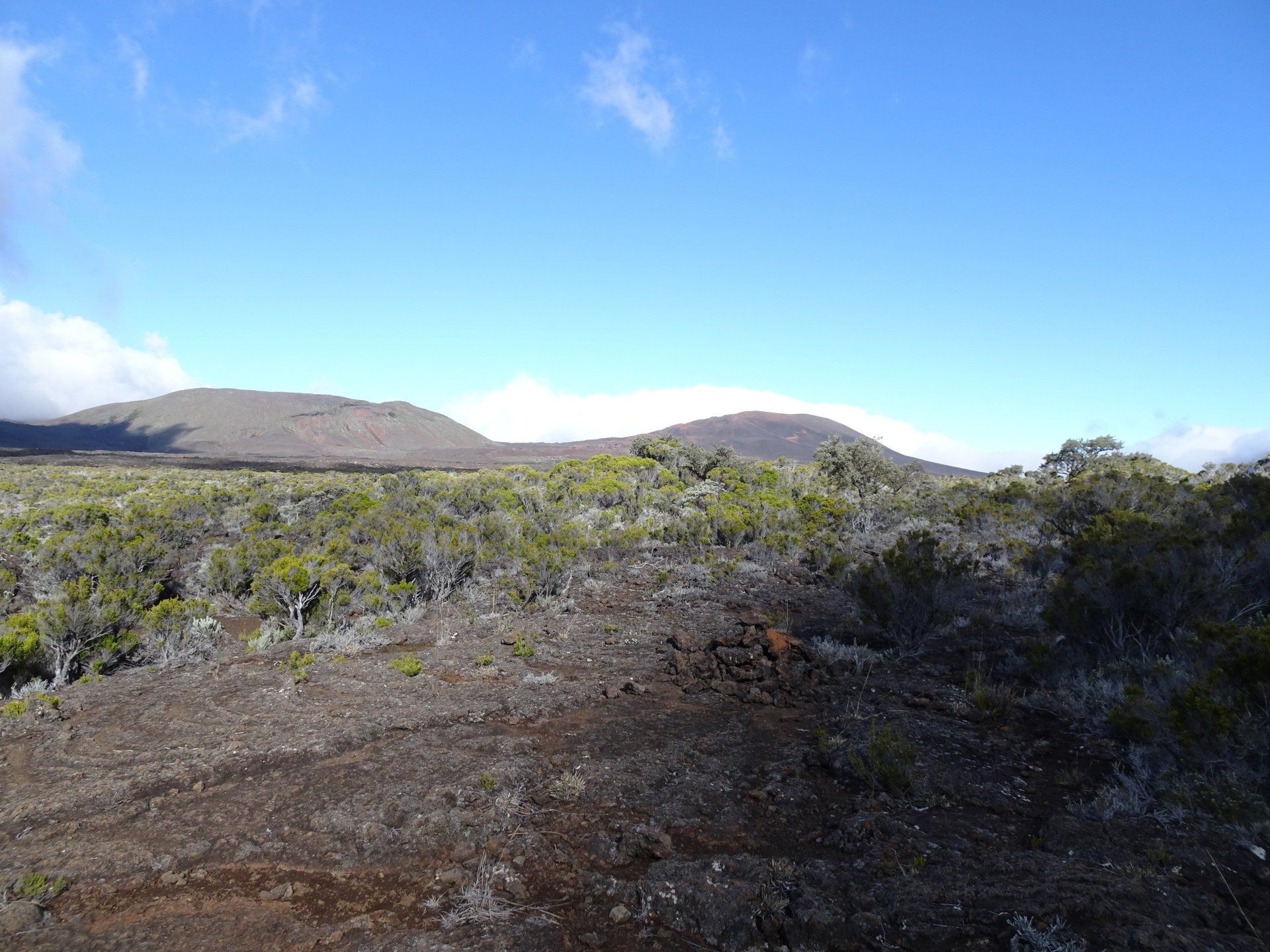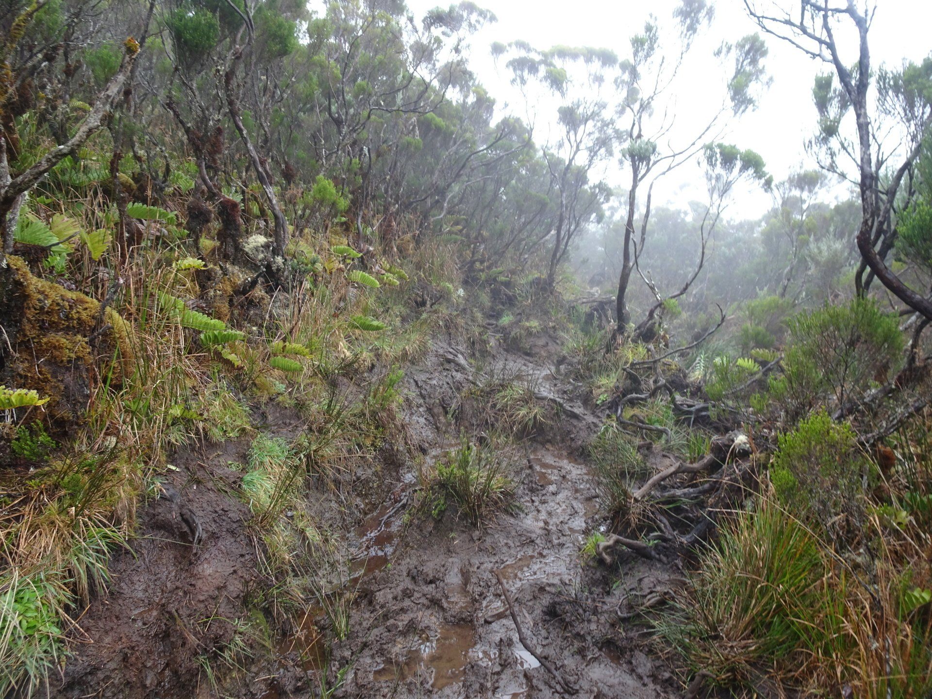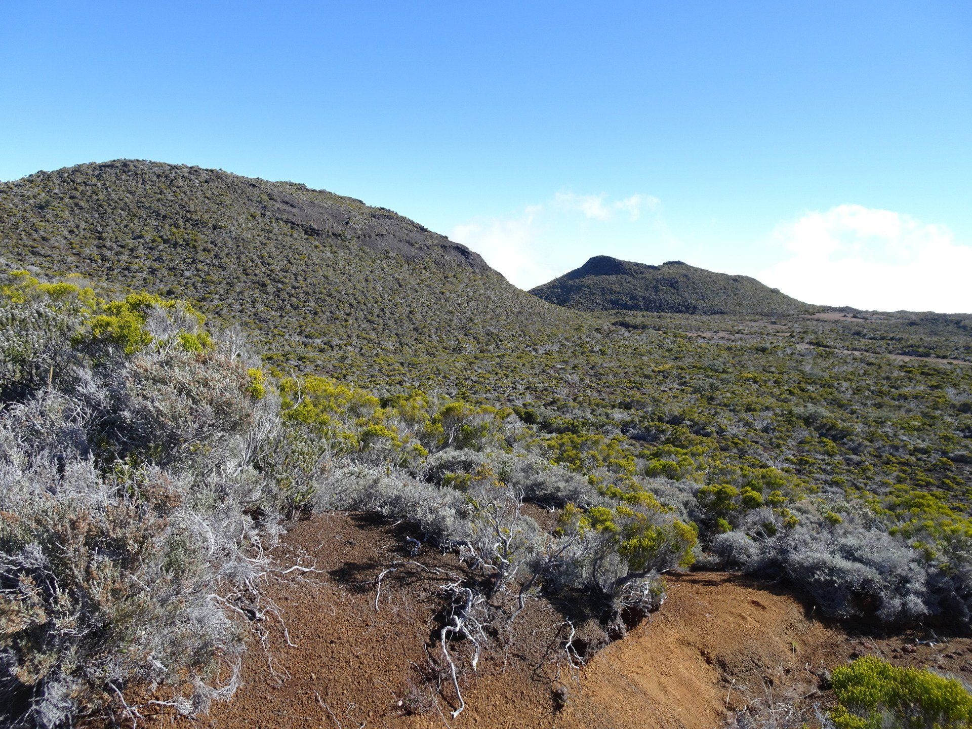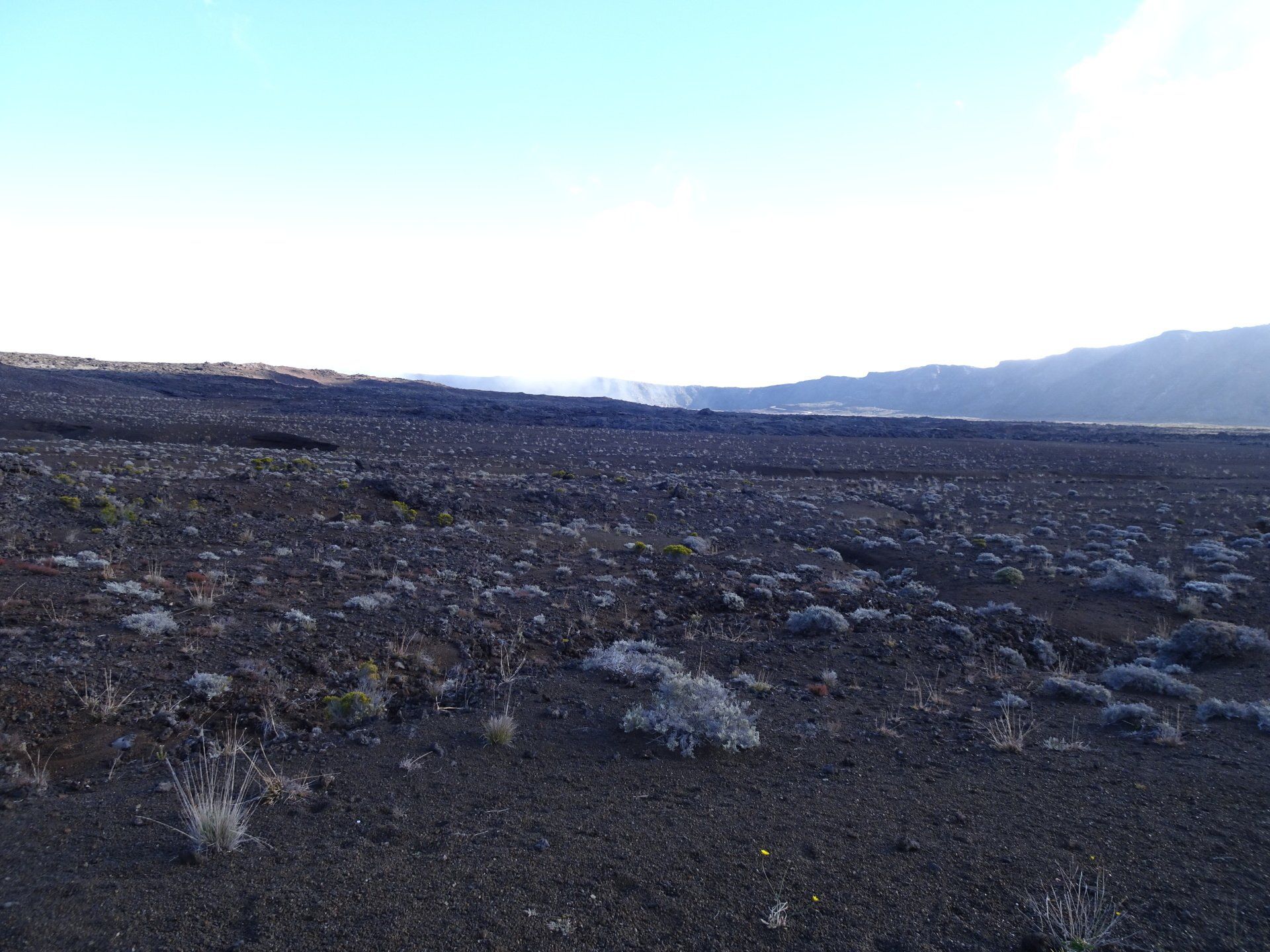 L’enclos qui donne accès à la plaine du Volcan est fermé, a priori encore pour un certain temps. De ce fait et aussi à cause de la météo un peu pourrie qui semble vouloir durer, nous décidons de ne rester qu’une seule nuit au lieu des 2 initialement réservées. Nous n’arrivons pas à joindre le gîte de Basse-vallée pour le lendemain soir. 2 chemins s’offrent à nous pour la grande descente. Au gîte, personne ne semble en mesure de départager les 2 options.