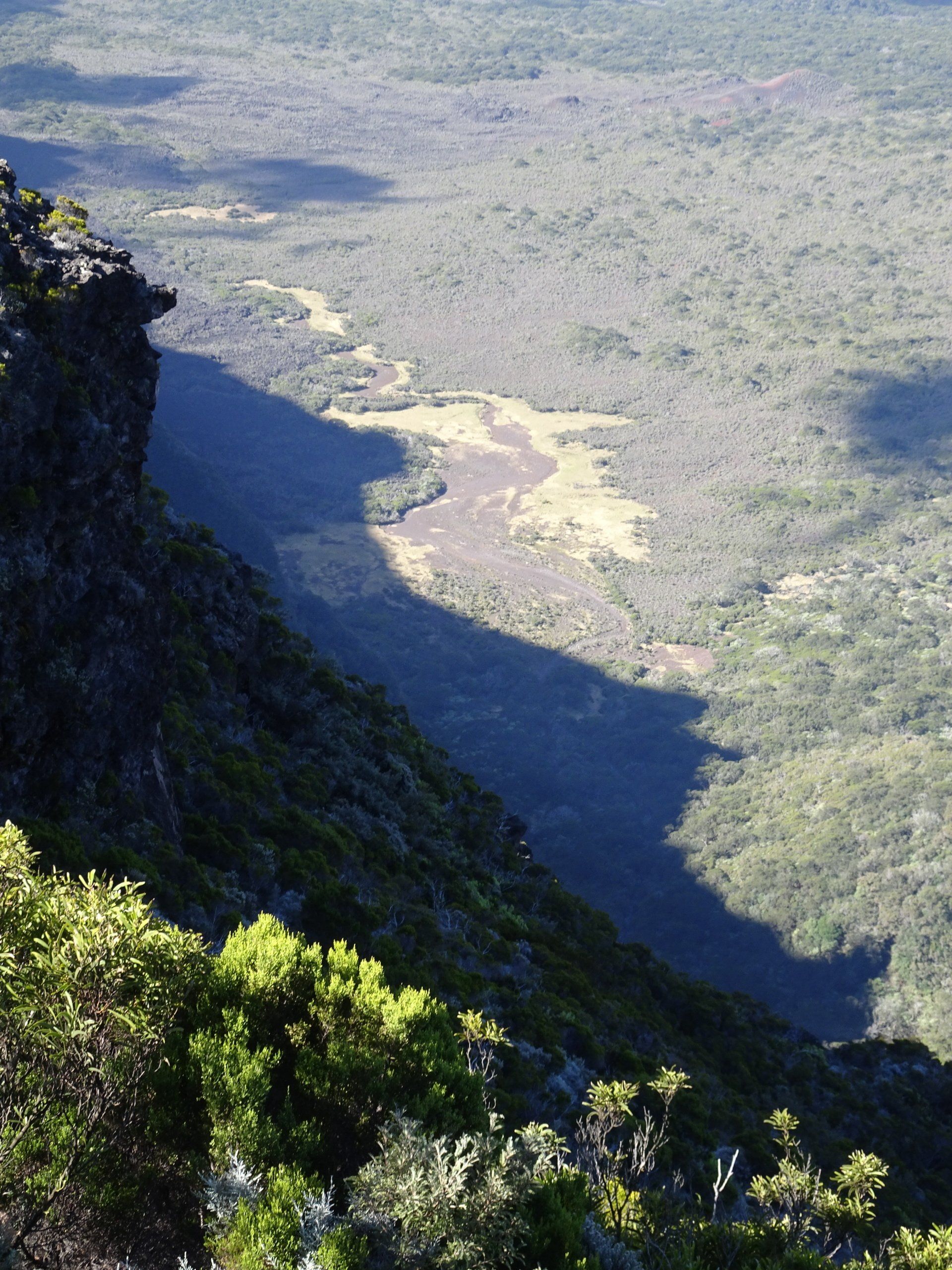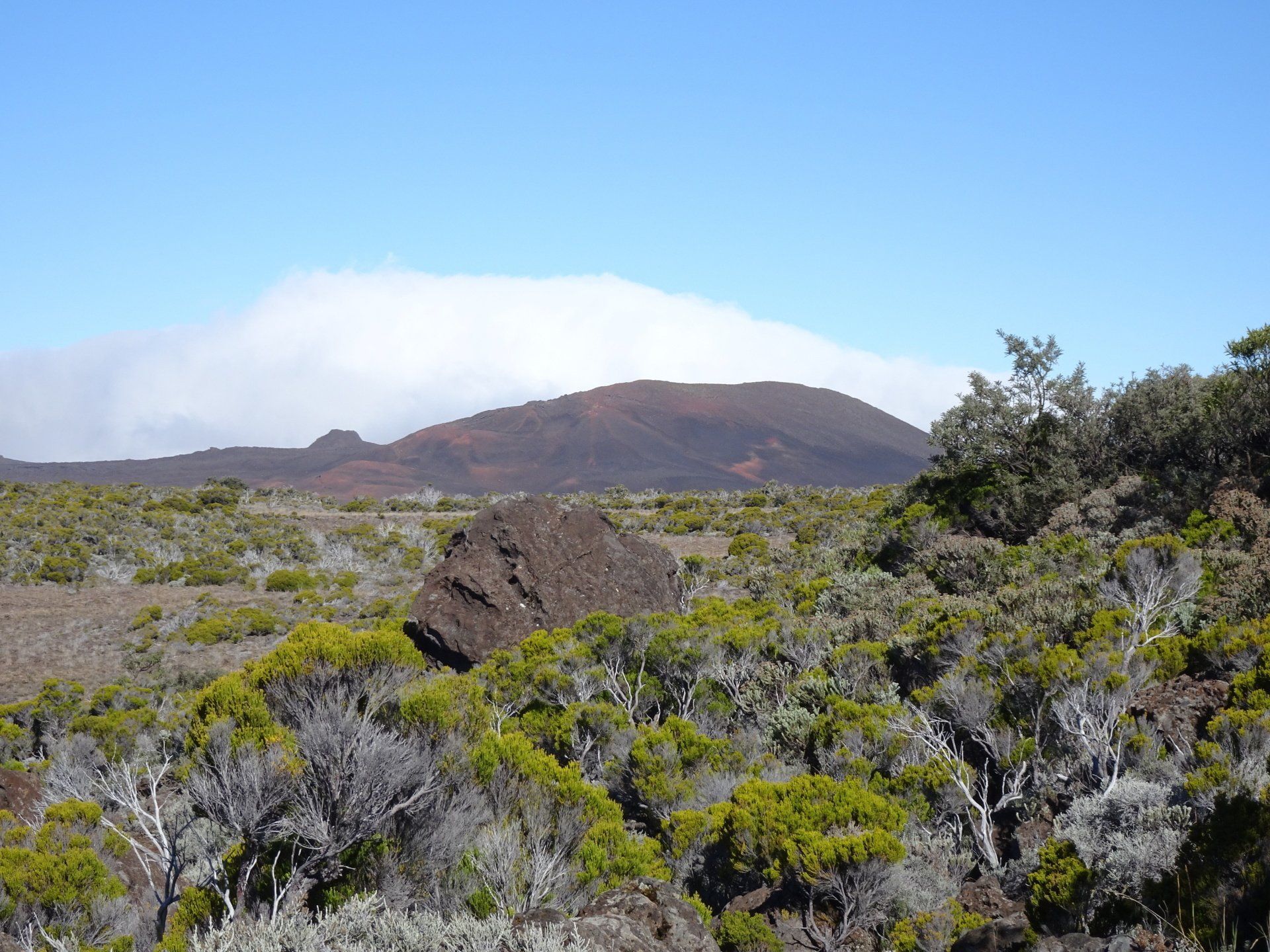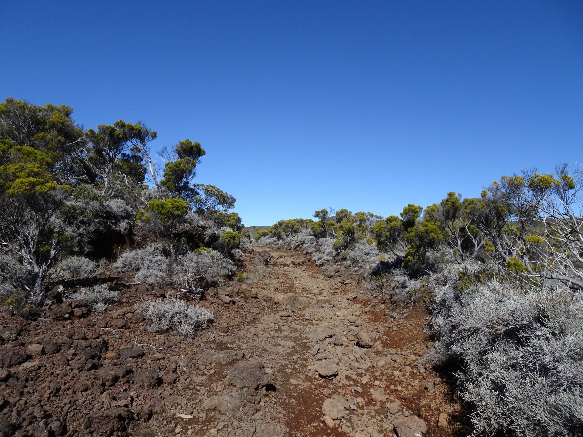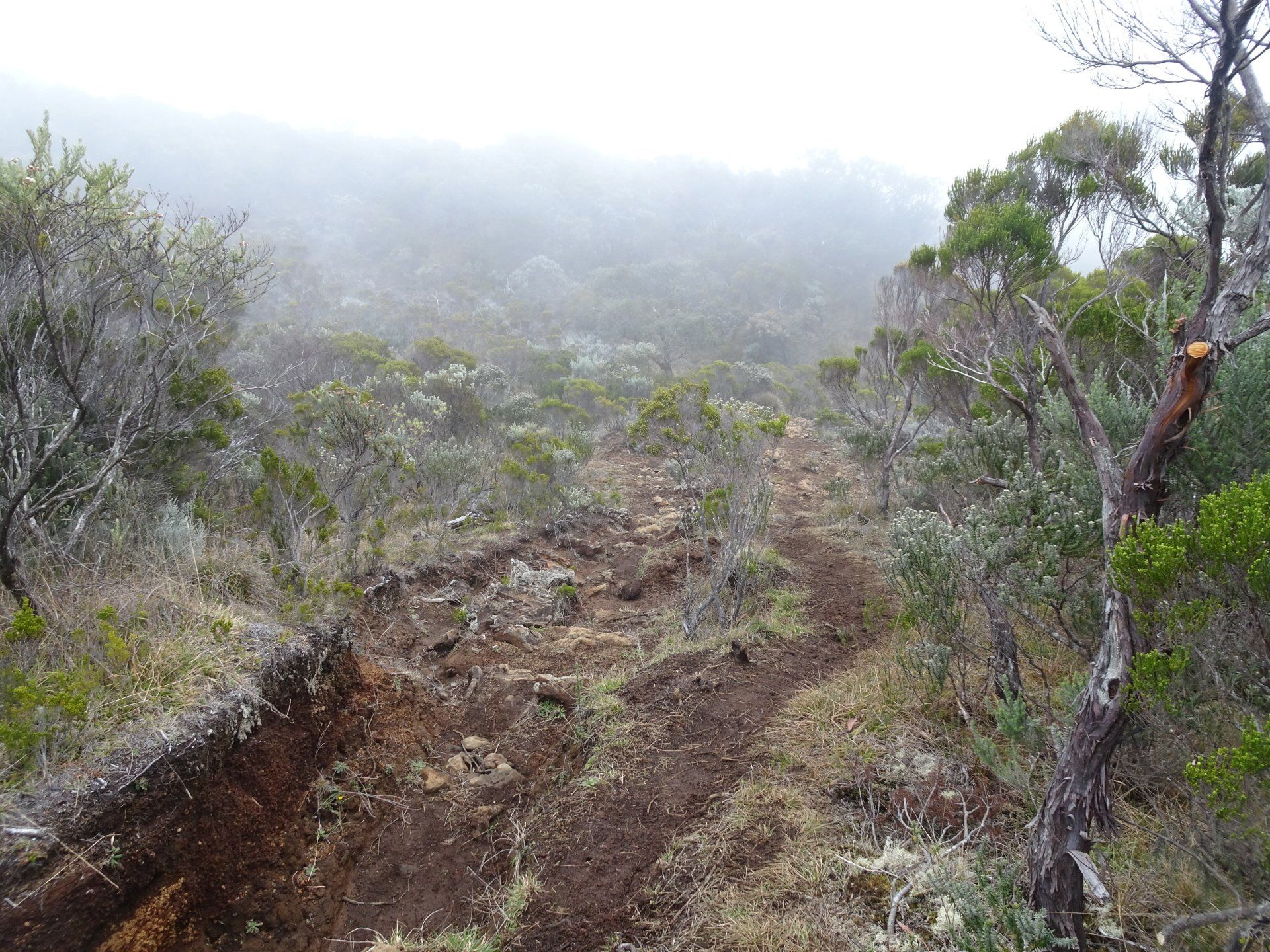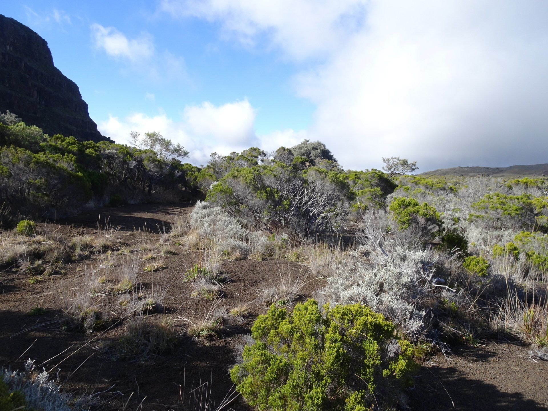 L’enclos qui donne accès à la plaine du Volcan est fermé, a priori encore pour un certain temps. De ce fait et aussi à cause de la météo un peu pourrie qui semble vouloir durer, nous décidons de ne rester qu’une seule nuit au lieu des 2 initialement réservées. Nous n’arrivons pas à joindre le gîte de Basse-vallée pour le lendemain soir. 2 chemins s’offrent à nous pour la grande descente. Au gîte, personne ne semble en mesure de départager les 2 options.