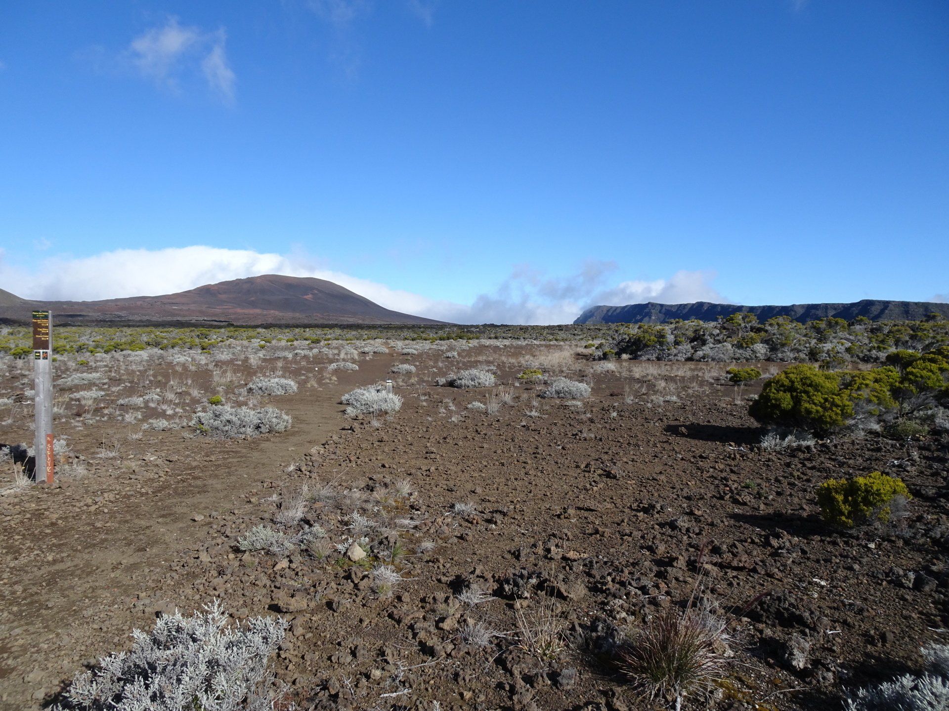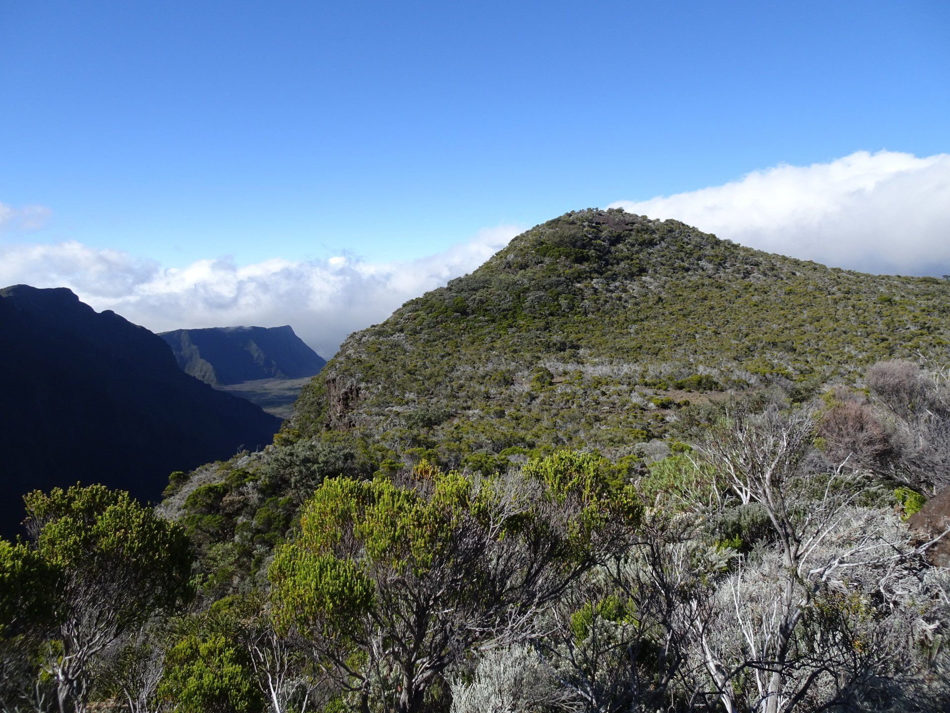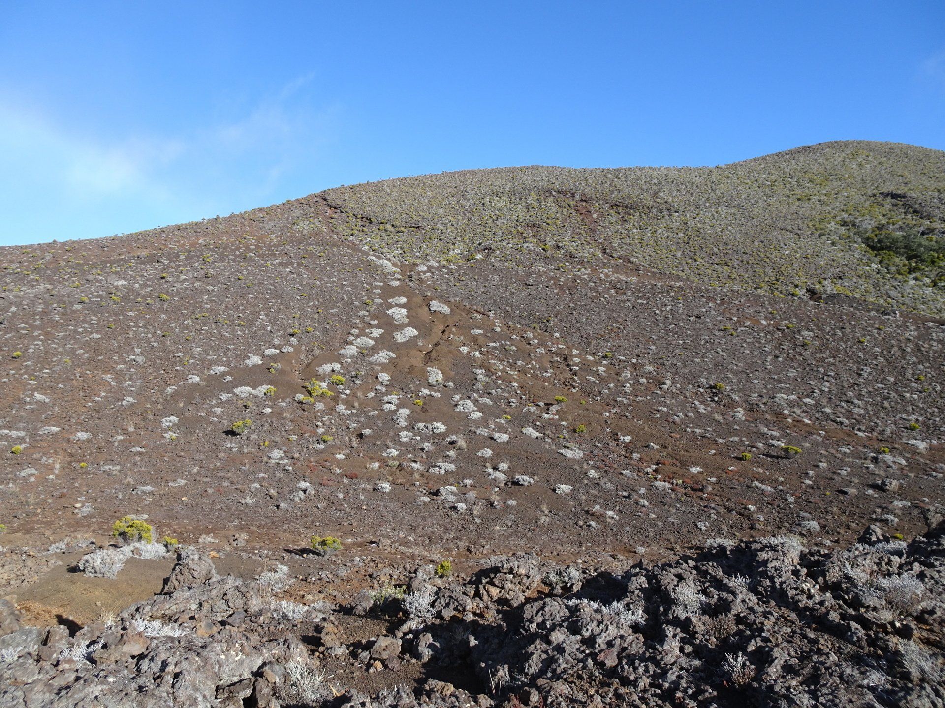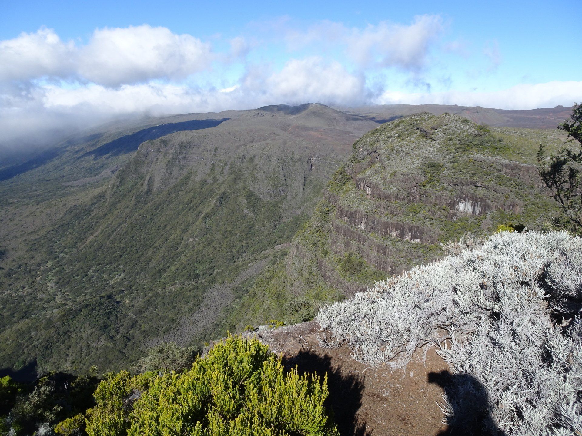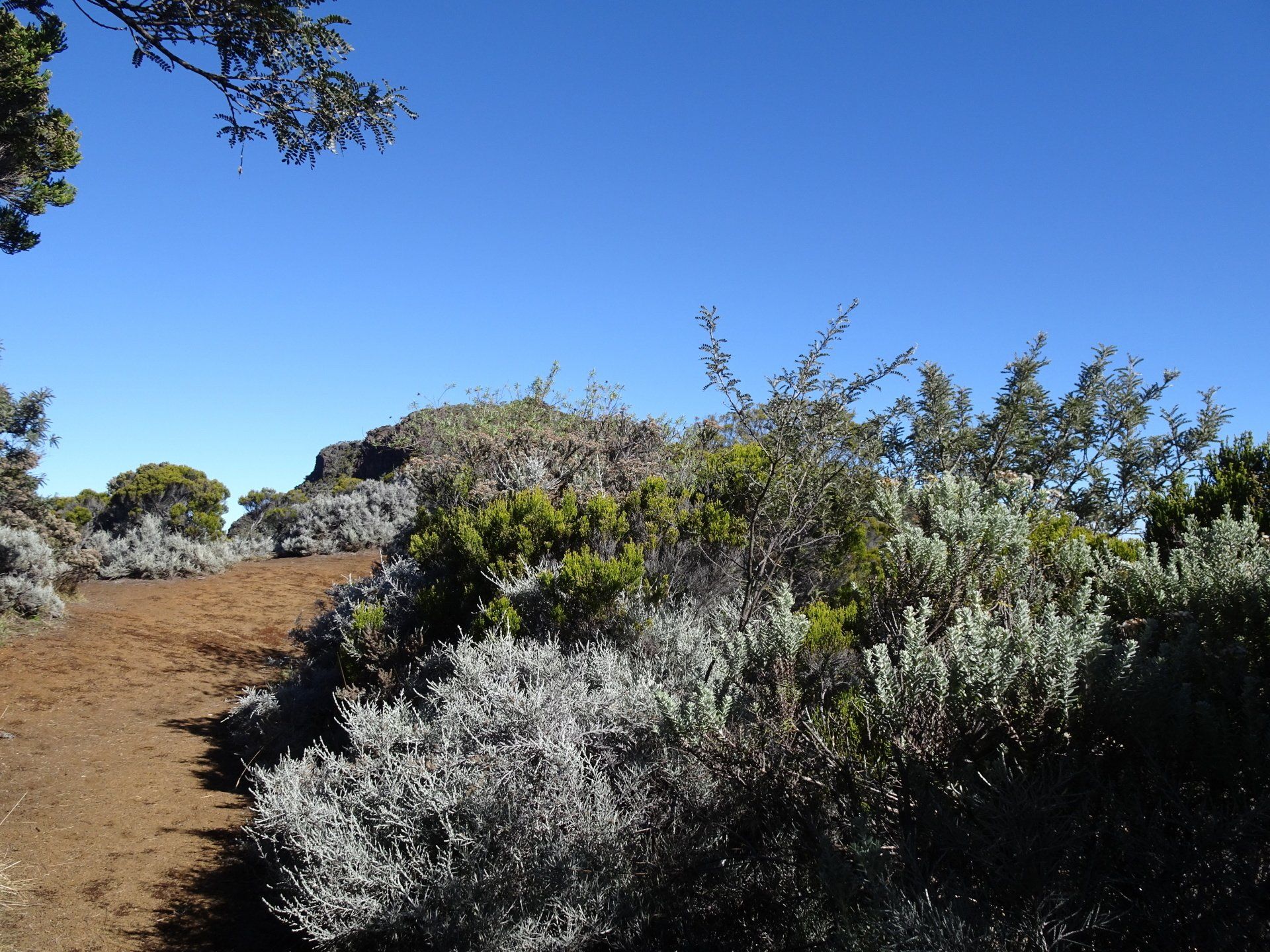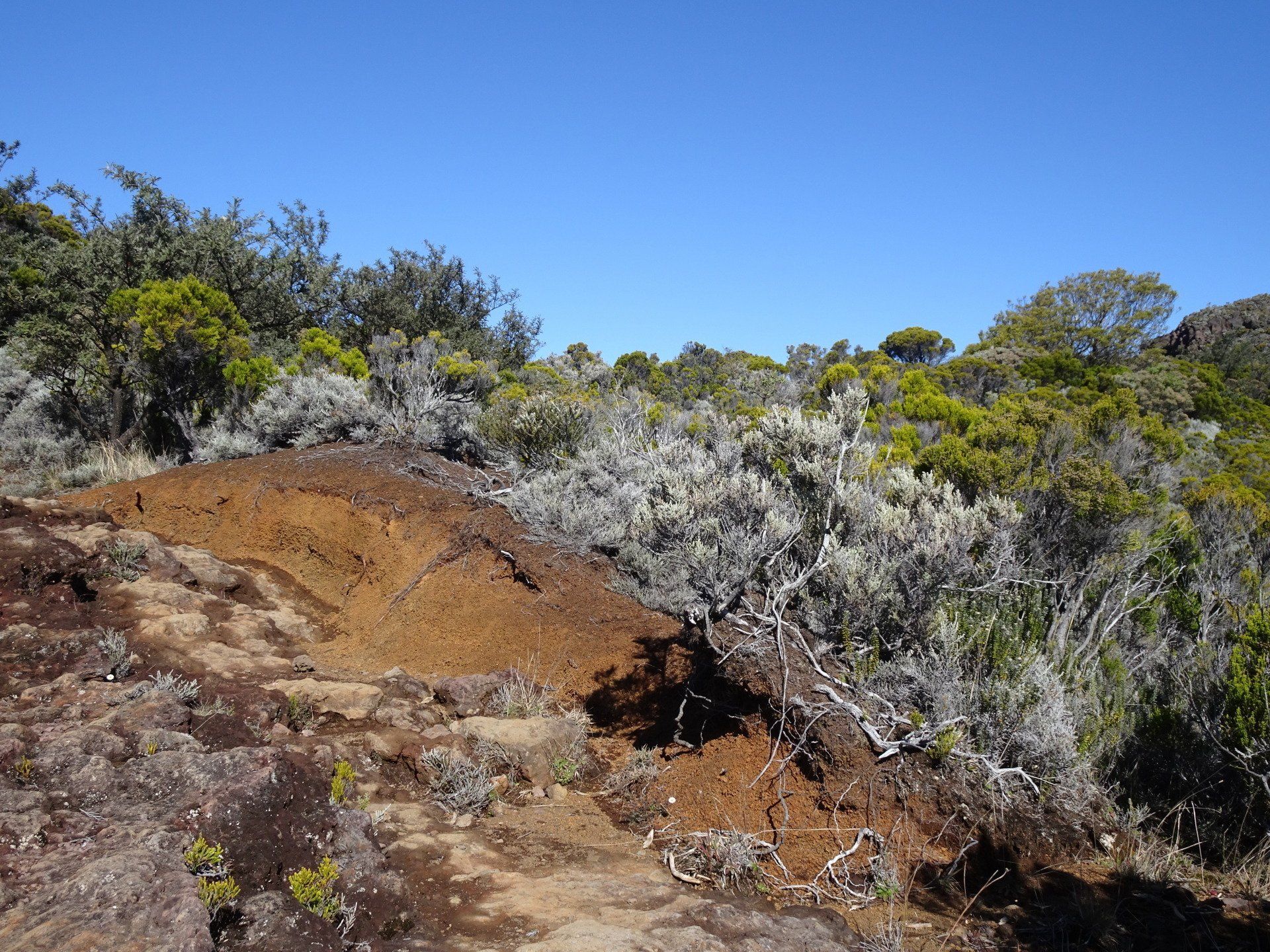 L’enclos qui donne accès à la plaine du Volcan est fermé, a priori encore pour un certain temps. De ce fait et aussi à cause de la météo un peu pourrie qui semble vouloir durer, nous décidons de ne rester qu’une seule nuit au lieu des 2 initialement réservées. Nous n’arrivons pas à joindre le gîte de Basse-vallée pour le lendemain soir. 2 chemins s’offrent à nous pour la grande descente. Au gîte, personne ne semble en mesure de départager les 2 options.