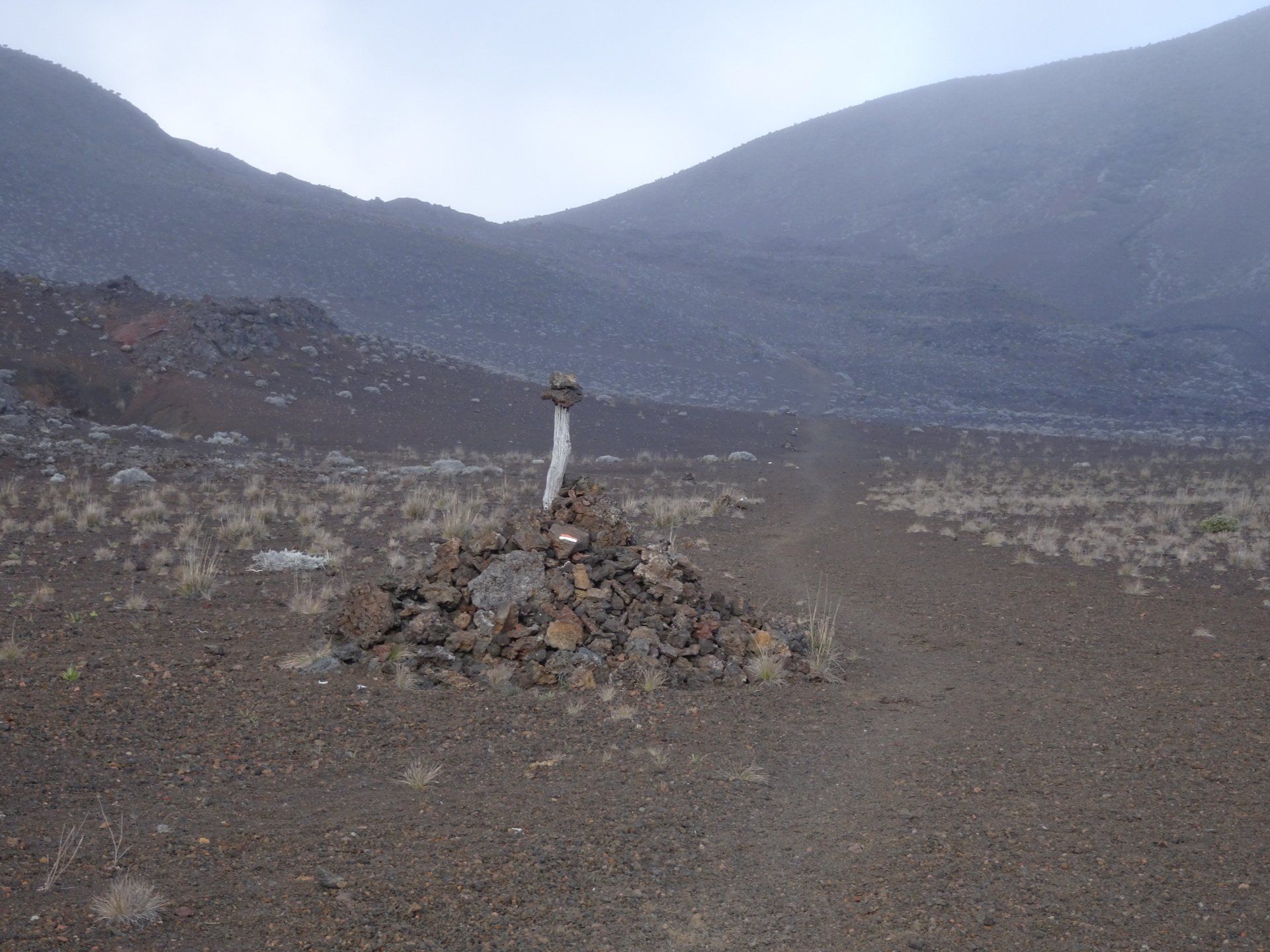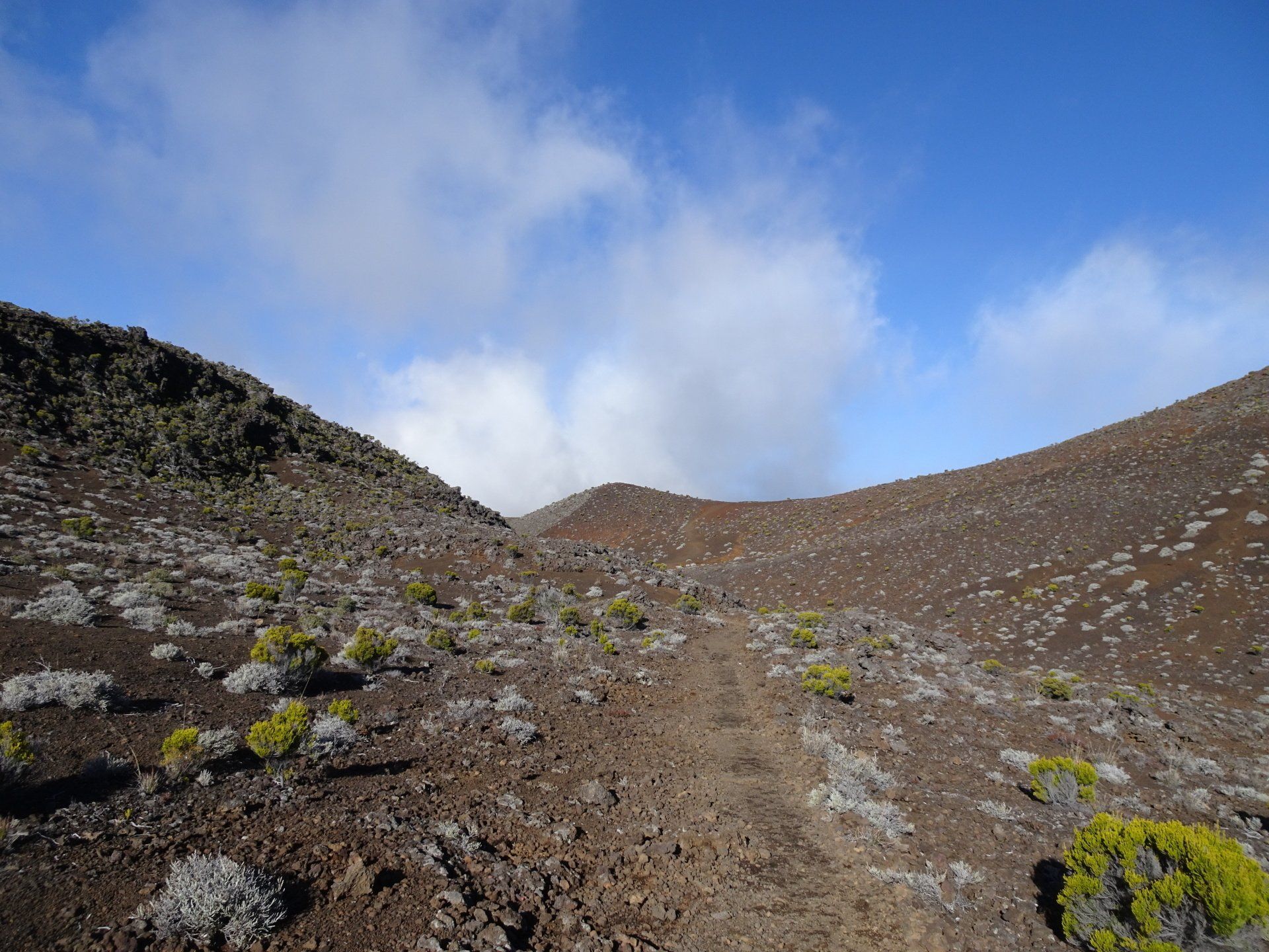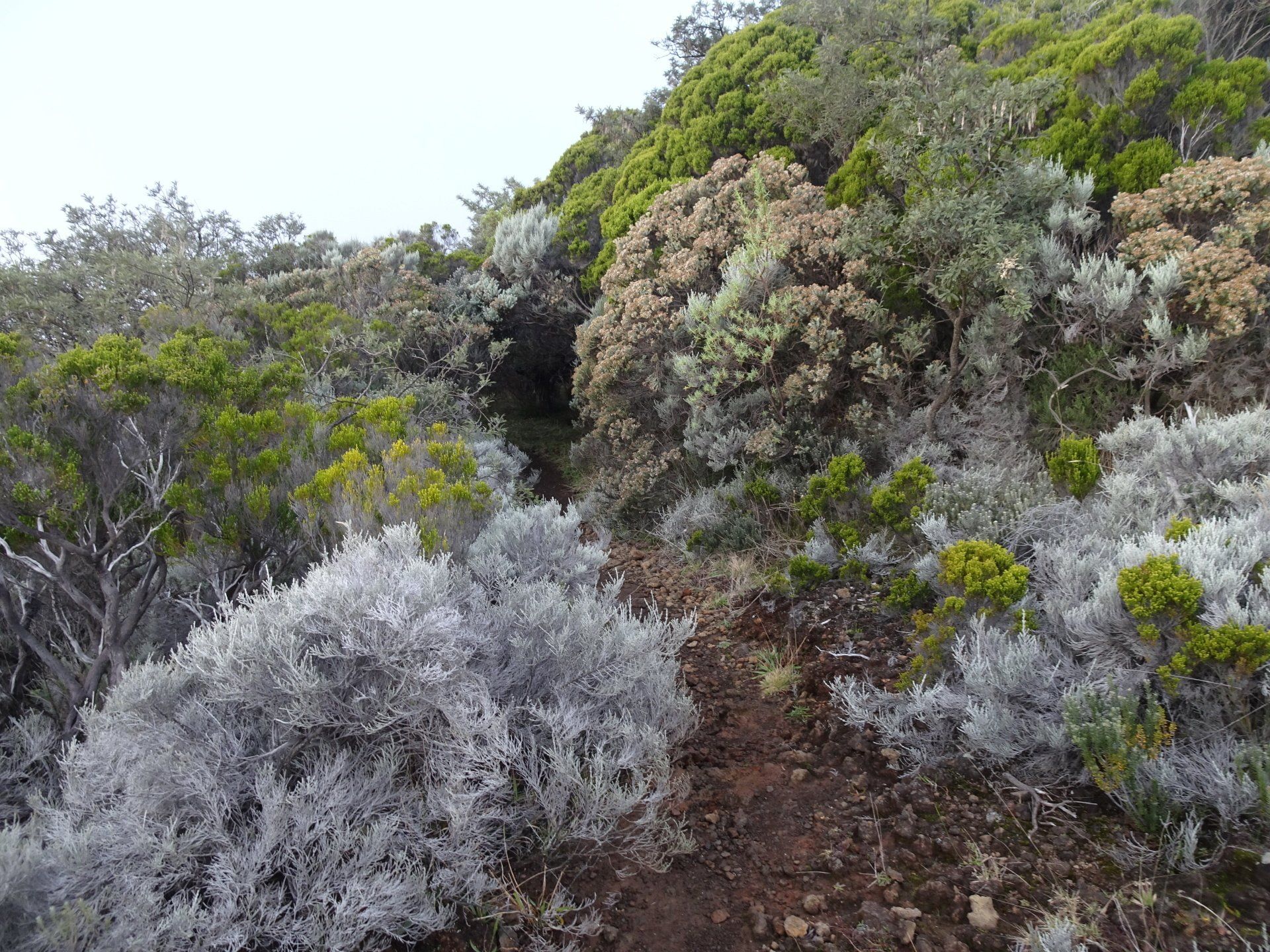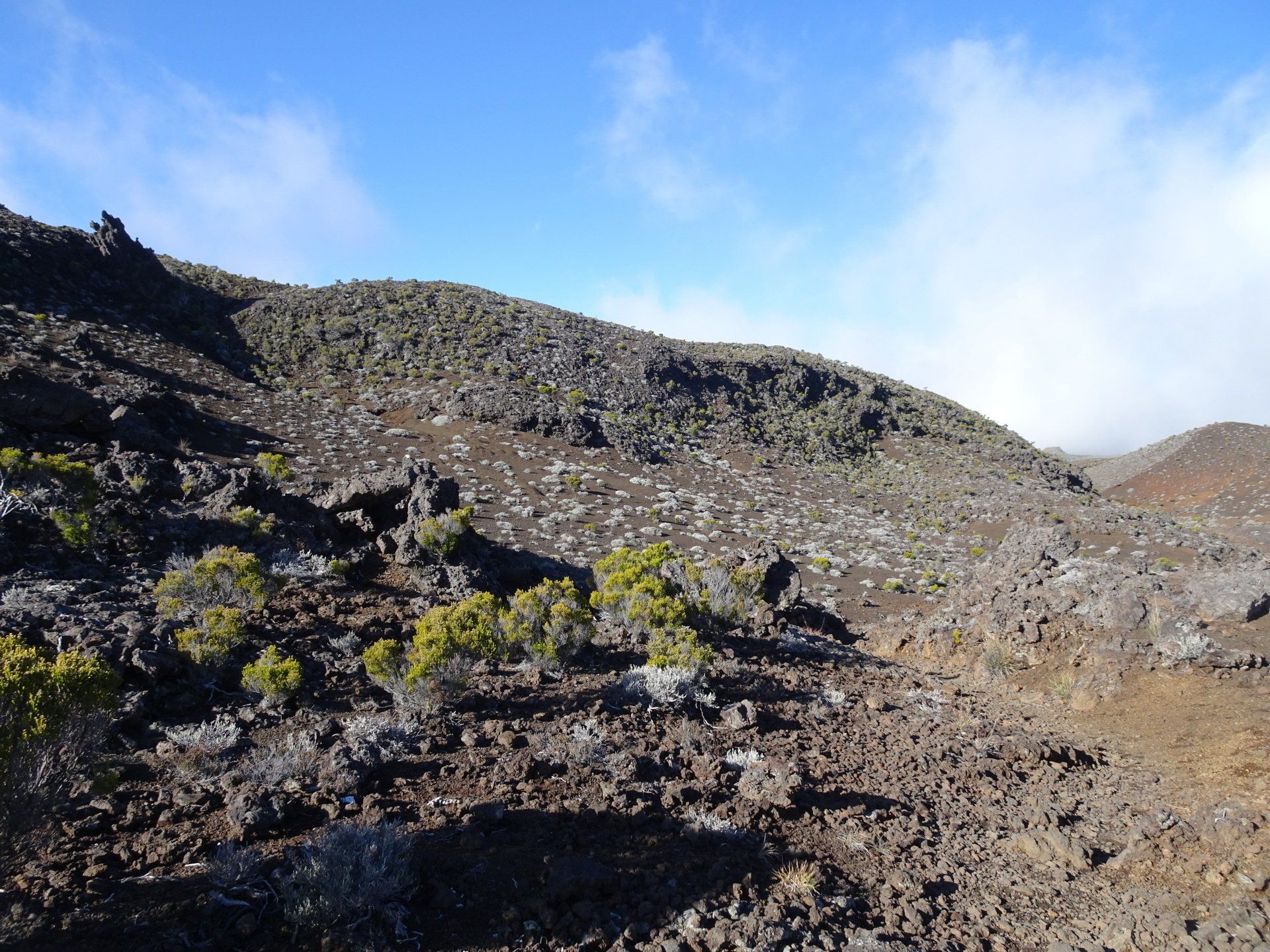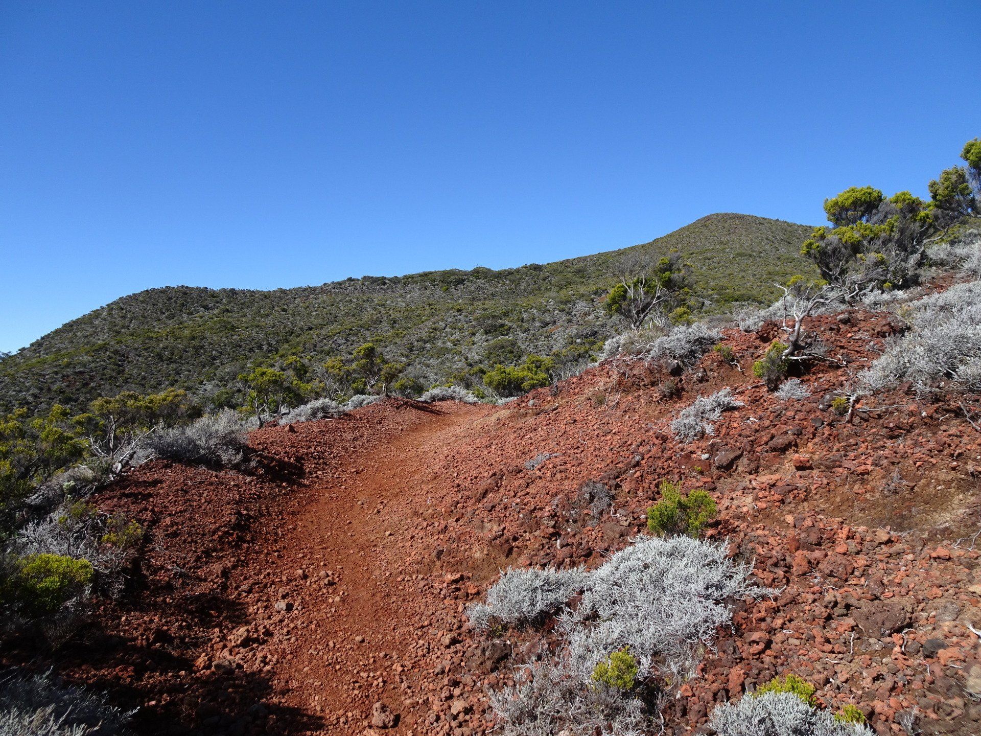 L’enclos qui donne accès à la plaine du Volcan est fermé, a priori encore pour un certain temps. De ce fait et aussi à cause de la météo un peu pourrie qui semble vouloir durer, nous décidons de ne rester qu’une seule nuit au lieu des 2 initialement réservées. Nous n’arrivons pas à joindre le gîte de Basse-vallée pour le lendemain soir. 2 chemins s’offrent à nous pour la grande descente. Au gîte, personne ne semble en mesure de départager les 2 options.