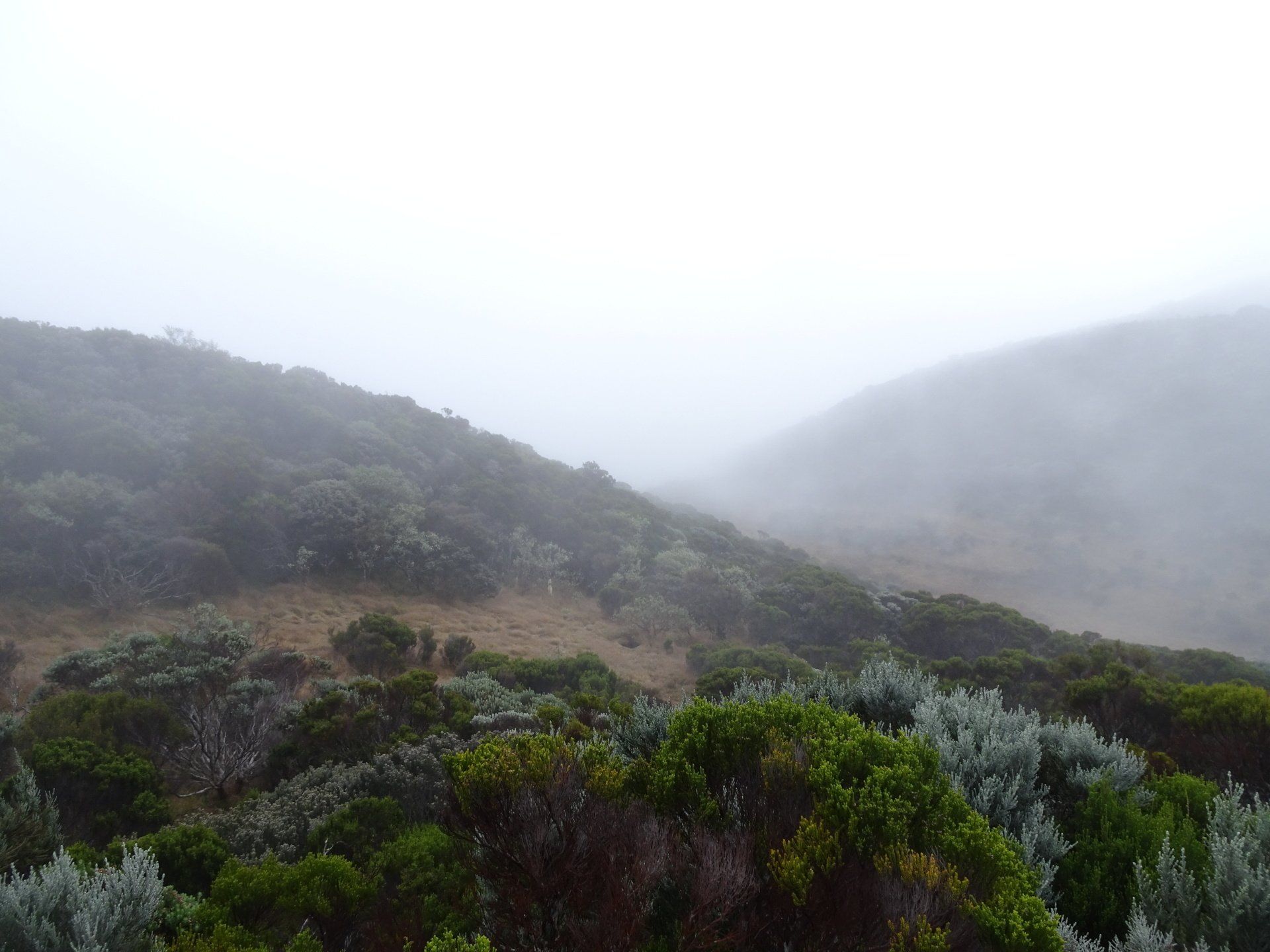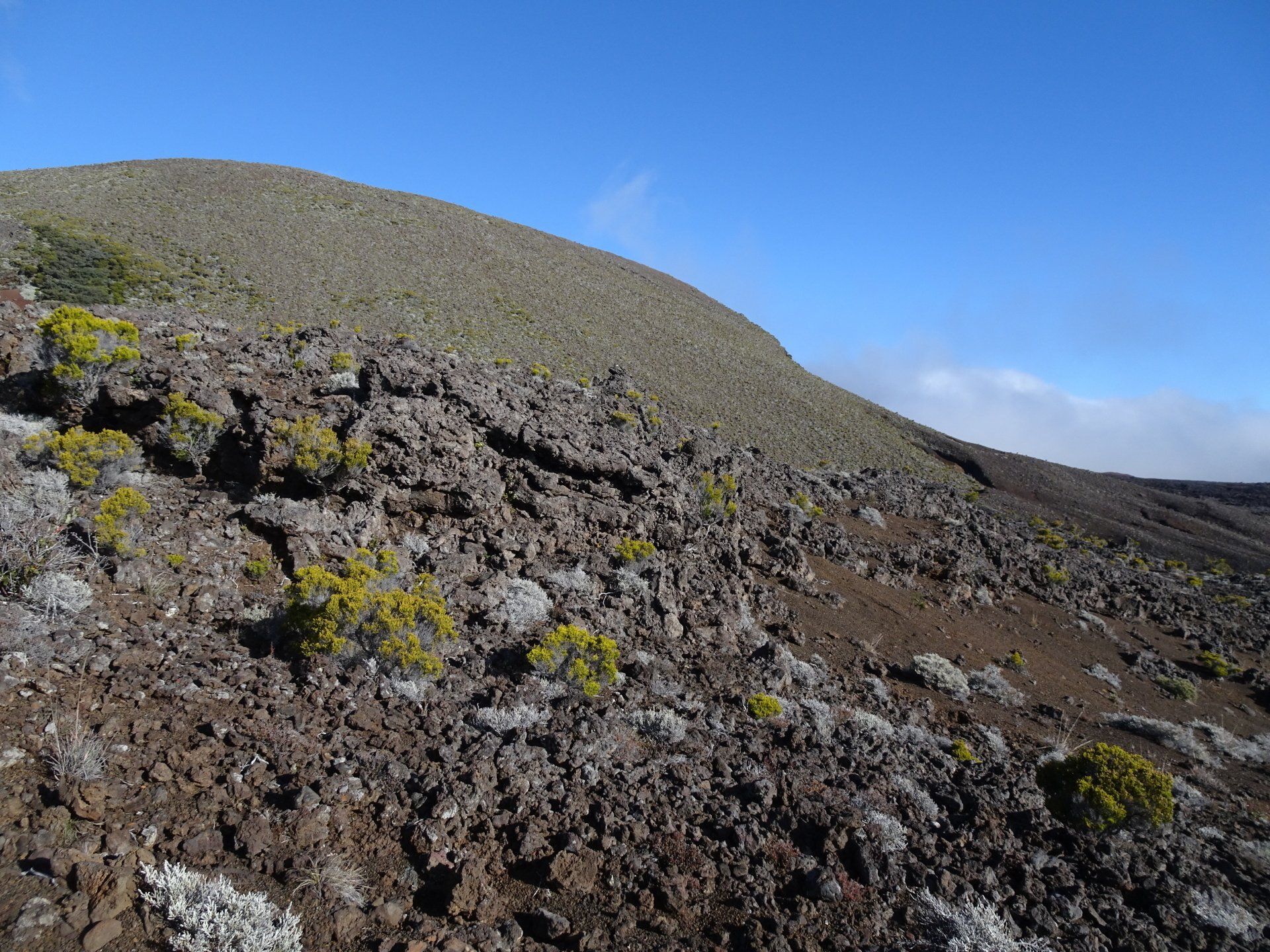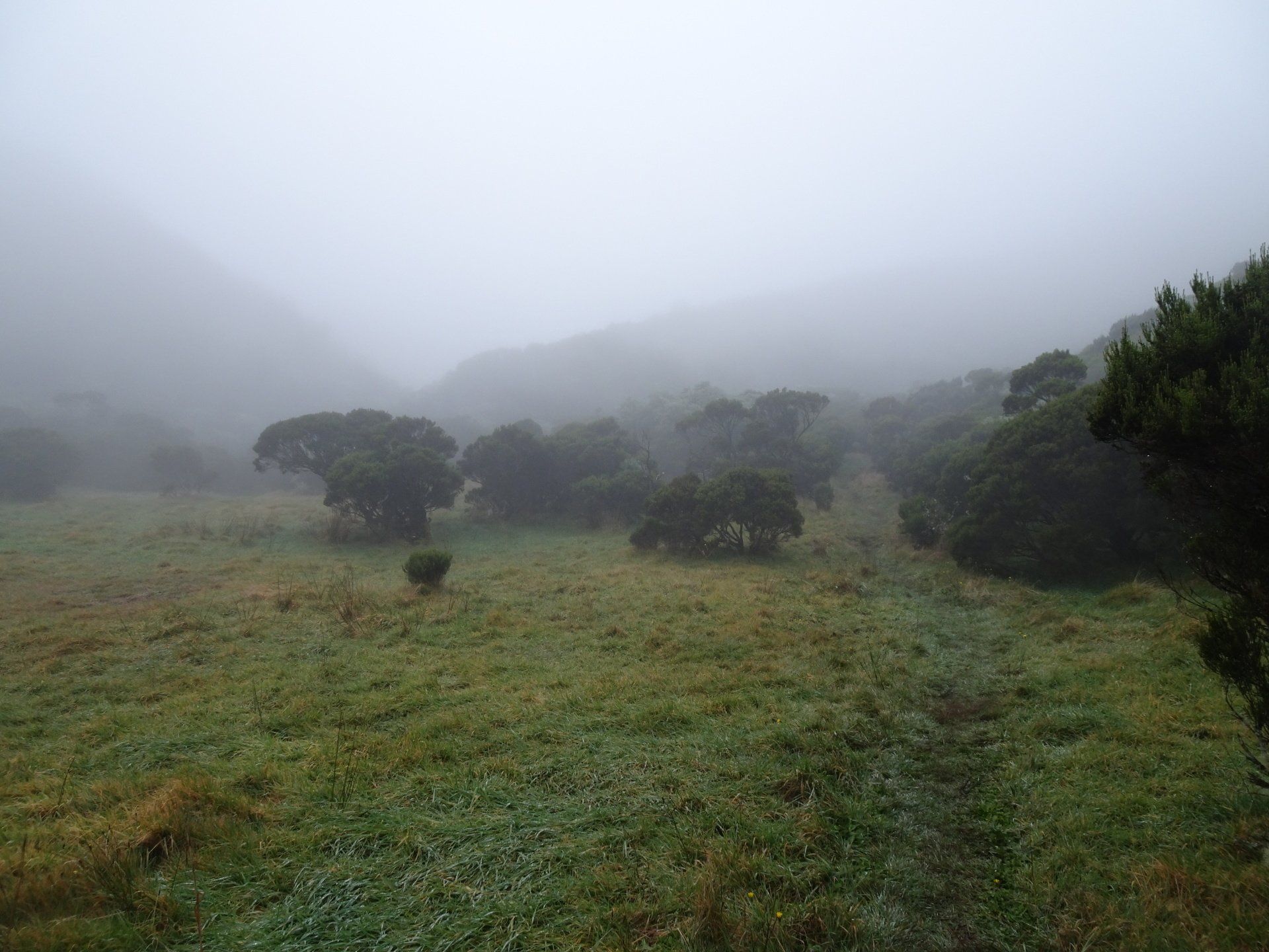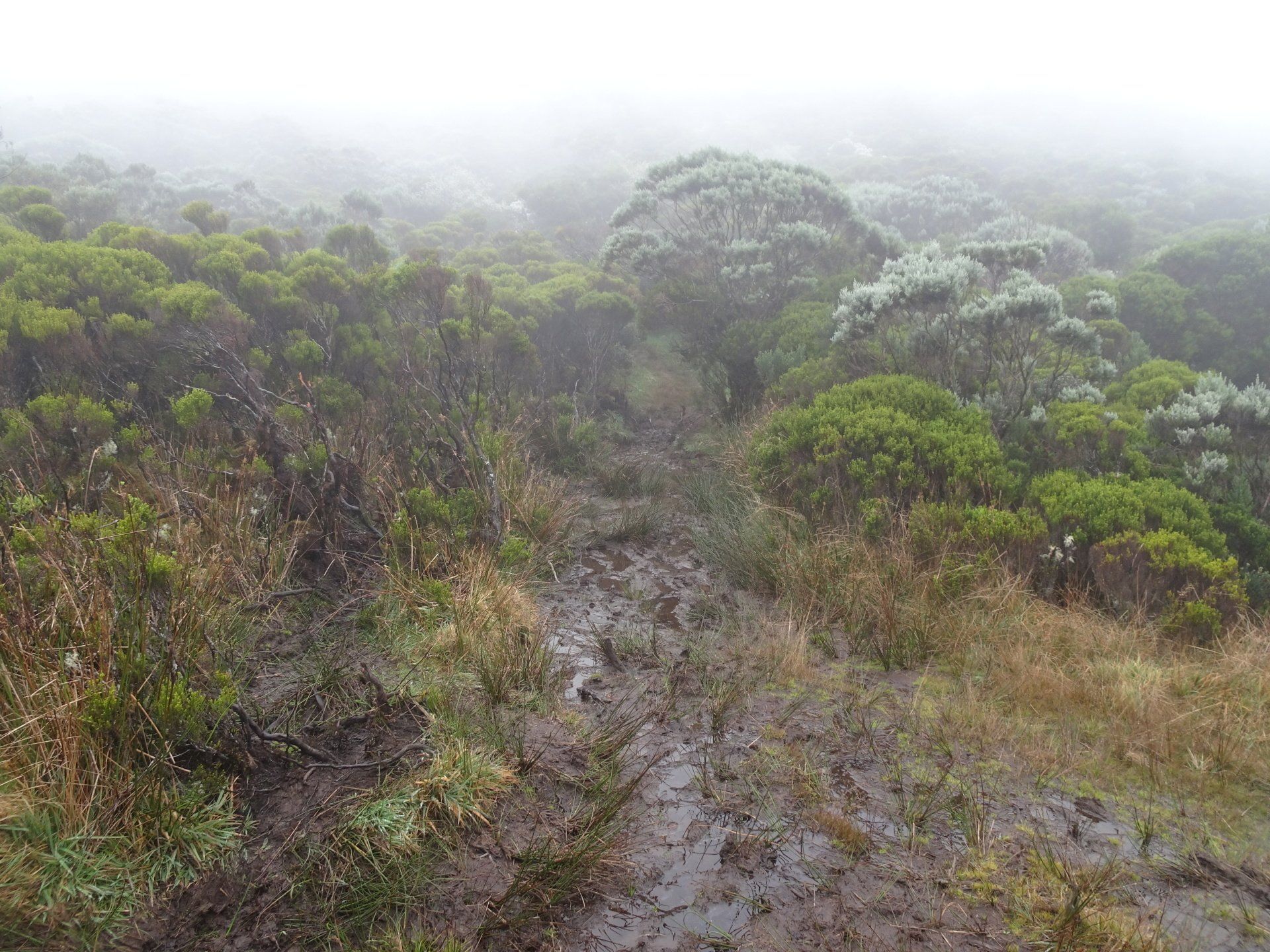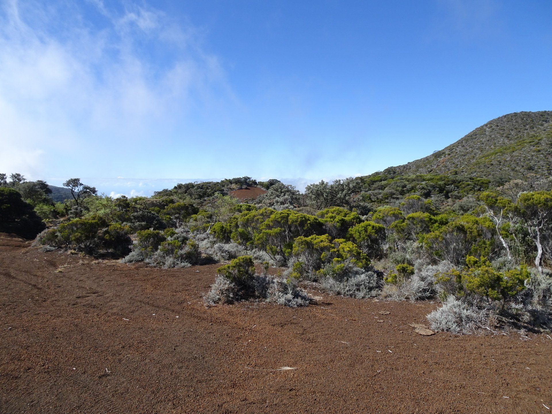 L’enclos qui donne accès à la plaine du Volcan est fermé, a priori encore pour un certain temps. De ce fait et aussi à cause de la météo un peu pourrie qui semble vouloir durer, nous décidons de ne rester qu’une seule nuit au lieu des 2 initialement réservées. Nous n’arrivons pas à joindre le gîte de Basse-vallée pour le lendemain soir. 2 chemins s’offrent à nous pour la grande descente. Au gîte, personne ne semble en mesure de départager les 2 options.