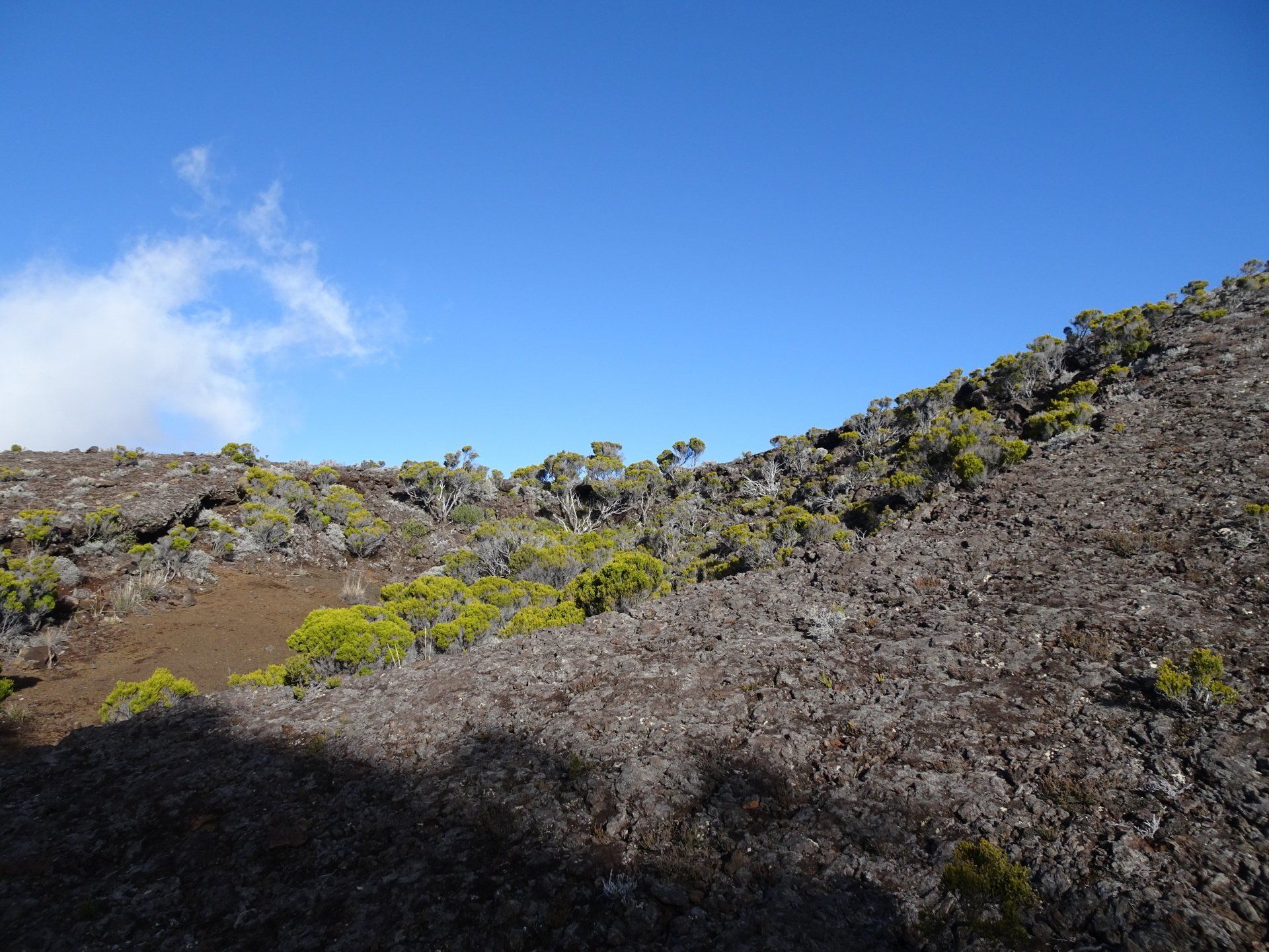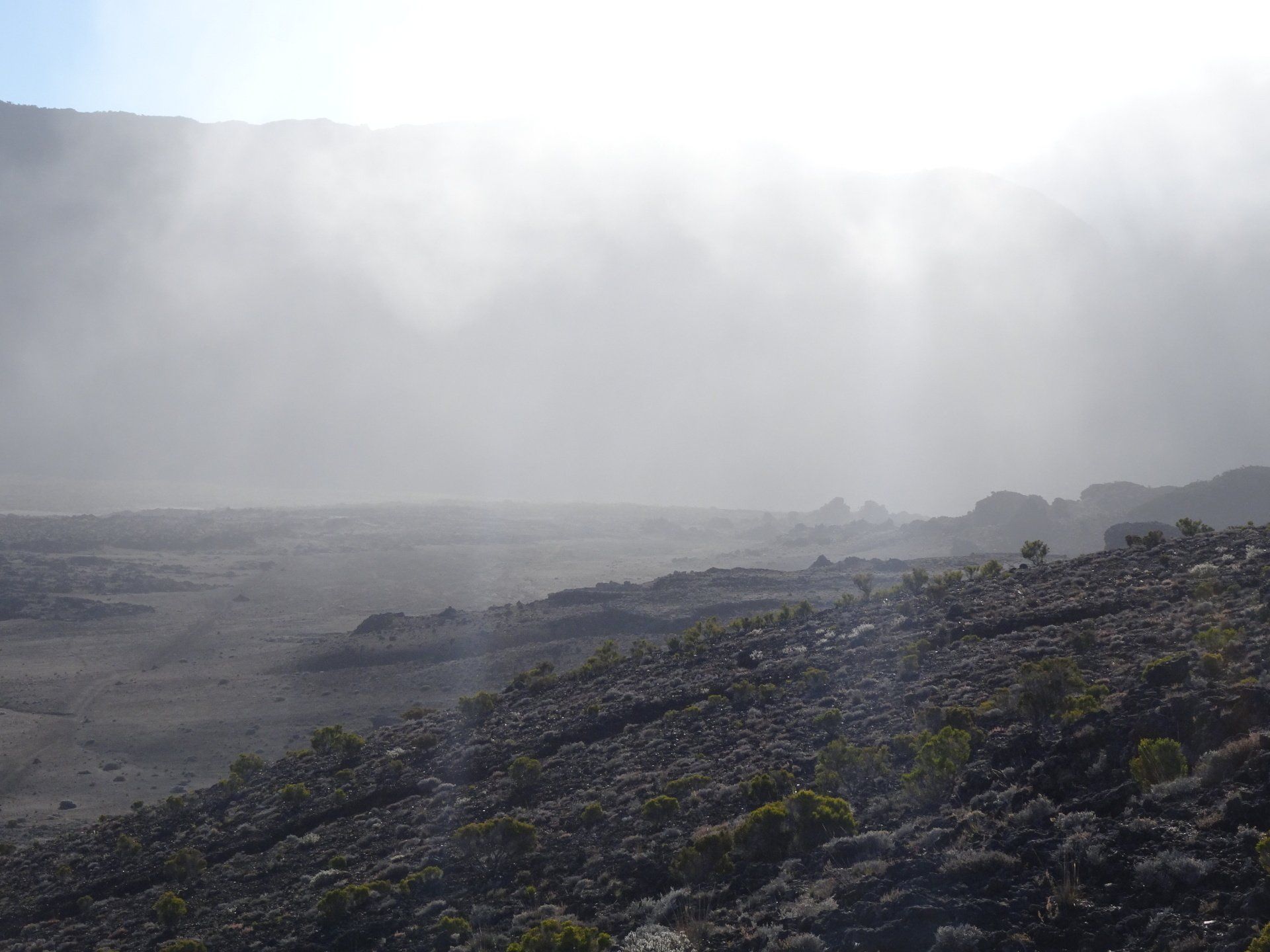 Nous discutons avec un jeune de Mayotte qui profite de quelques jours de congés pour randonner. Indécis, il avait décidé de faire la traversée de l’île de la Réunion en doublant les étapes. Le descriptif de son parcours jusque là est impressionnant. Malheureusement pour lui son aventure s’arrête là. Il a terminé sa montée au gîte du volcan en stop : l’un de ses genoux a lâché. Demain il prévoit de redescendre en stop.