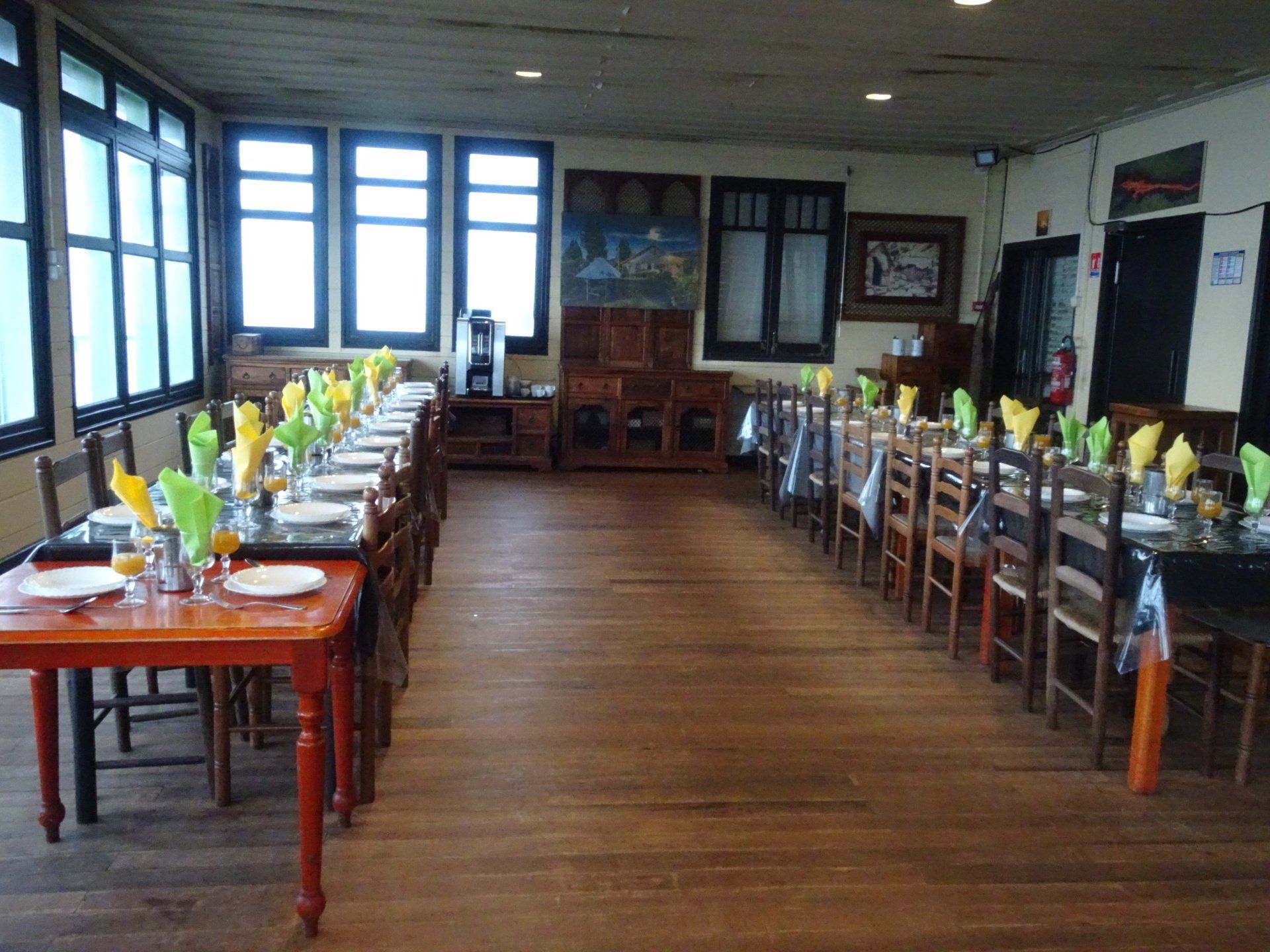 Arrivés au gîte, je tente la douche mais le soleil n’a pas permis de chauffer l’eau. Avec le froid environnant je ne trouve pas le courage d’une douche froide, ce sera lingettes. Notre dortoir est situé dans un bâtiment annexe un peu plus bas que le bâtiment principal. Nous occupons une chambre de 4 avec 2 lits superposés. Nous serons les seuls 2 occupants de cette chambre. Avec la météo, il y a eu beaucoup d’annulations. Draps, couvertures : de quoi passer une bonne nuit. Le chauffage ne s’enclenche que vers 17h30. Aussi, pour nous réchauffer, nous regagnons la salle à manger. Une Dodo (la bière locale) et un chocolat chaud nous réconfortent.