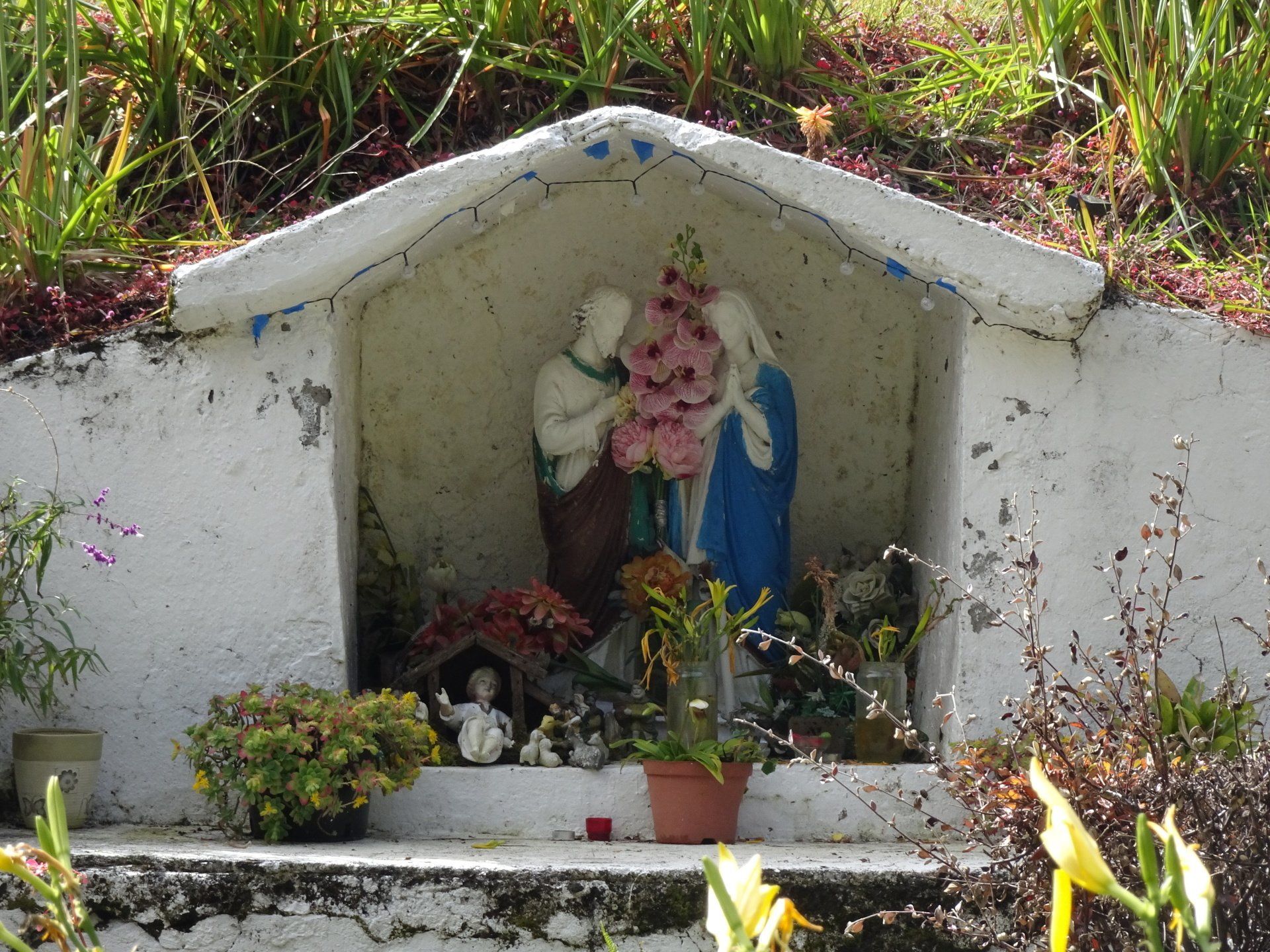 Au fil des sentiers, nous croisons de nombreuses croix ou vierges souvent bien fleuries.
