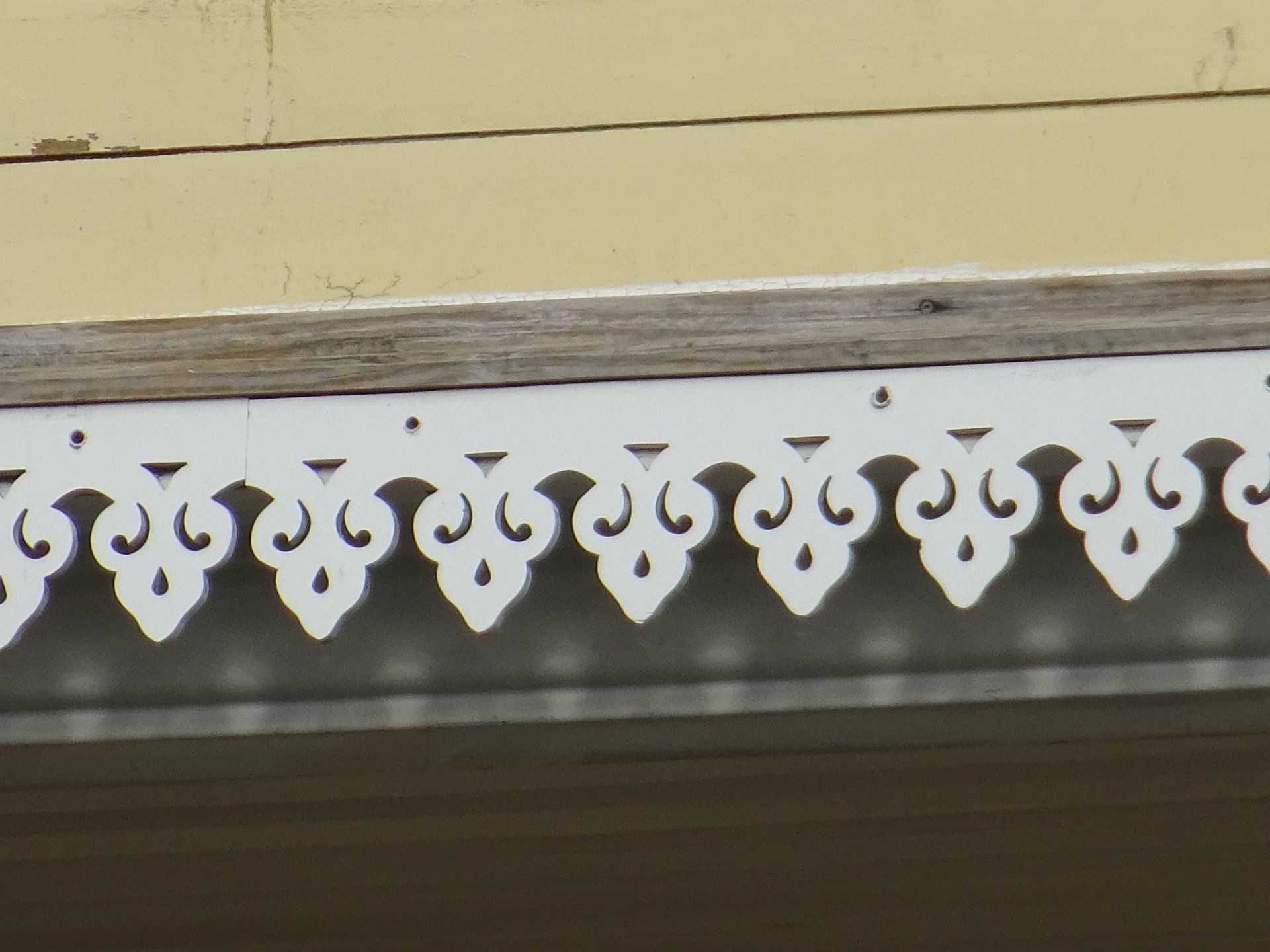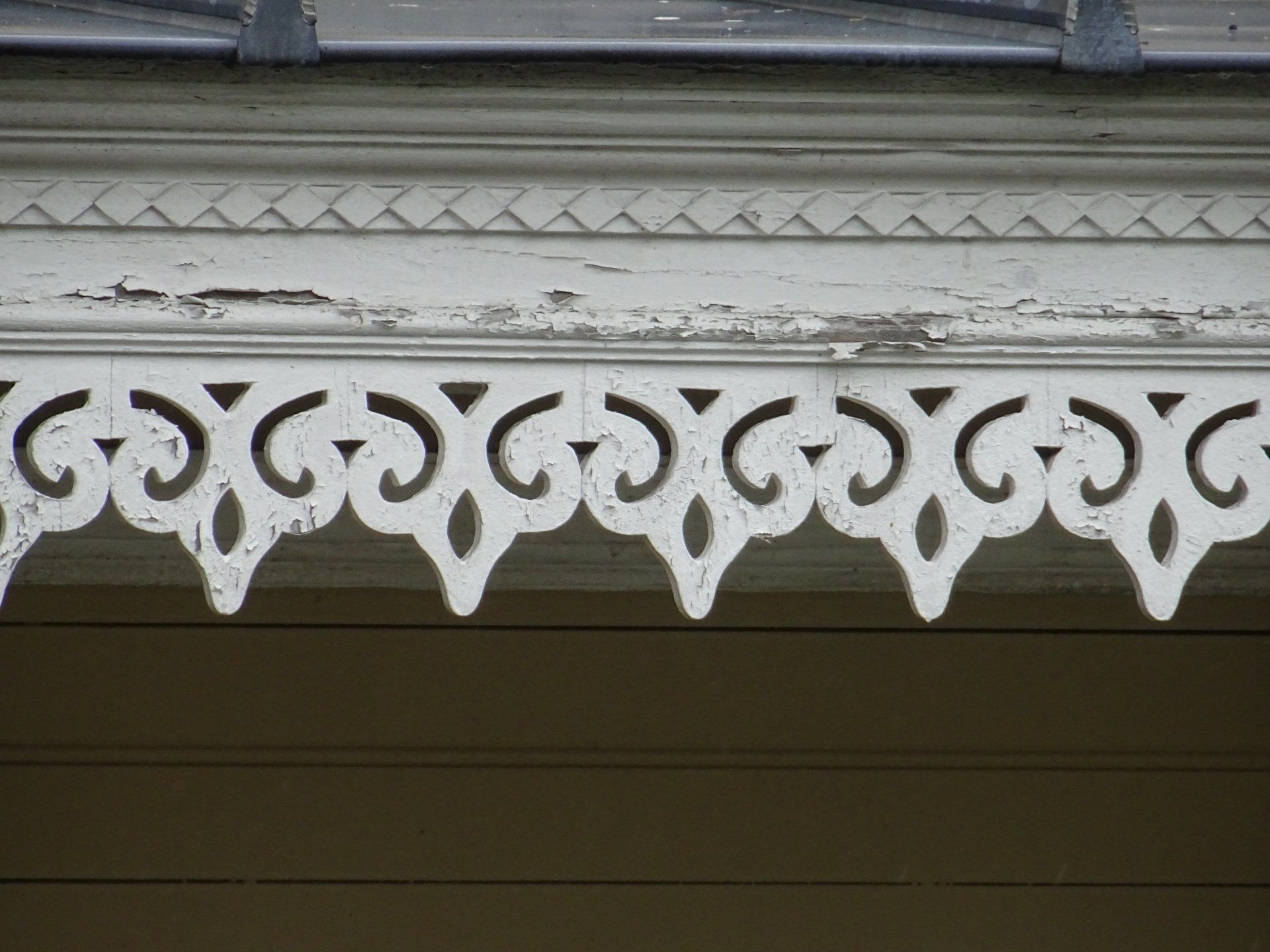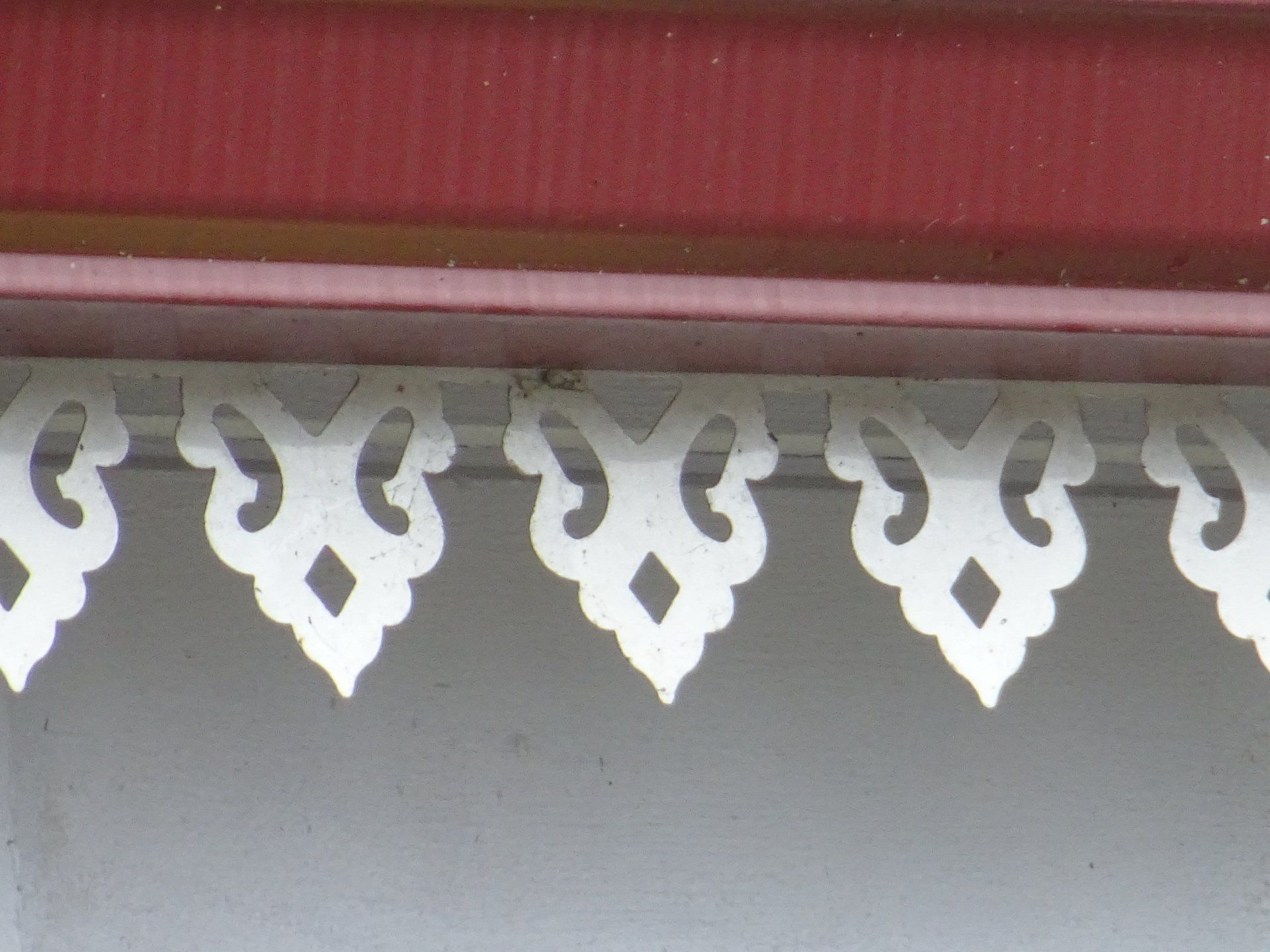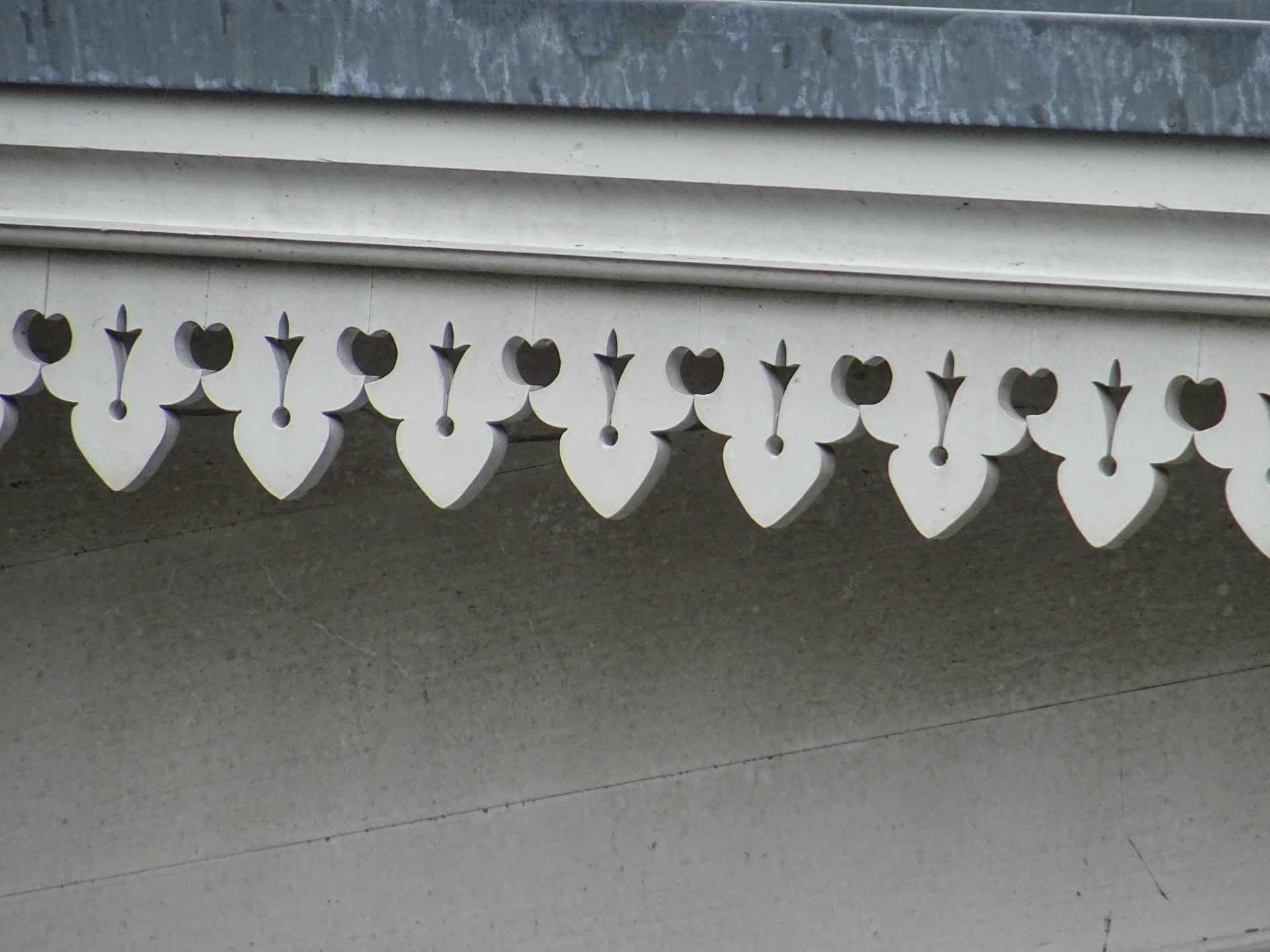De nombreuses maisons ont un bord de toit décoré de garnitures en dentelle de bois.