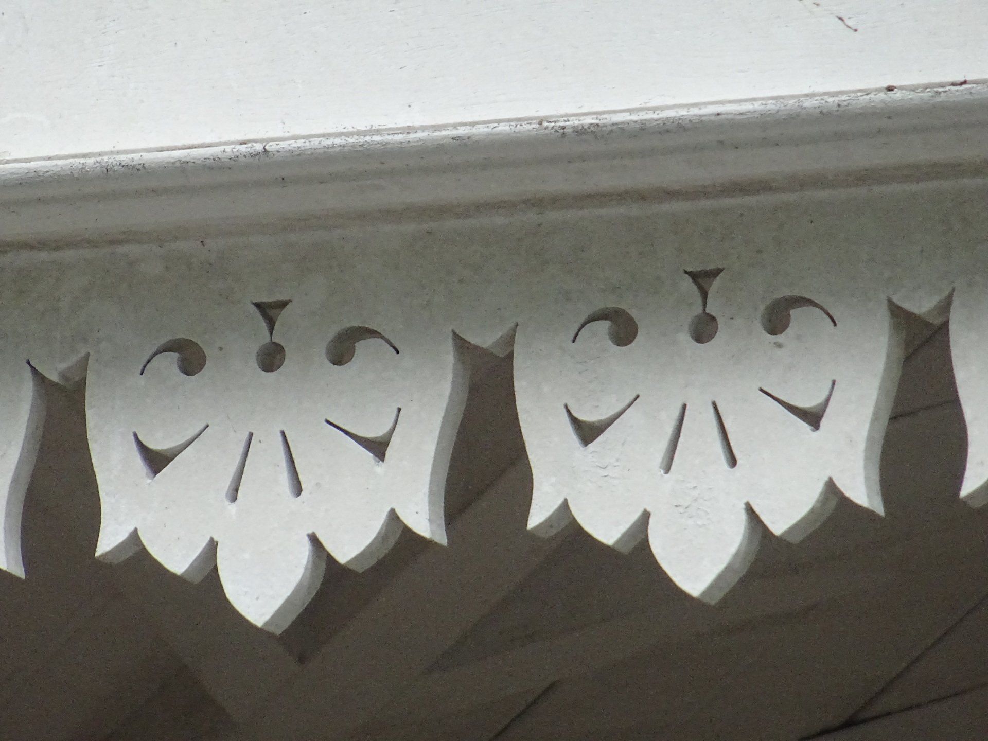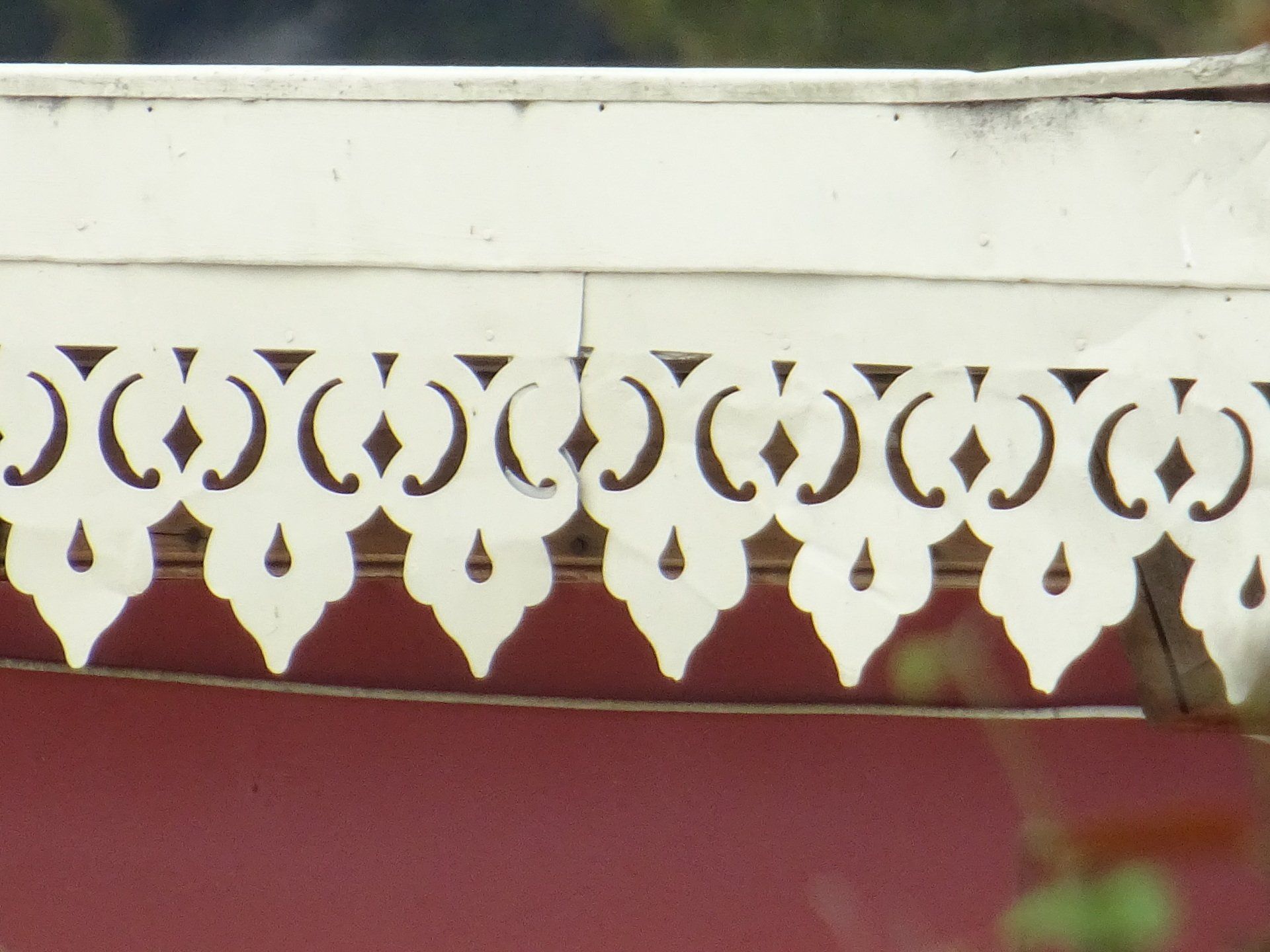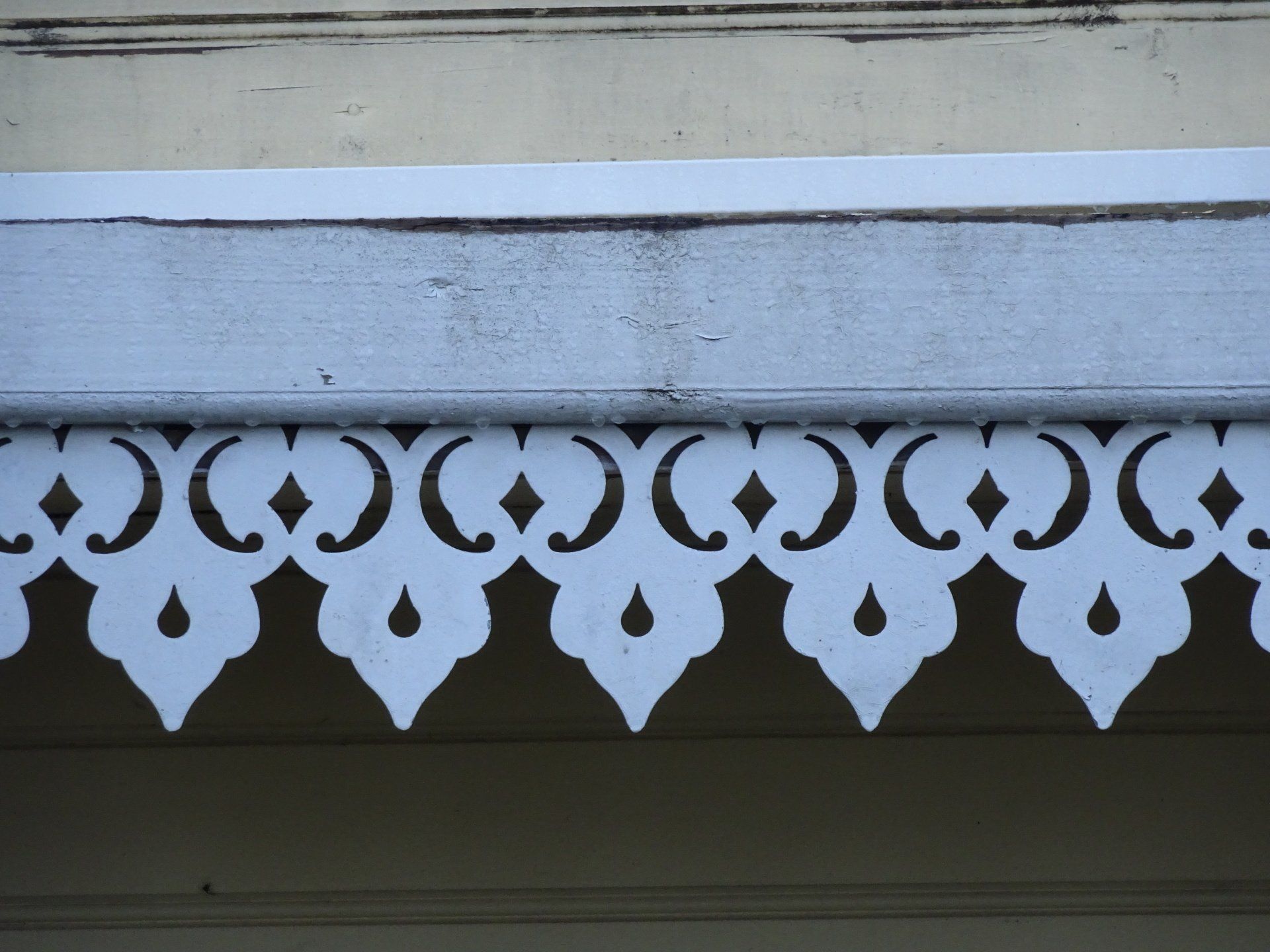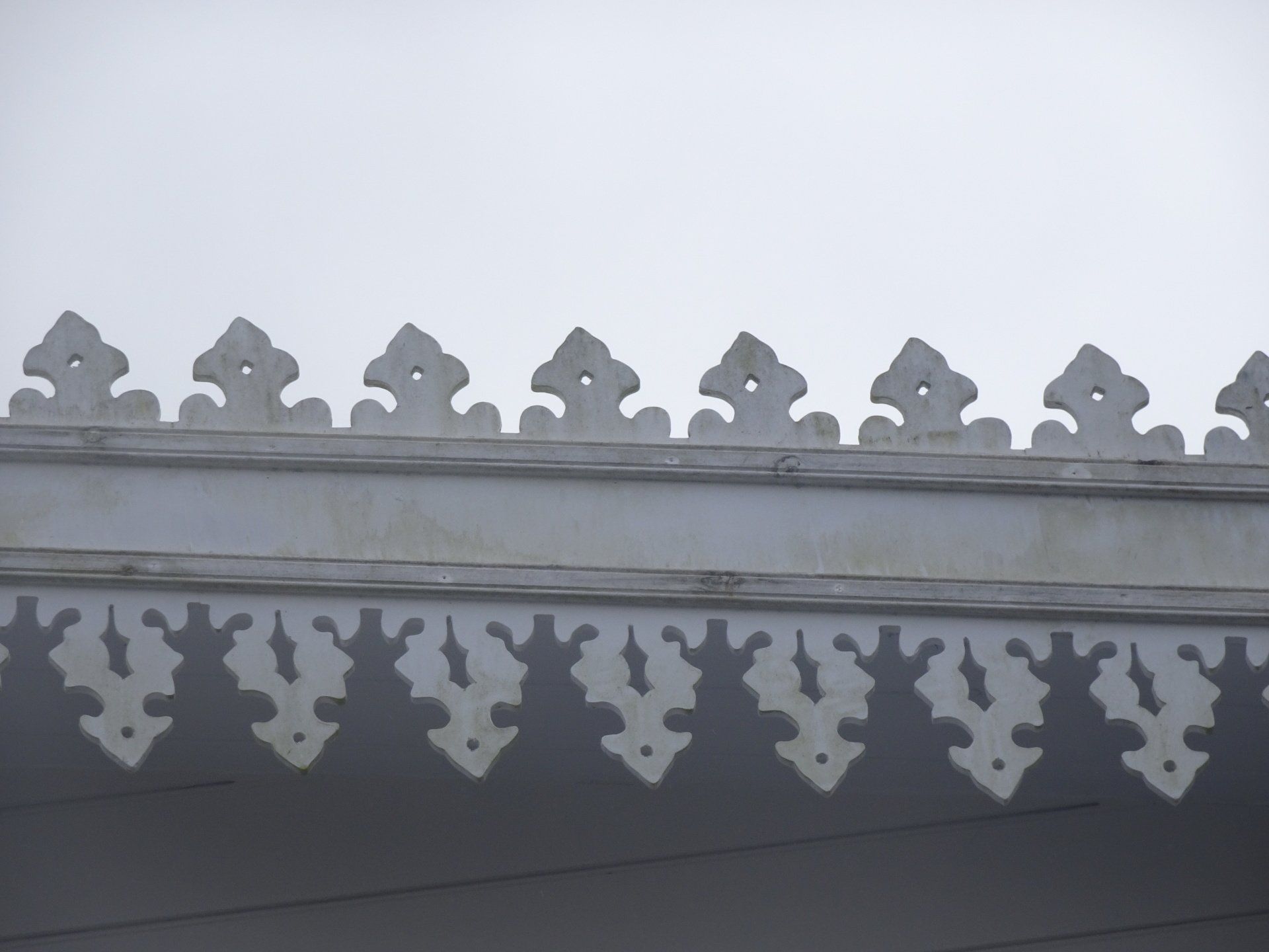 De nombreuses maisons ont un bord de toit décoré de garnitures en dentelle de bois.