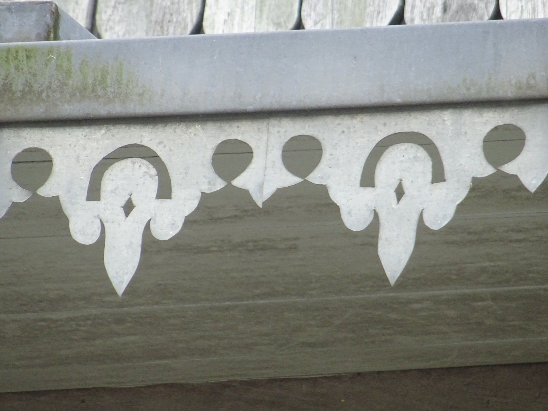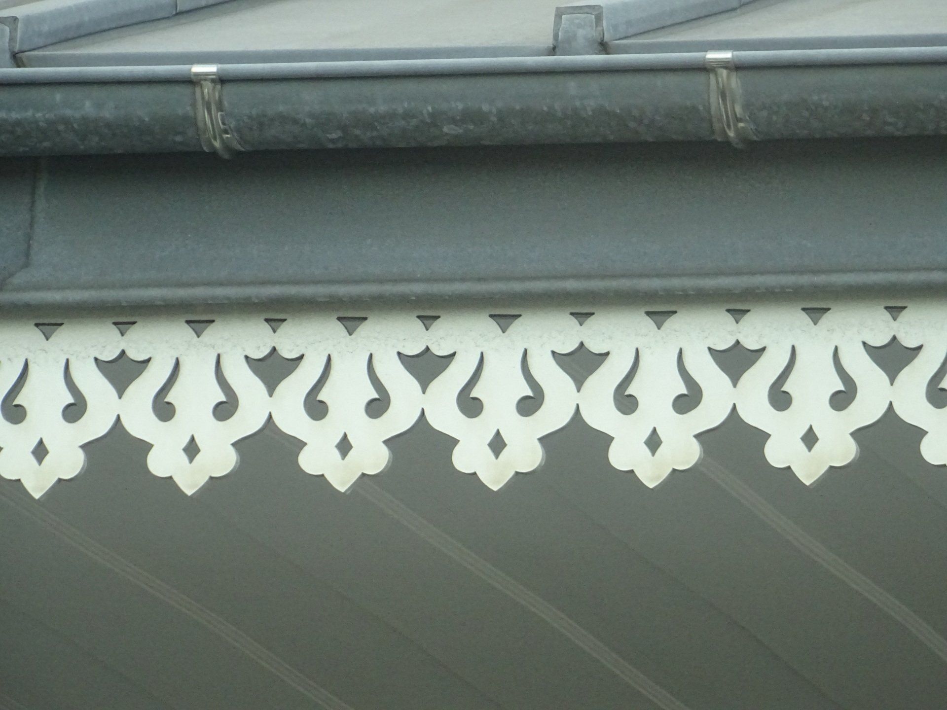 Au-delà de leur aspect décoratif, les lambrequins piègent les eaux de ruissellement du toit pour les faire goutter en avant de la façade pour la protéger de l’humidité.