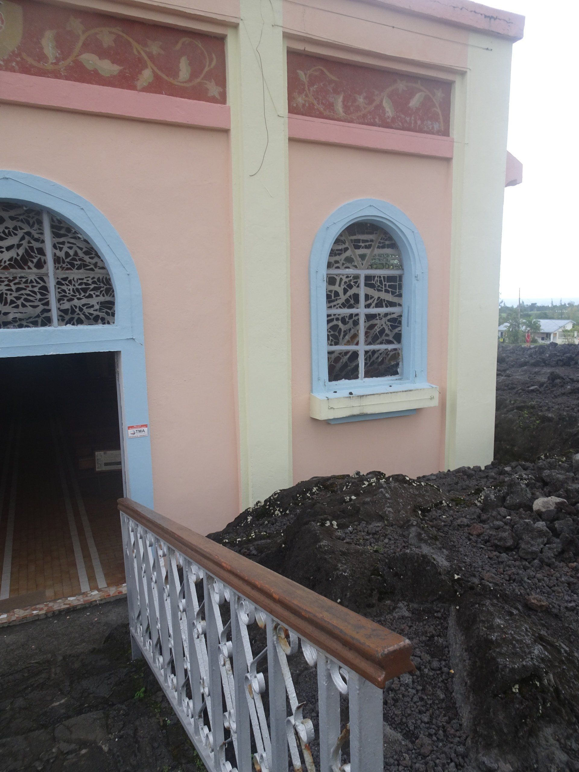 La coulée a pénétré de quelques mètres dans l'église, le reste de la lave l'a contournée sans la démolir.