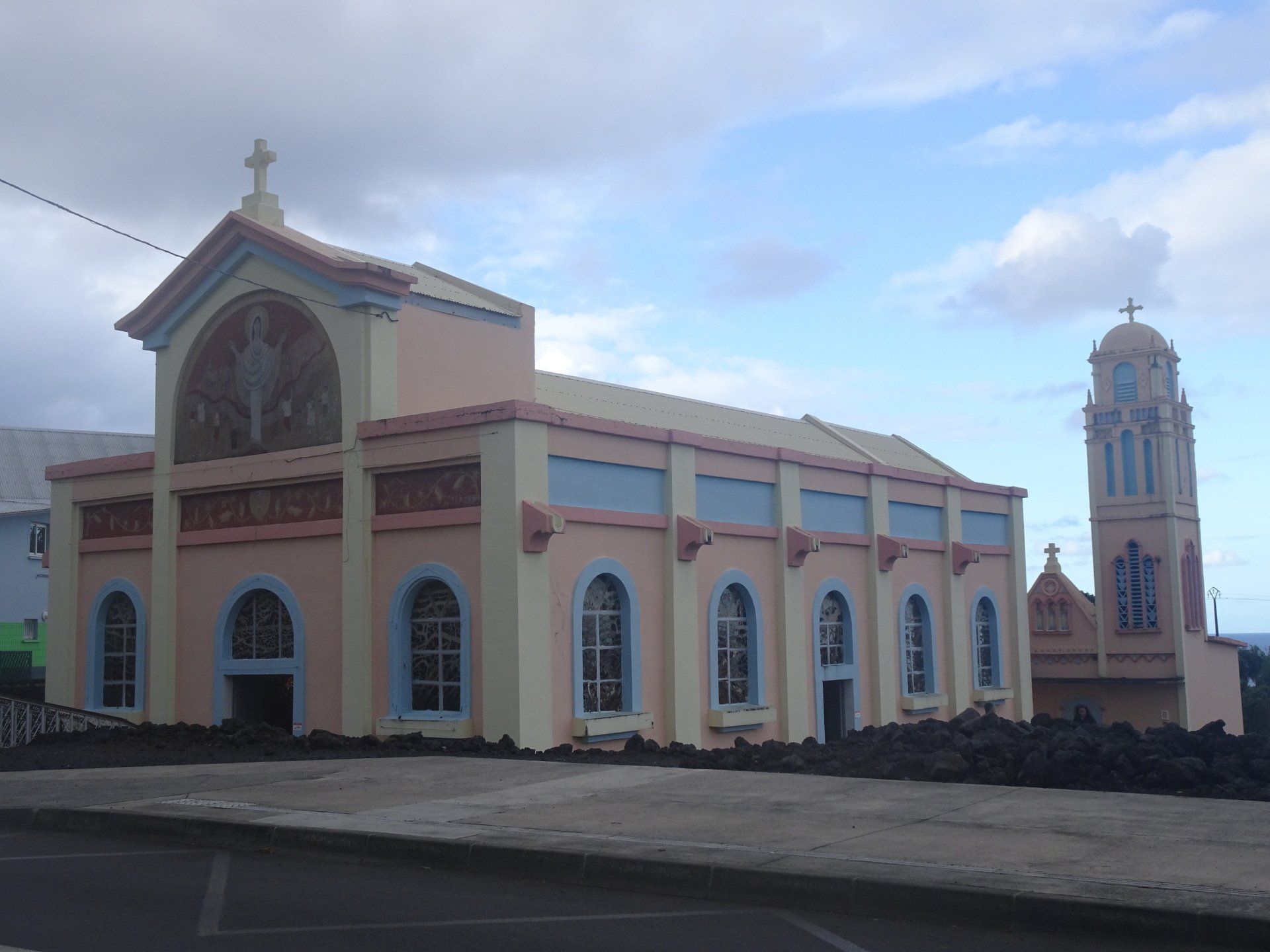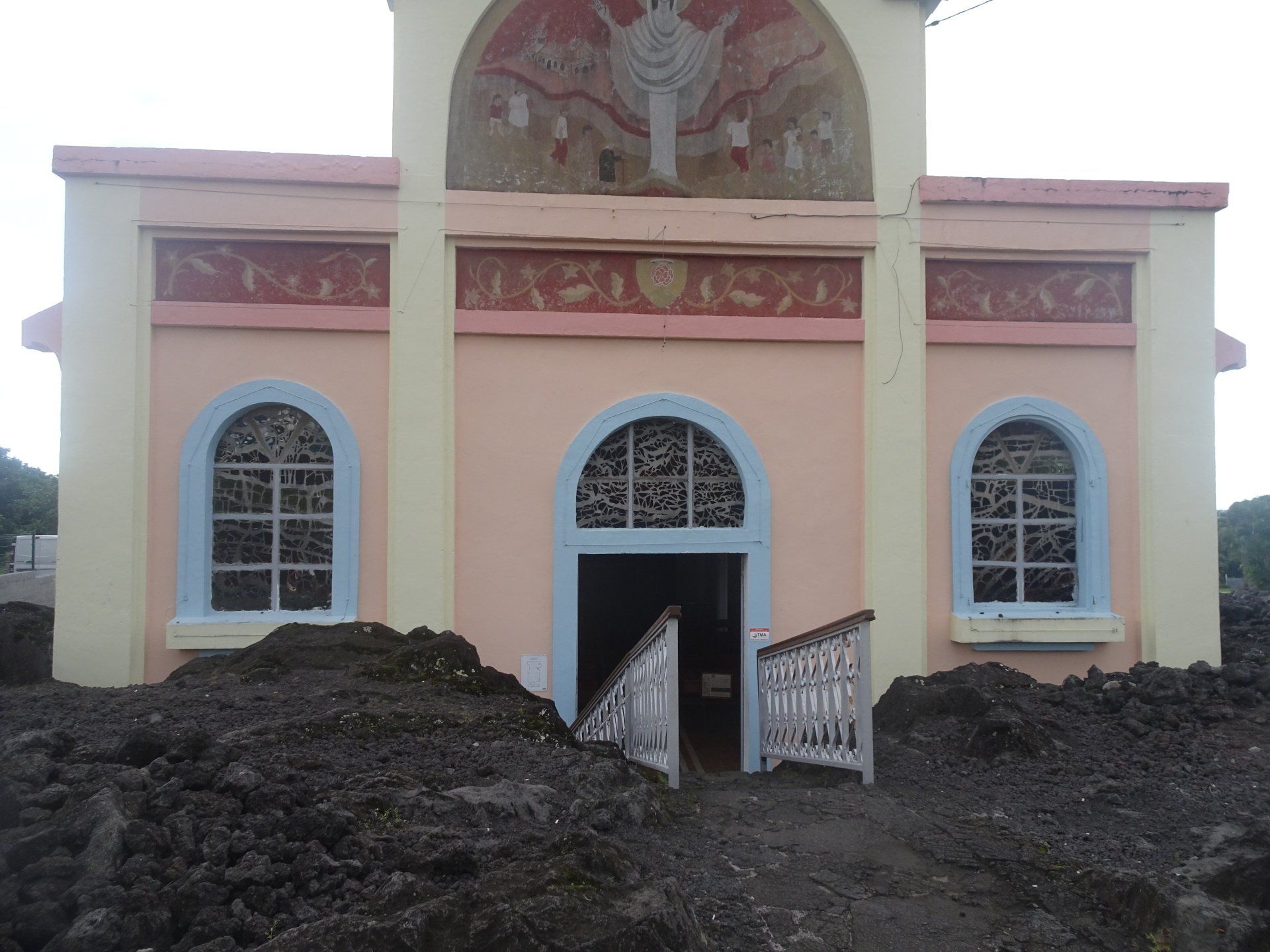 L'Eglise Notre-Dame des Laves est connue pour avoir résisté à la coulée de lave de 1977 du Piton de la Fournaise.