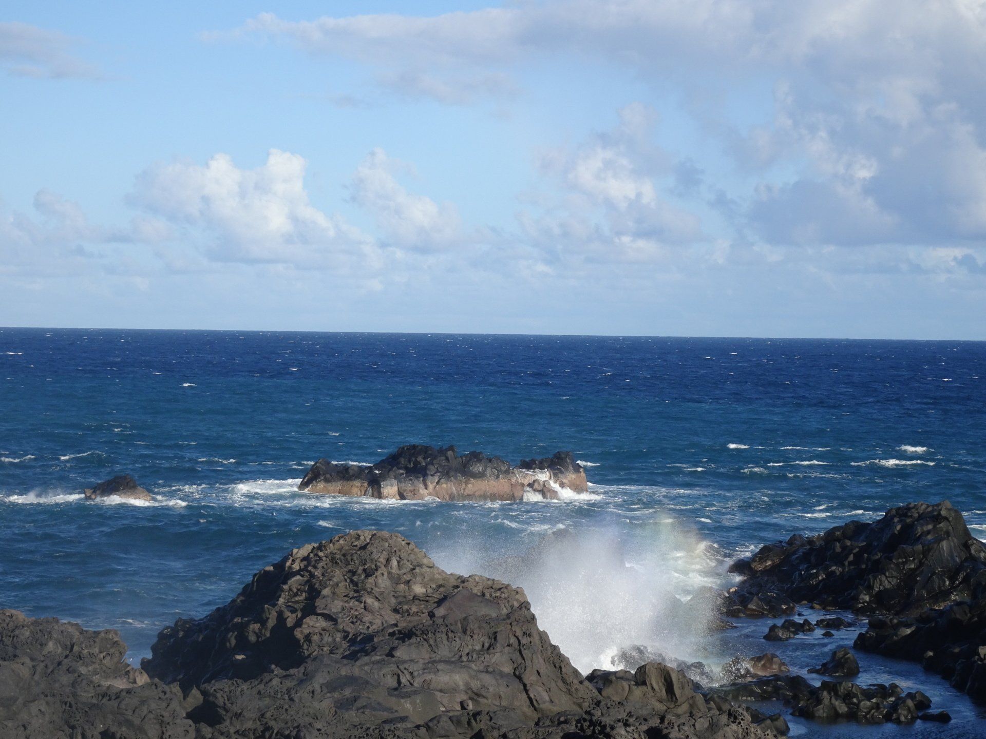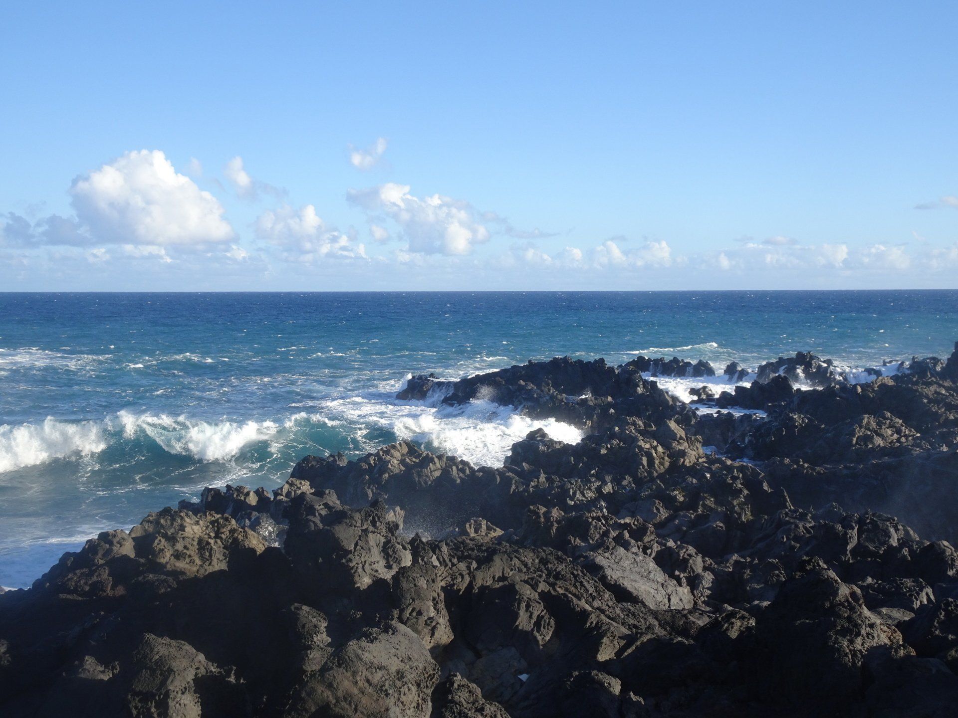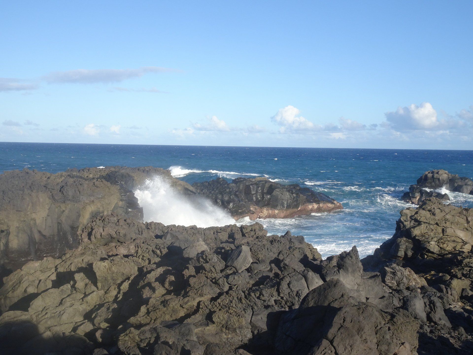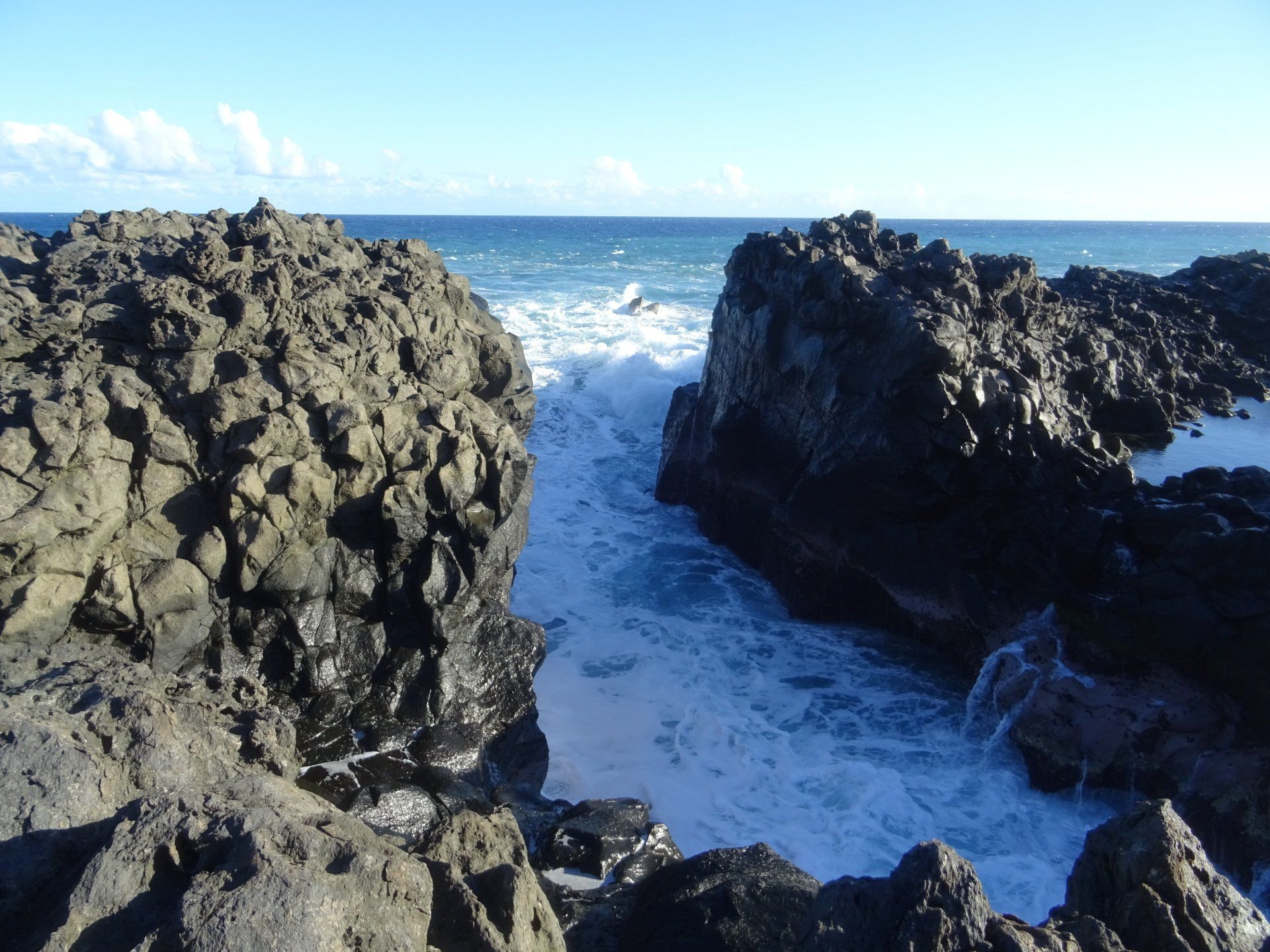 Le Gouffre est un couloir de roches volcaniques. Les vagues qui y pénètrent viennent se fracasser dans son fond.